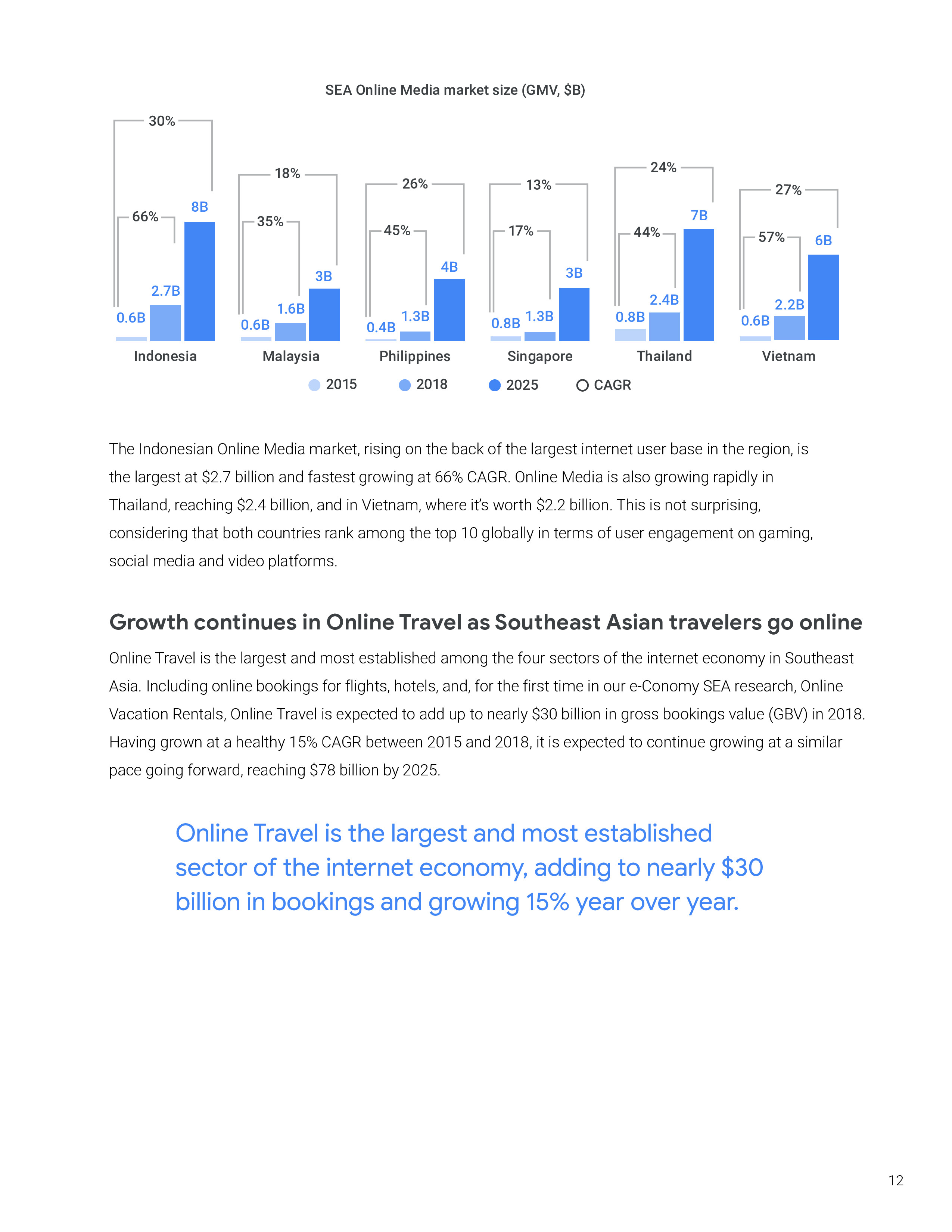 在线旅游是东南亚网络经济中最大也是最成熟的行业,每年订购额接近300亿美元,年增长15%。到2025年该地区在线度假租赁有望增长至20亿美元。