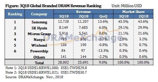 根据DRAMeXchange的最新数据,全球DRAM行业收入在第三季度增长9%,达到新的纪录。调查显示主流应用分支收入增长率在0-2%,例如,PC,服务器和移动。由于需求疲软,DDR3消费DRAM价格首次出现下降,图形DRAM产品的价格也下降了3%。