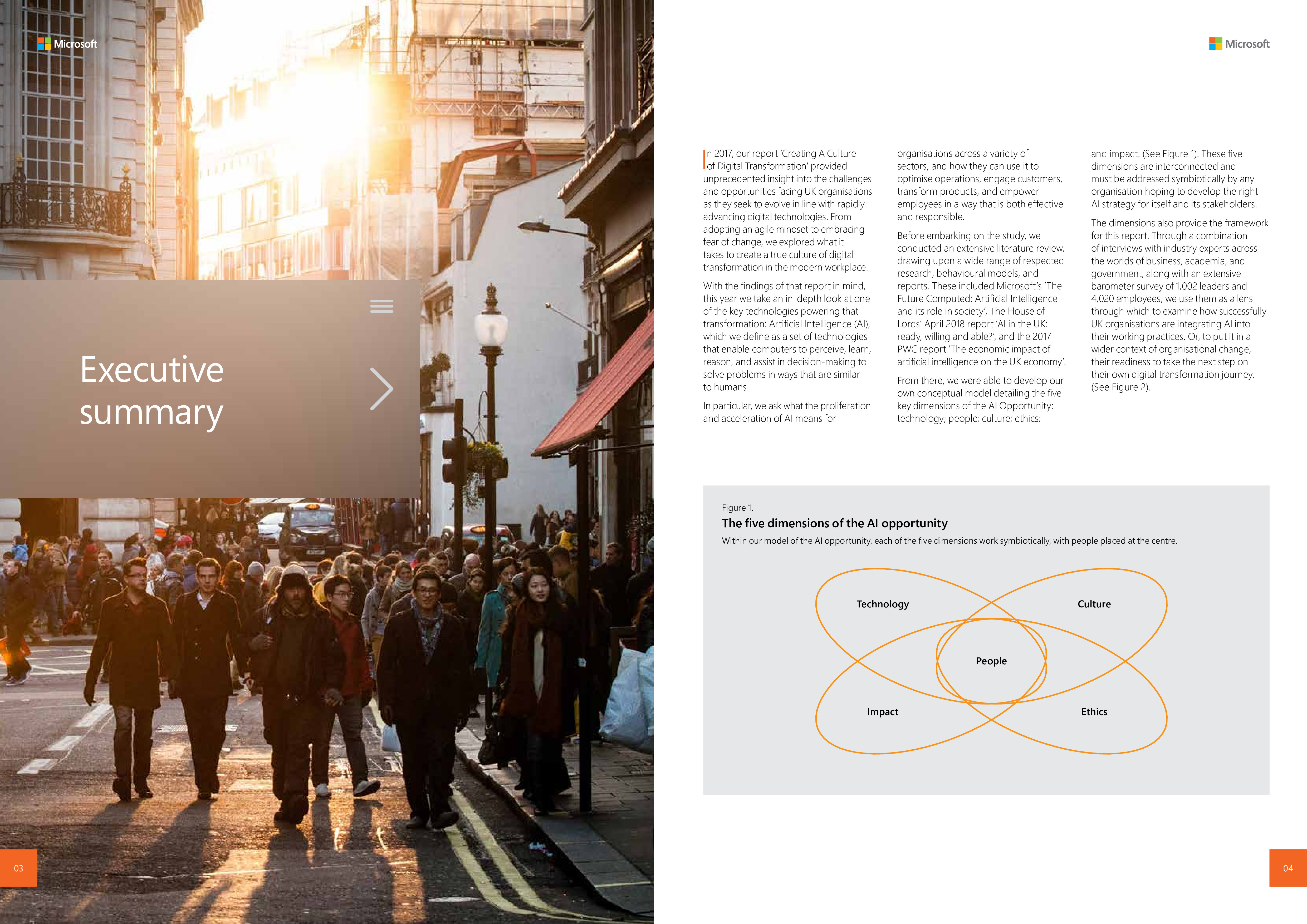 报告识别了AI机遇的五个维度:技术、人、文化、道德和影响。这五个维度是互通的,而且企业必须为自己和懂事系统地开发适当的AI策略。