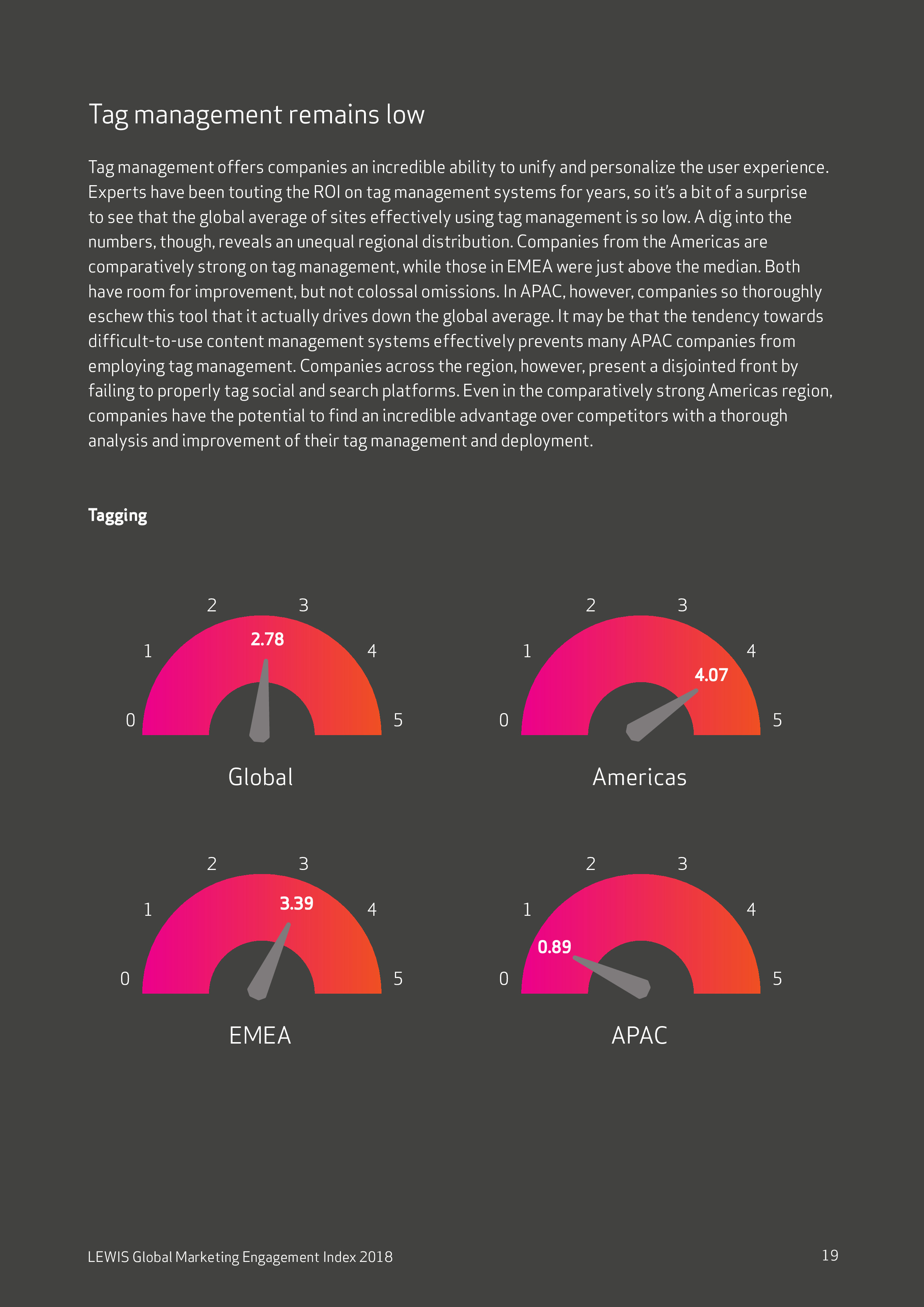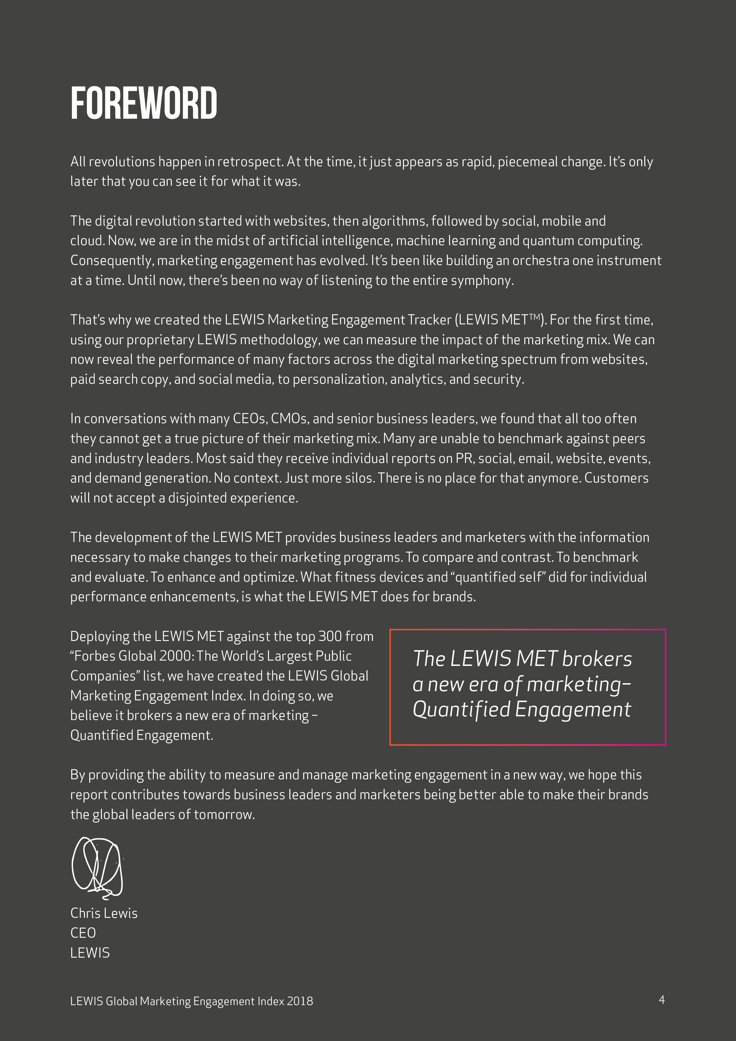 Lewis发布了新报告“2018年全球营销参与指数”。营销快速改变,价格、地点、促销和产品被称为“4P”。