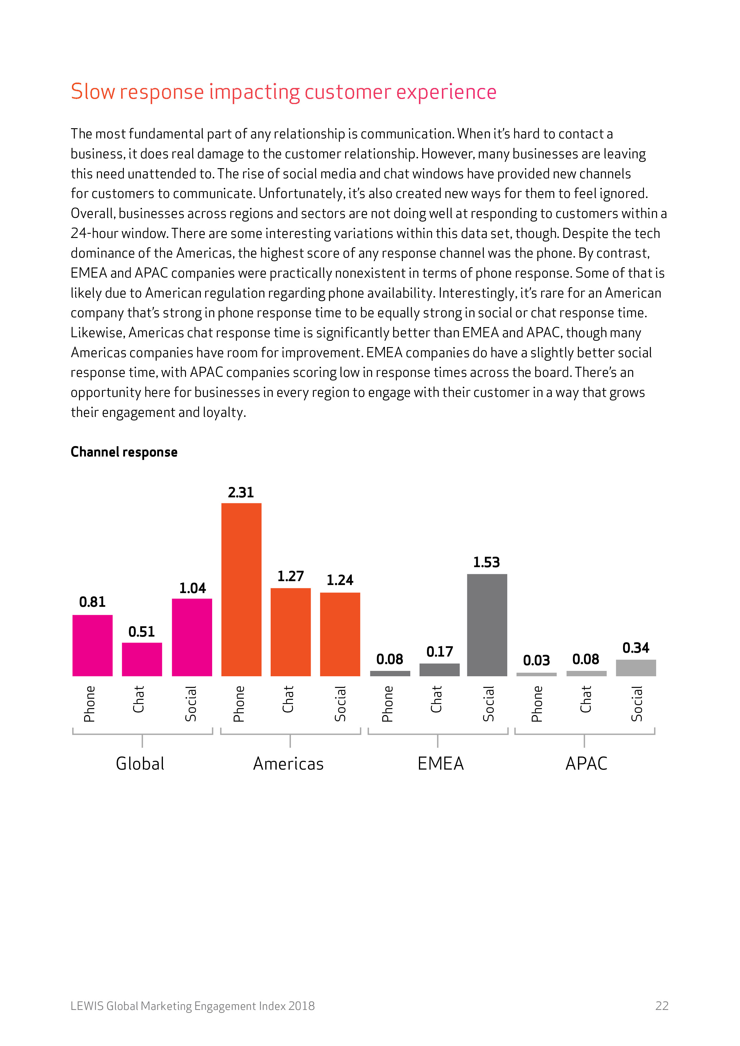 全球企业在跨平台24小时内响应潜在消费者方面表现较差,美洲的表现最好,电话仍然是最好的形式;