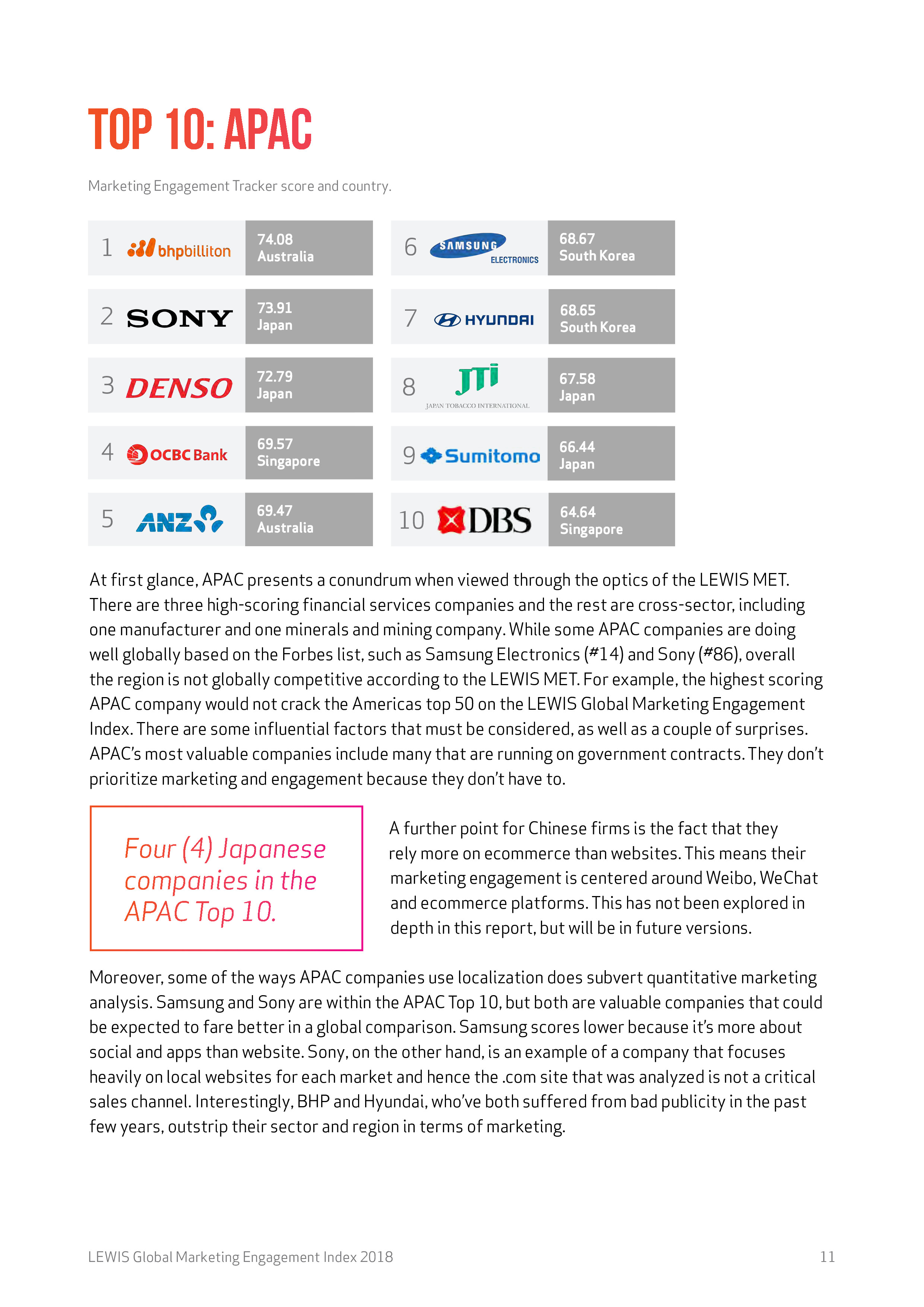 亚太地区的企业在使用网络营销工具方面还有很大空间,亚太地区顶级营销品牌无法匹敌美洲50强;