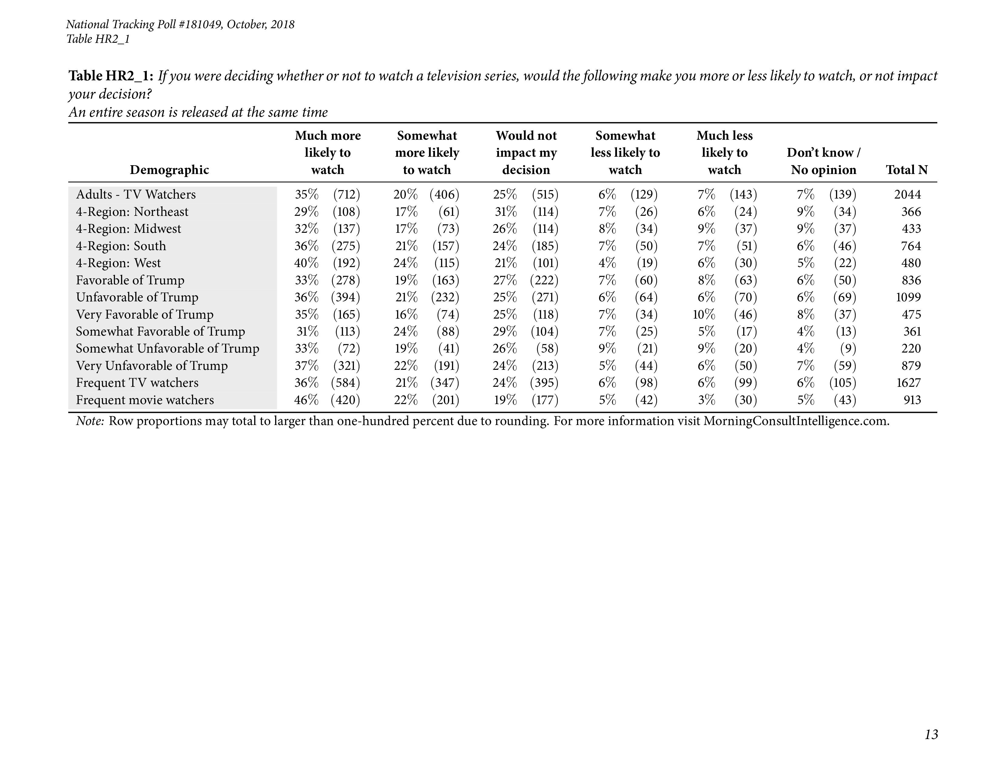 29%的电视观众在节目发布24小时之内看了一整季,18-29岁的观众中这个数字上升为51%。