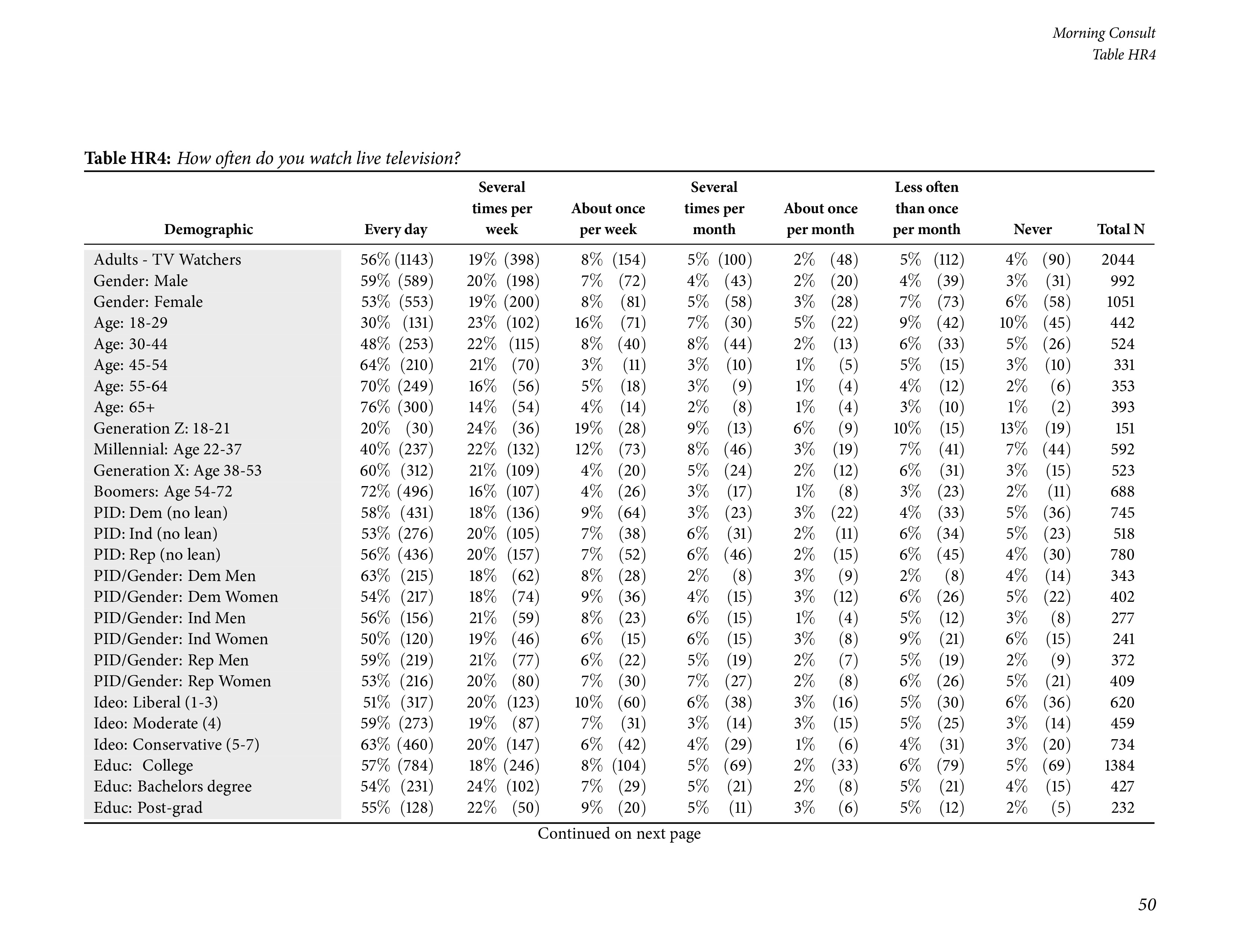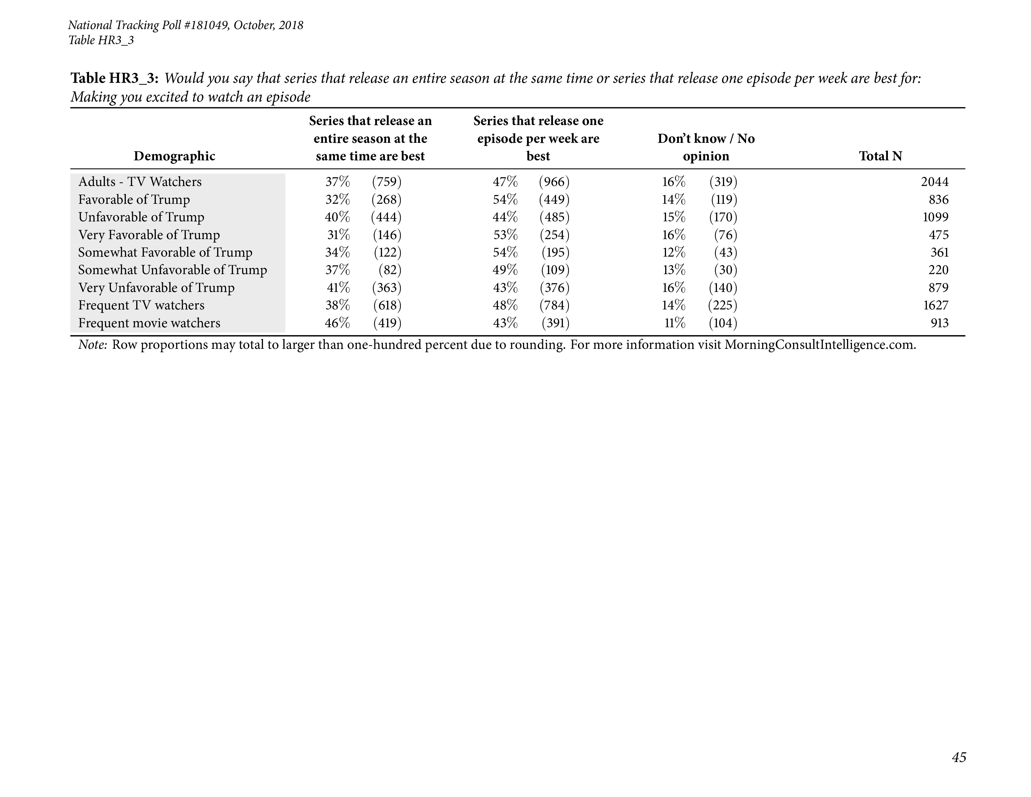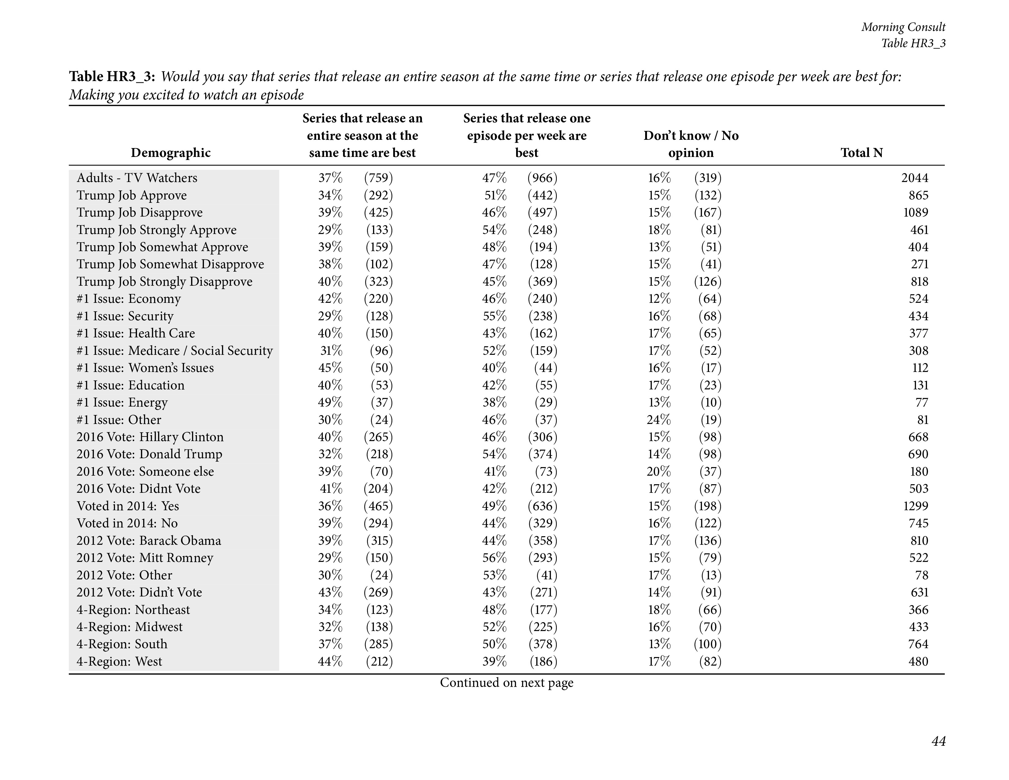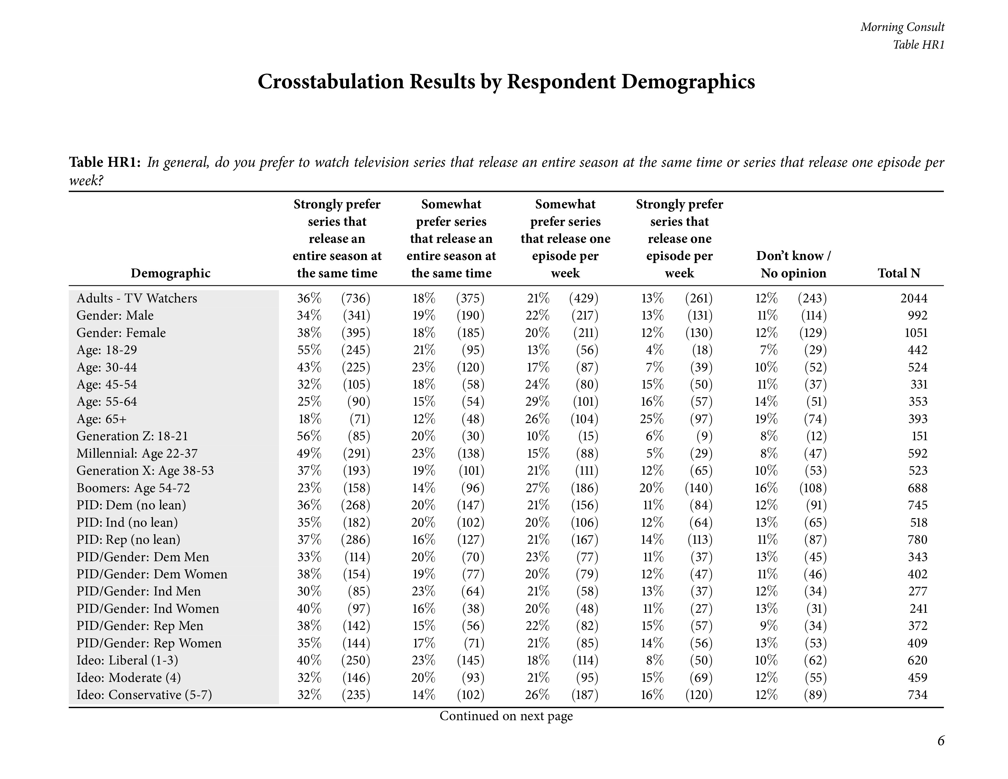 在18-29(73%)和30-44岁(69%)的观众更可能每周狂看片。