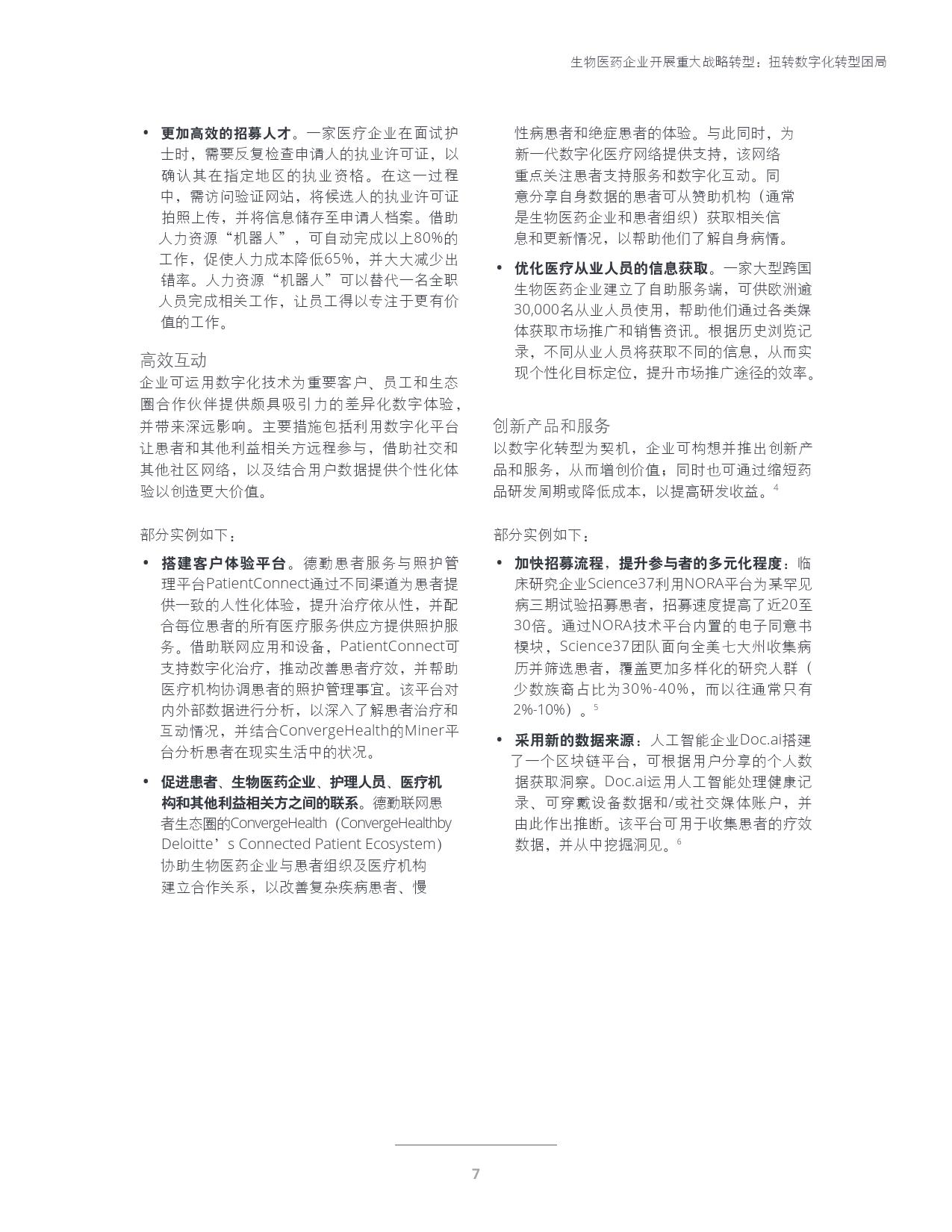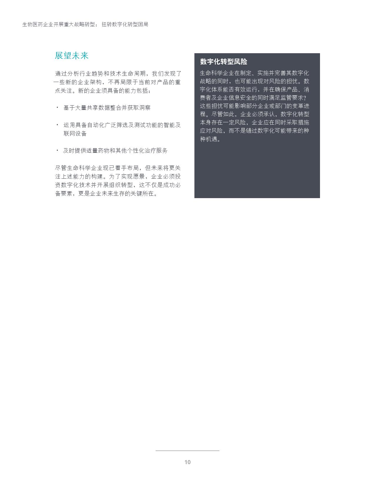 - 创新产品和服务——以数字化转型为契机,企业可构想并推出创新产品和服务,从而增创价值;同时也可通过缩短药品研发周期或降低成本,以提高研发收益。