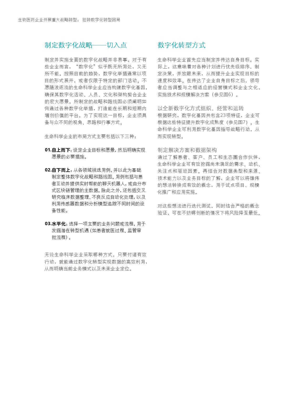 生命科学企业开展业务时,数字化转型机遇无处不在,涵盖生产与支持等运营活动,以及同患者、医生、医疗系统和支付机构之间的互动往来,共同开发新产品和服务。本报告探索了三种数字化转型的方式可以助力生命科学企业把握每次机遇。