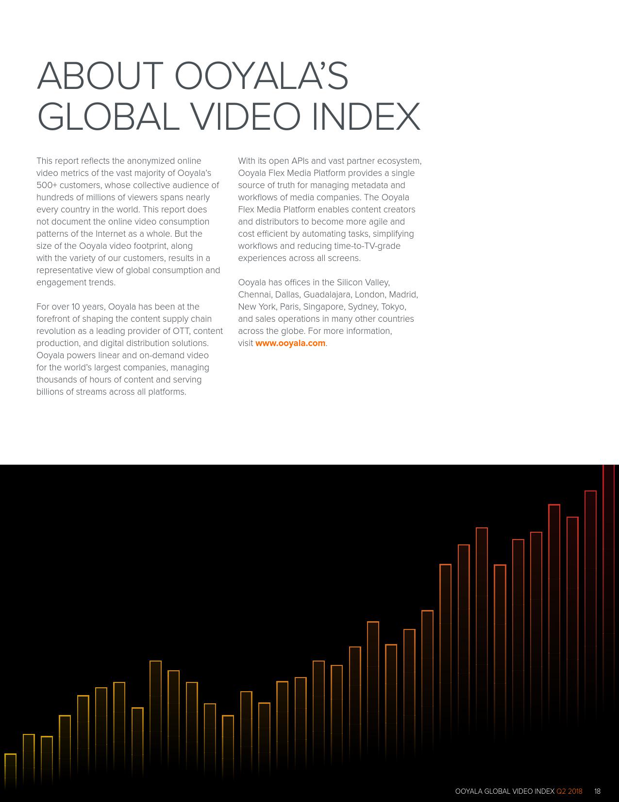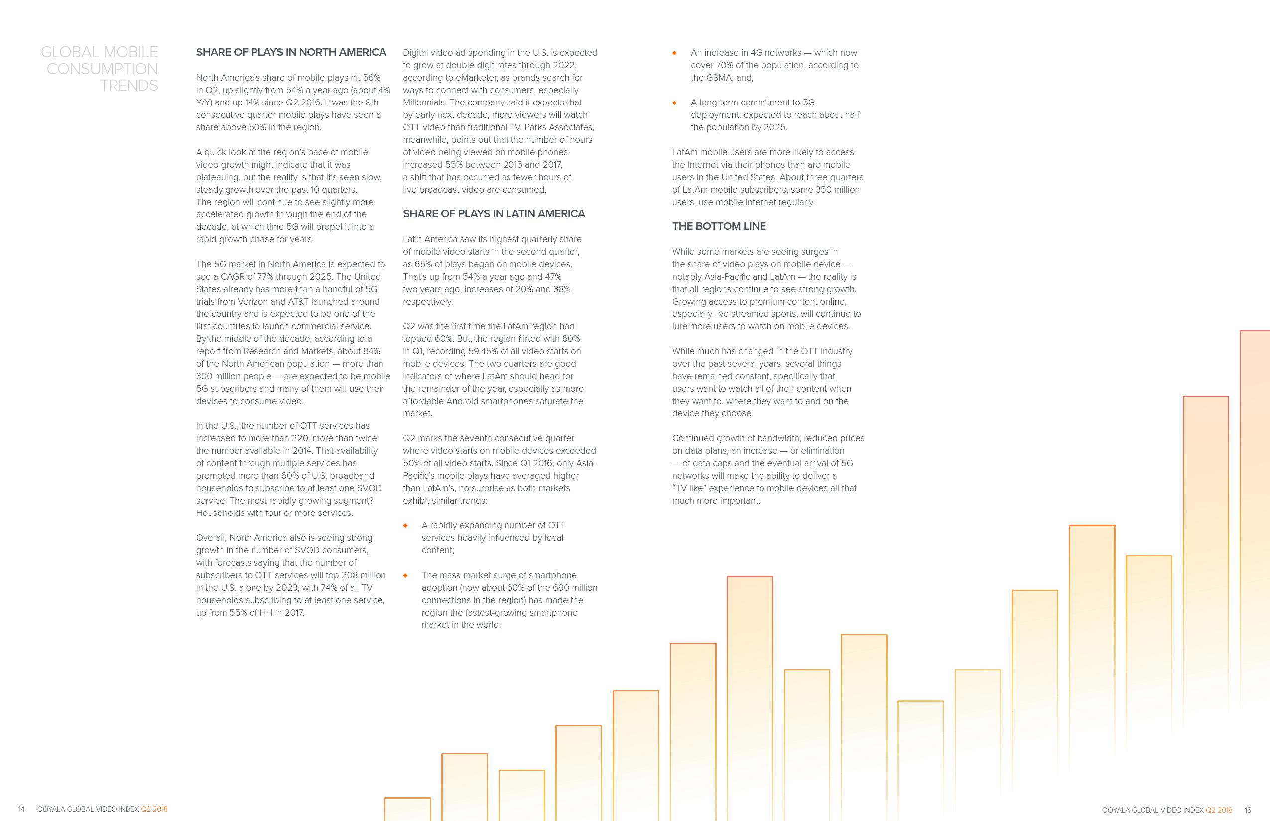 OTT发展如火如荼,视频行业正在经历着深刻的变化。美国网络视频服务提供商OOYALA近日发布了2018年第二季度全球视频指数报告,对全球各地区视频播放时长、设备等情况分析研究,从移动视频进一步发展、5G网络带来深刻影响、各地区移动视频播放量等几个方面对全球视频发展图景进行了描绘,本文将为大家梳理报告重点内容。