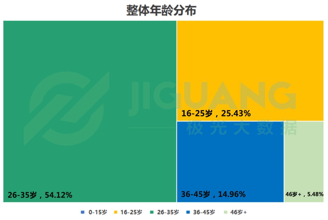 - 观秀人群年龄集中在16岁-35岁之间,占比接近8成;