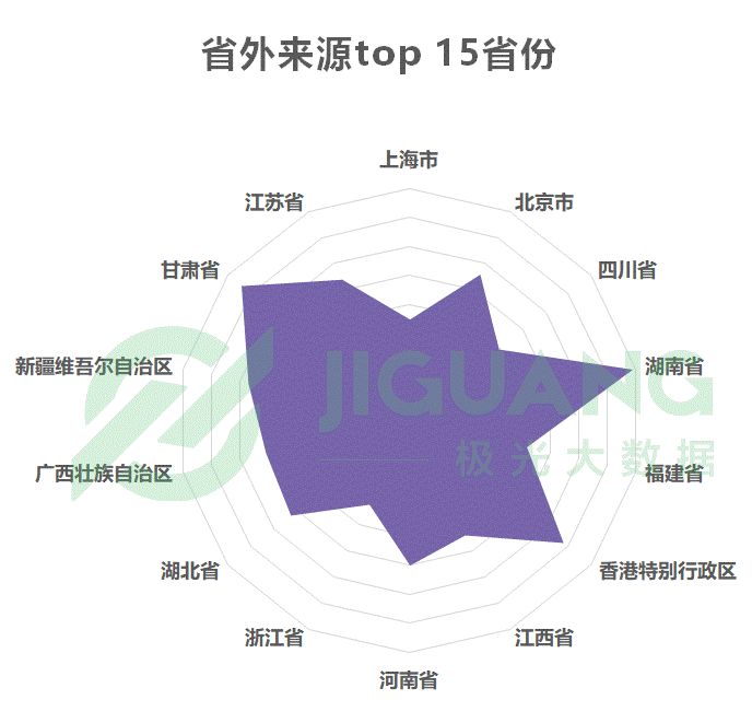 - 来源省内占比超8成,省外来源主要以湖南、甘肃、香港特别行政区为主;