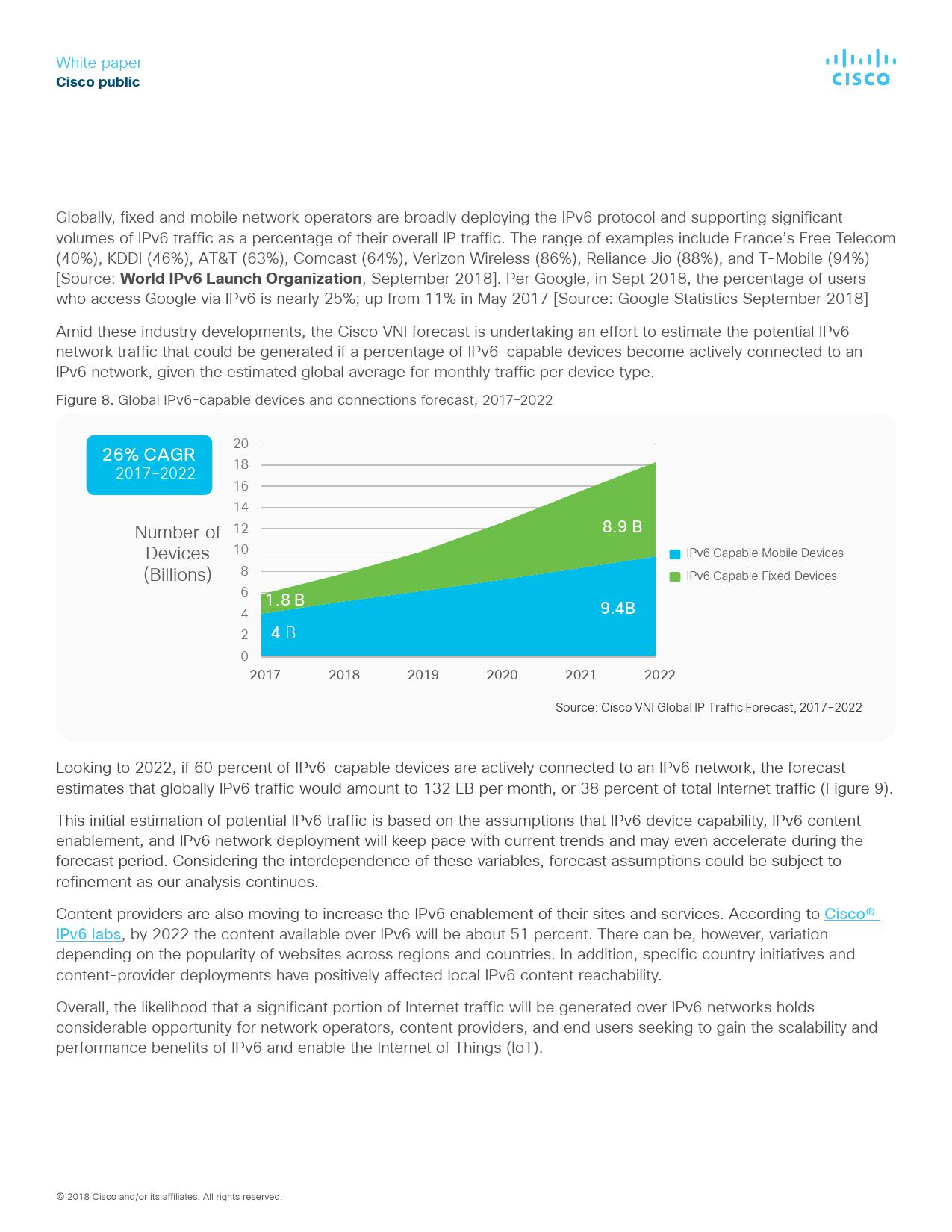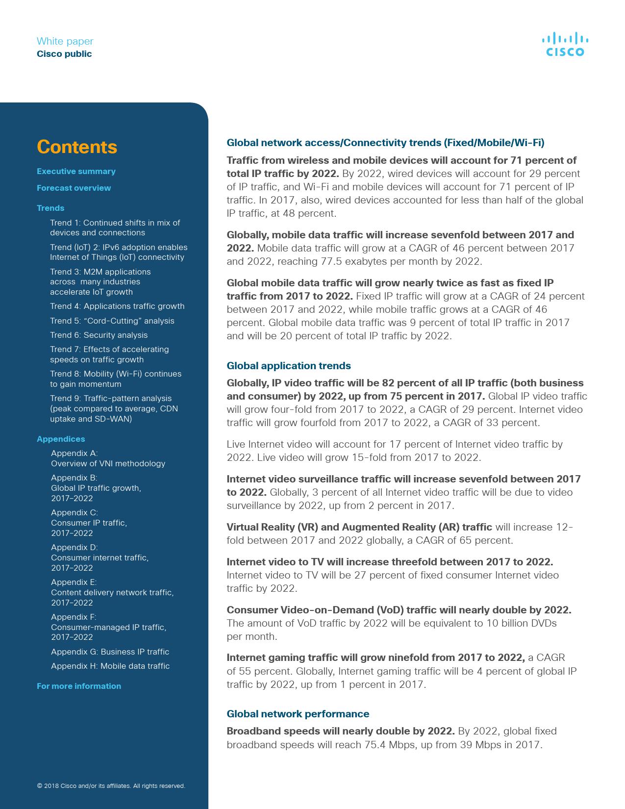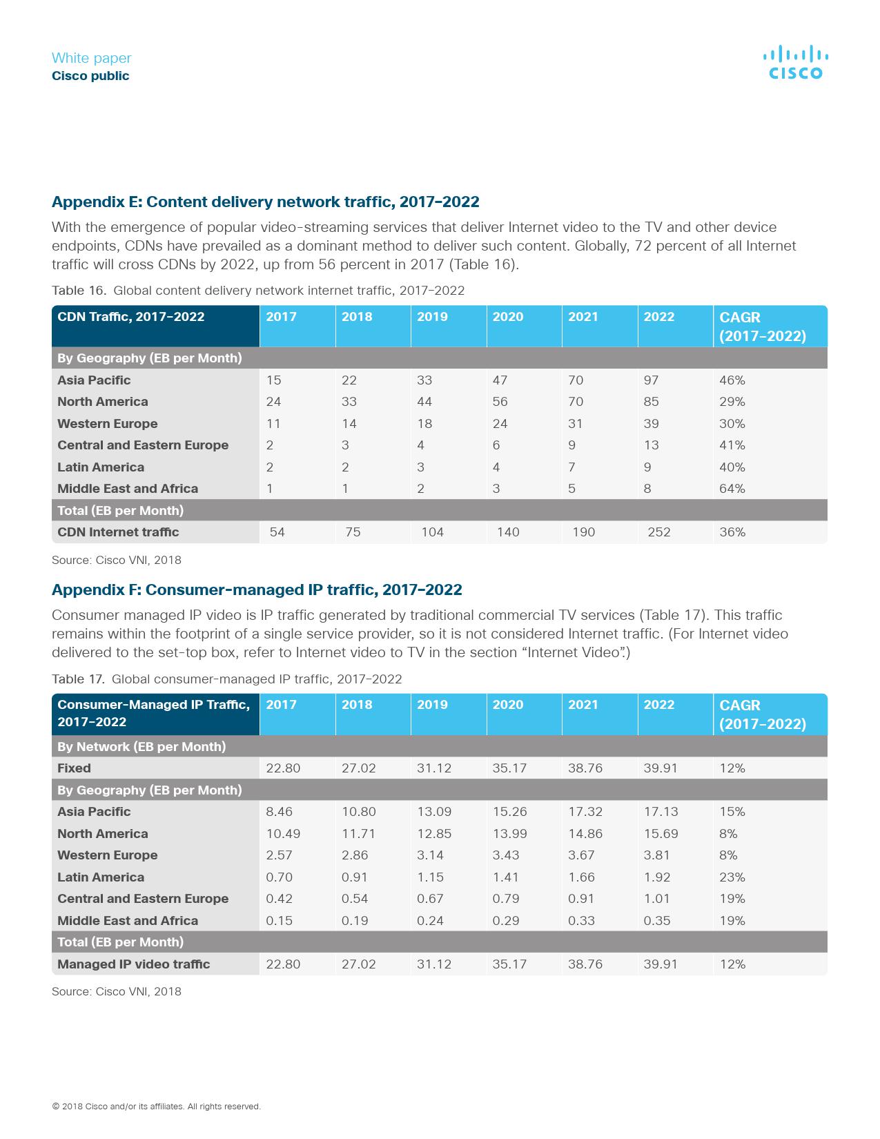 虚拟现实和增强现实流量将出现飞跃。到2022年,可从2017年的0.33艾字节/月增至4.02艾字节/月。