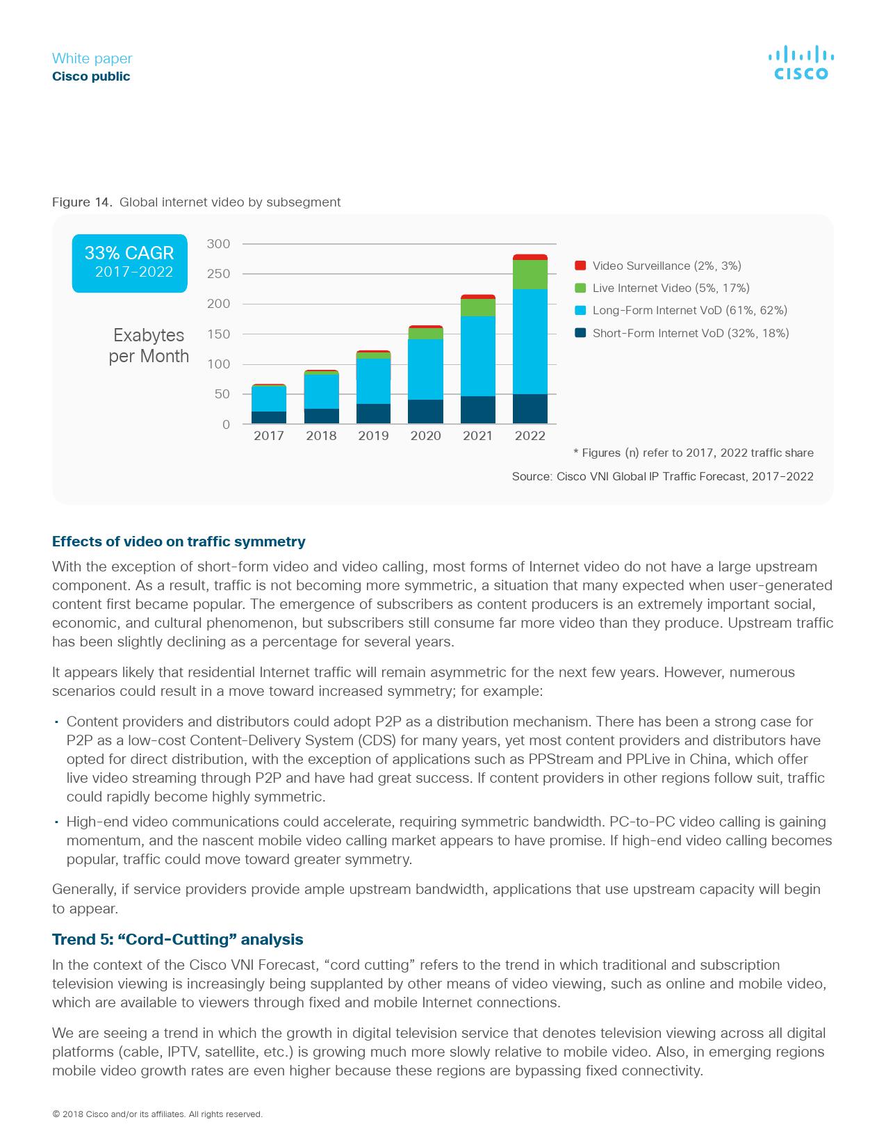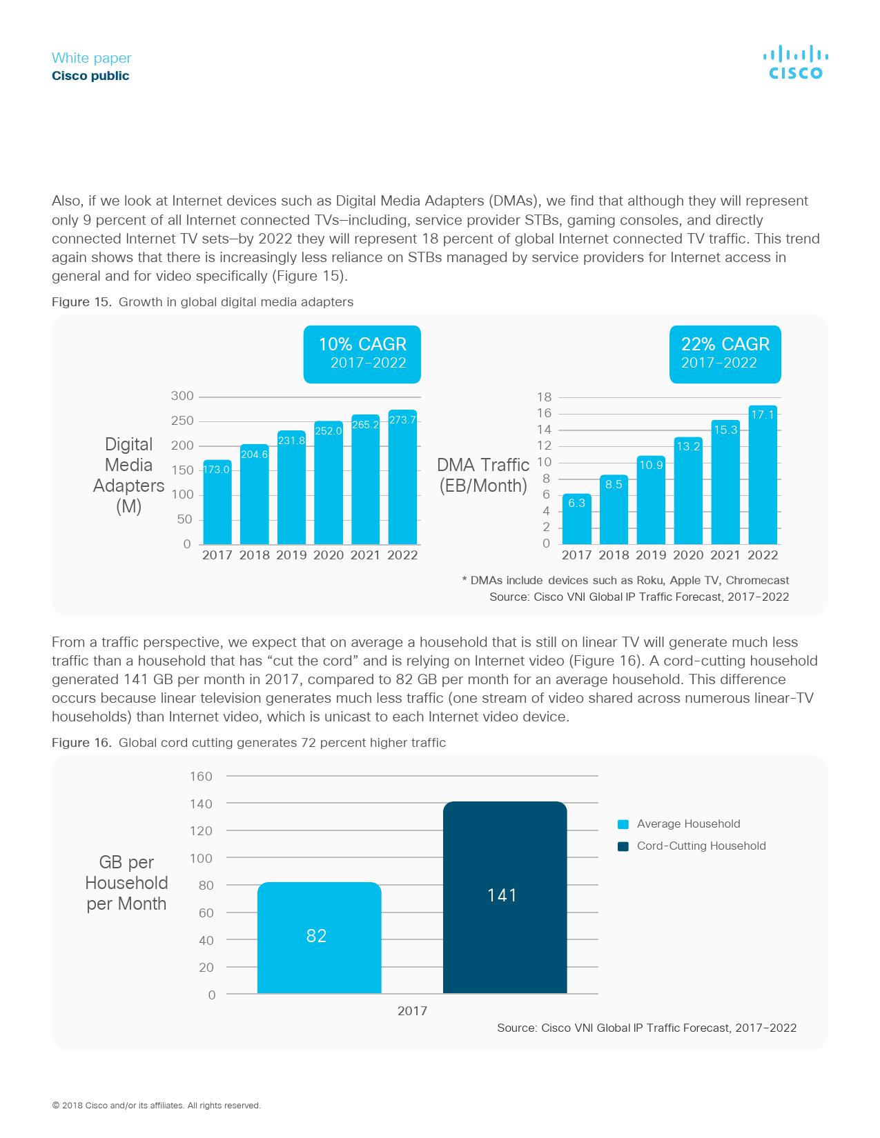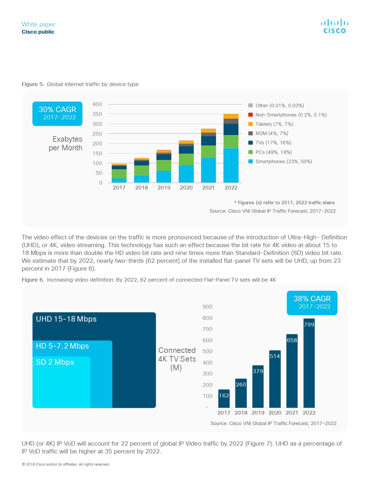 到2022年,IP视频流量将达到现在的4倍,在全部IP流量中的占比从75%增至82%。