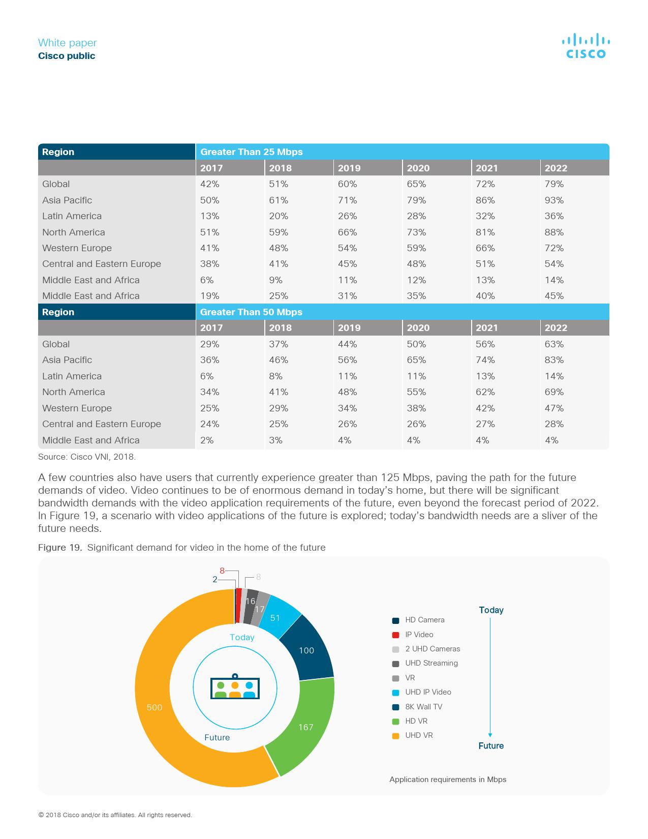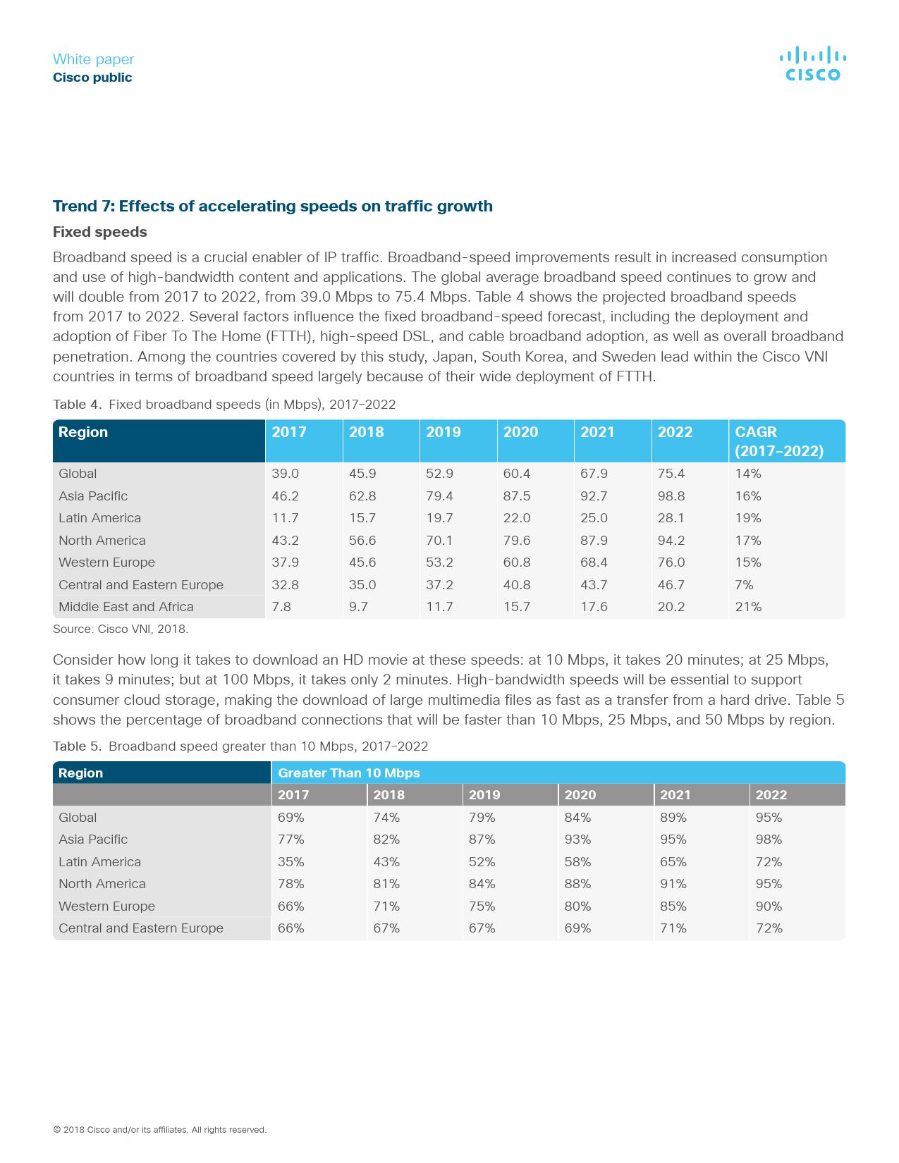 全球固定宽带平均速度将接近翻番,从39Mbps增至75.4Mbps。