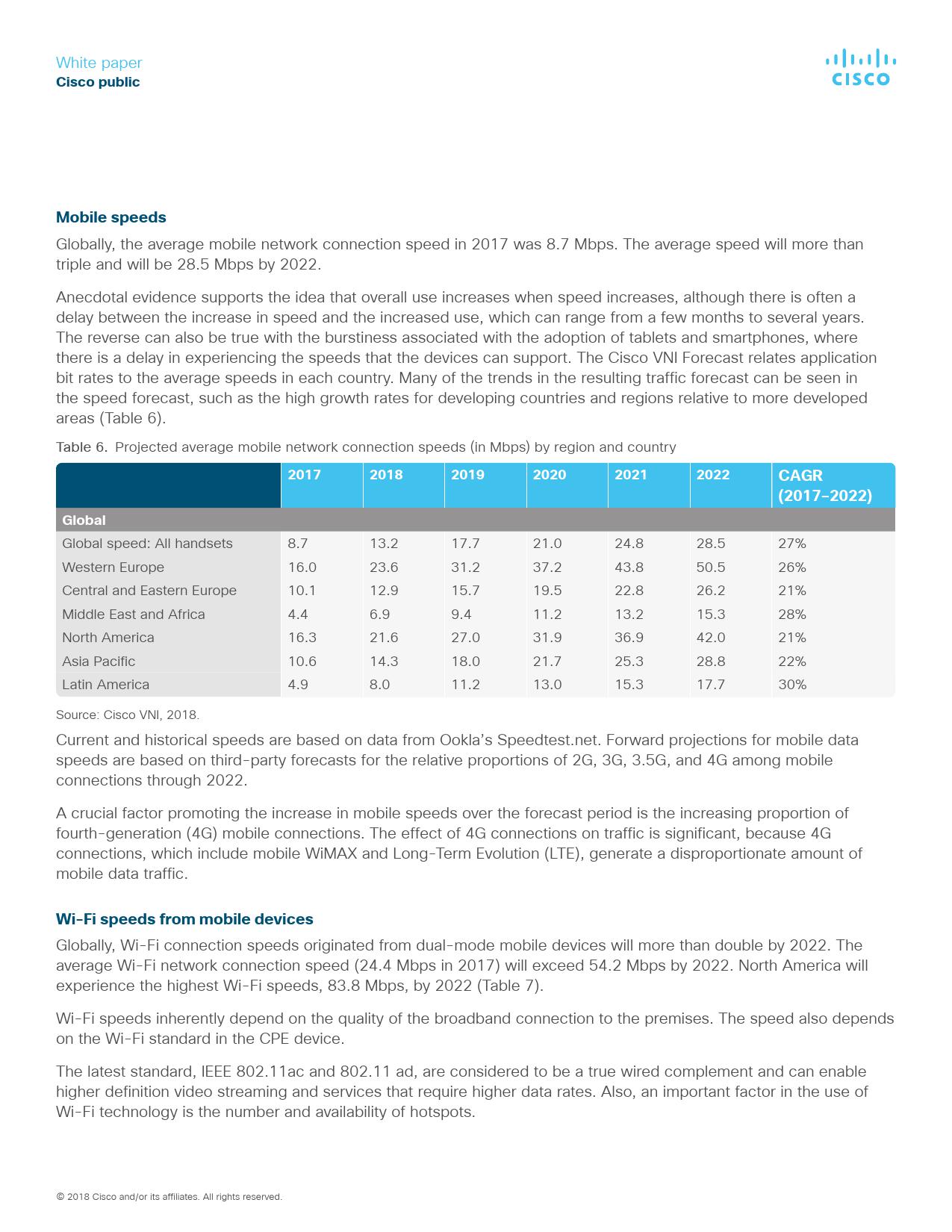 全球移动连接速度将增加2倍多,从8.7Mbps增至28.5Mbps。