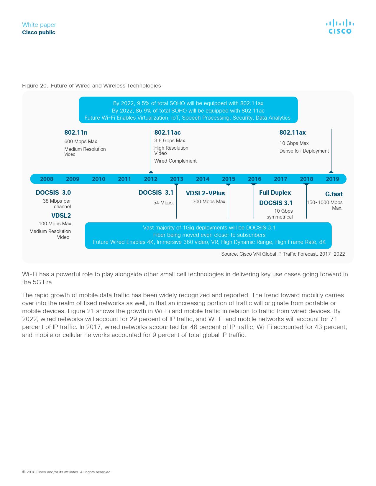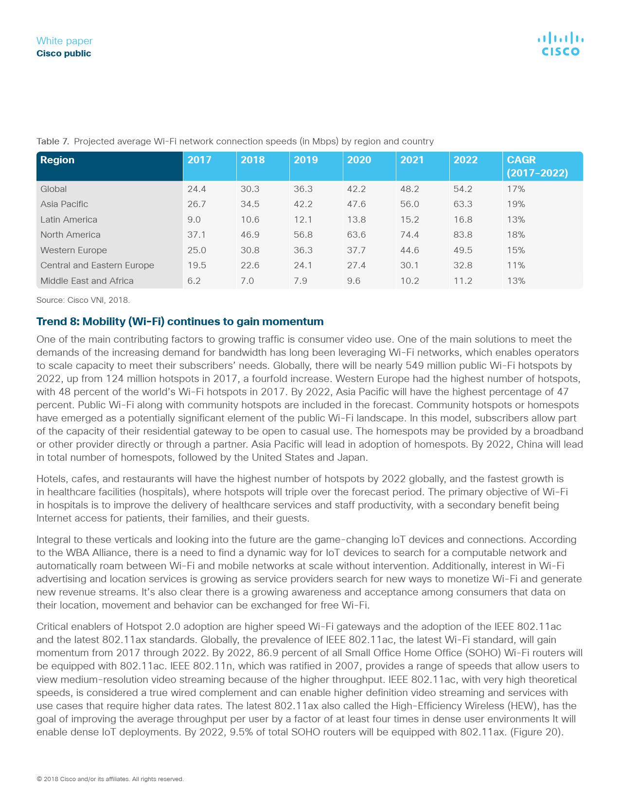 全球Wi-Fi连接平均速度将增加逾一倍,从24.4Mbps增至54Mbps。
