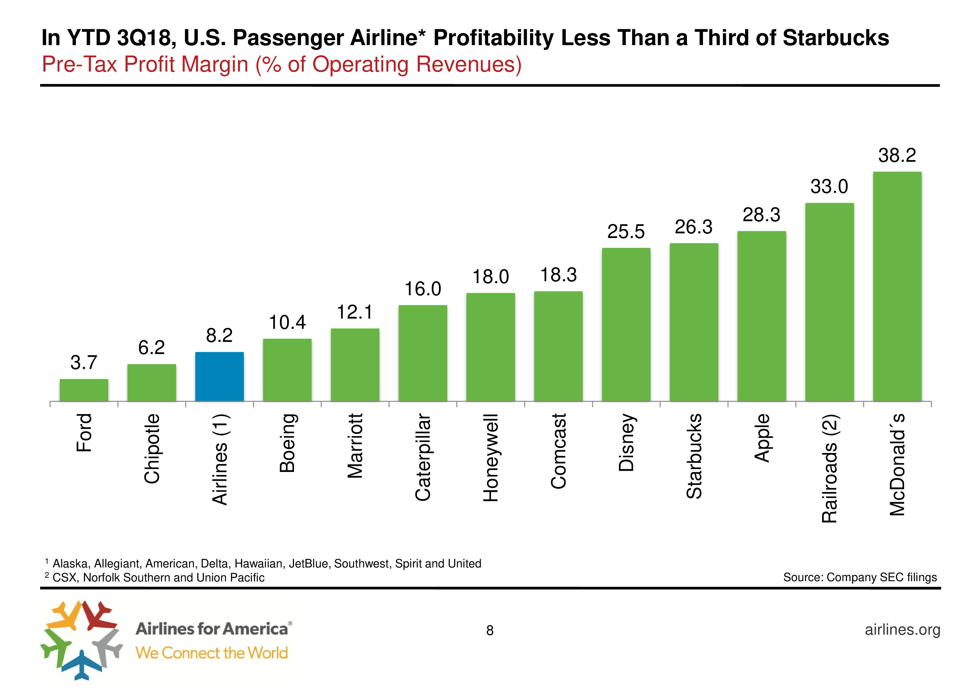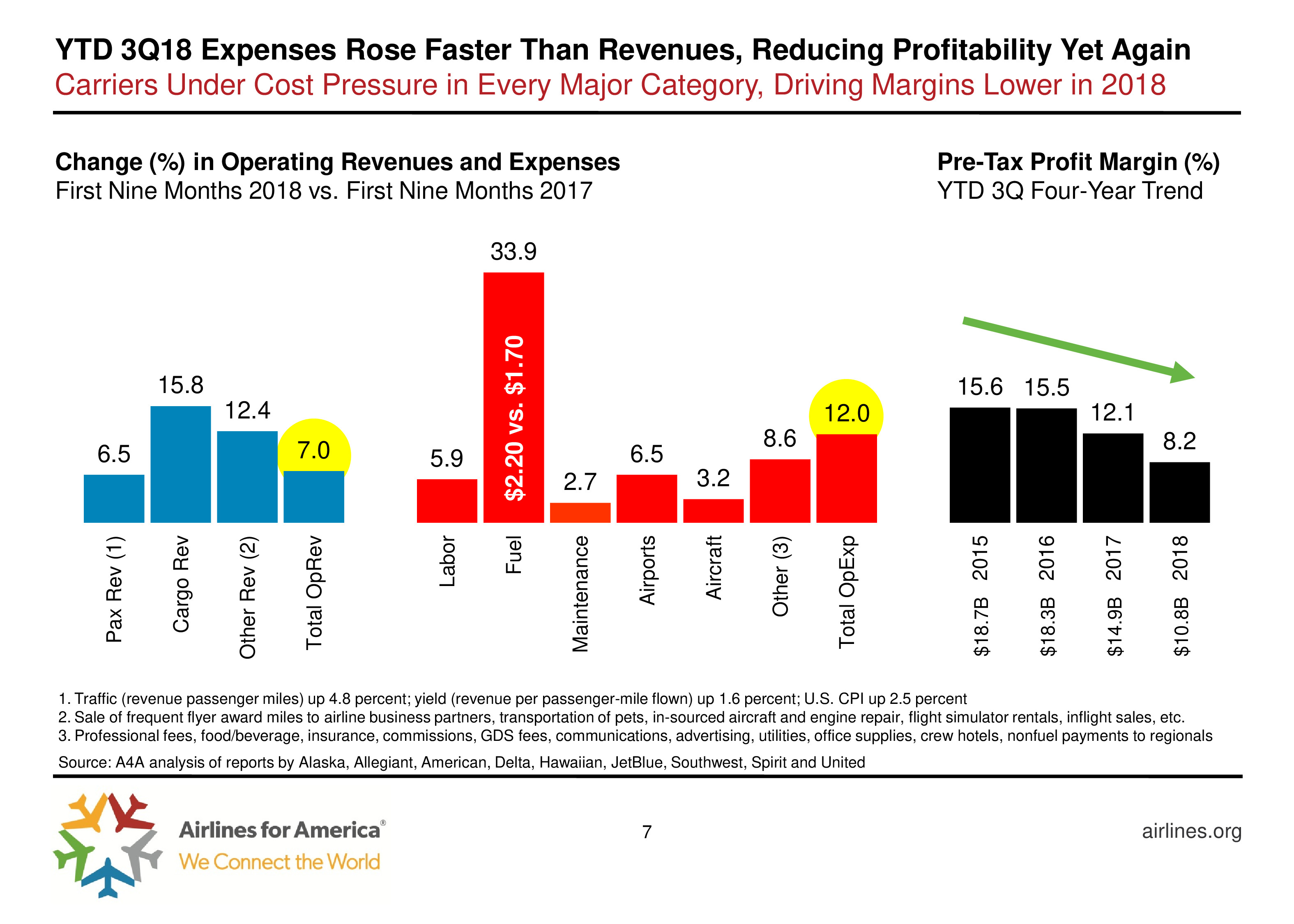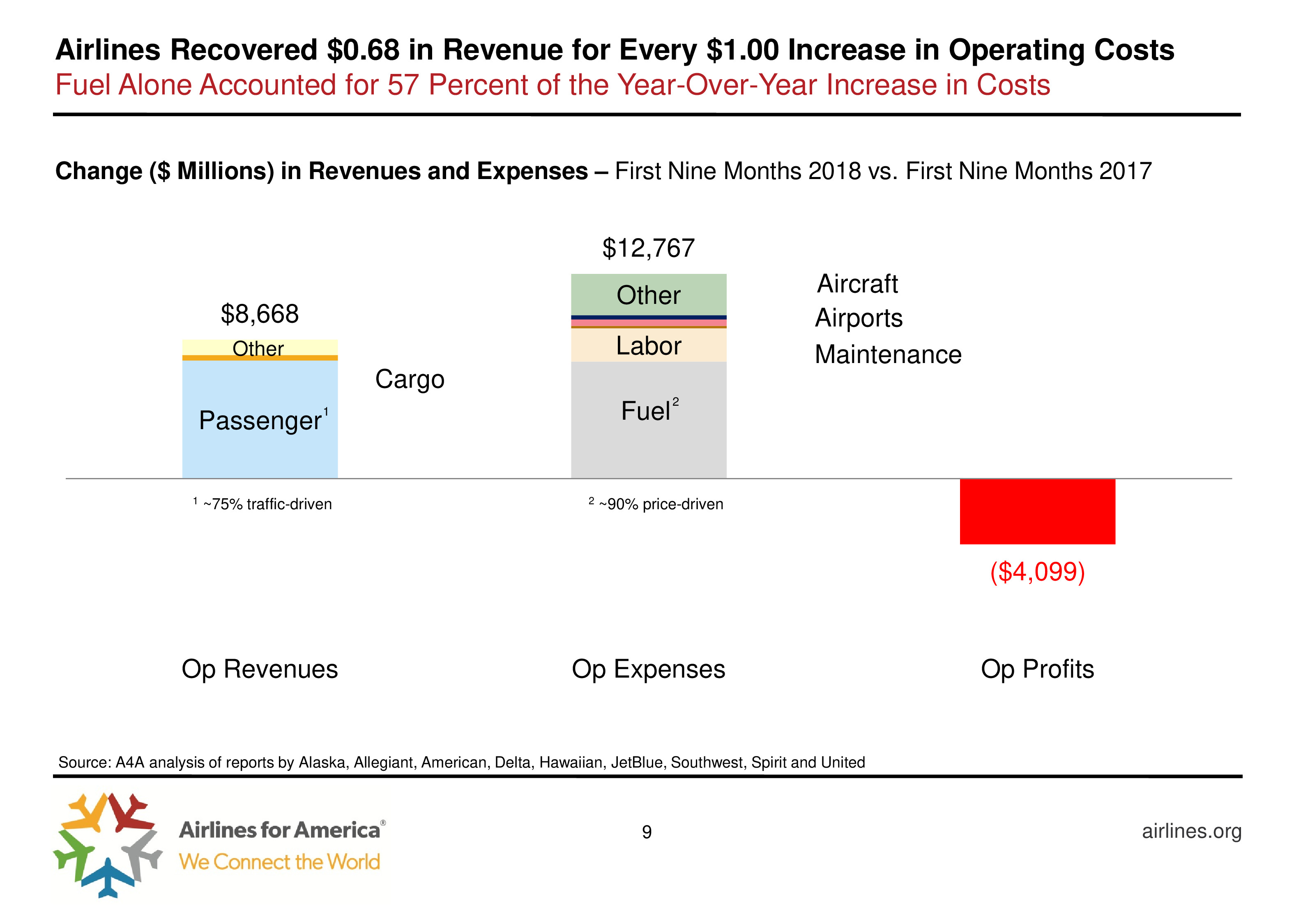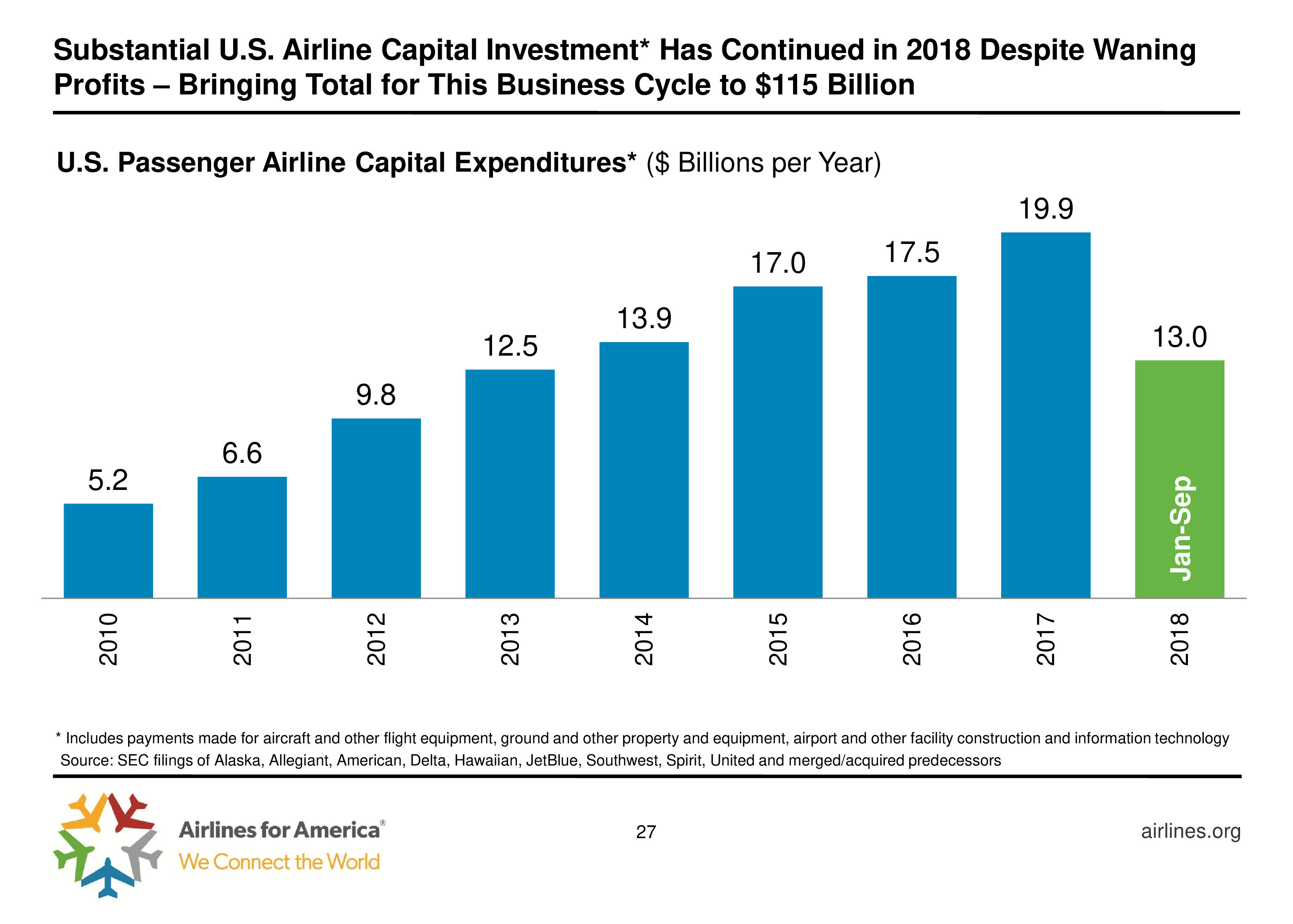 尽管盈利能力下降,航空公司继续投资,2018年前9个月客运航空公司资本支出130亿美元。