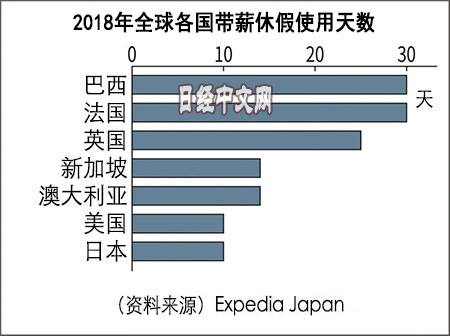 日本的带薪休假使用率连续3年在全球垫底。在线旅游网站亿客行日本(Expedia Japan)12月10日公布了面向全球19个国家和地区的有识之士实施的2018年带薪休假国际比较调查结果。日本的带薪休假使用率仅为50%,天数方面也是全球最少,仅有10天。该公司认为原因之一是不少日本人对使用带薪休假有罪恶感。