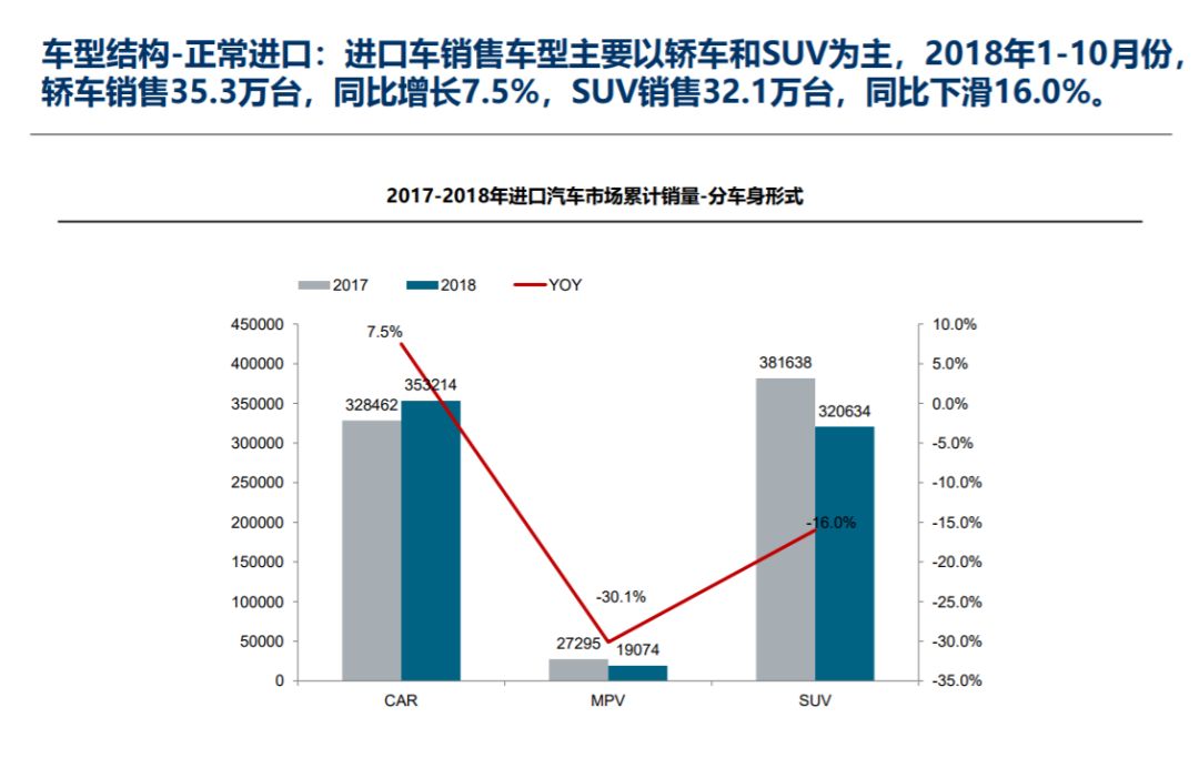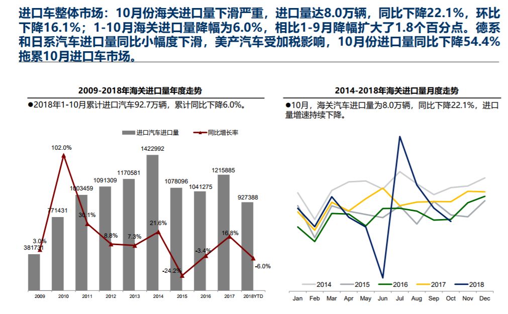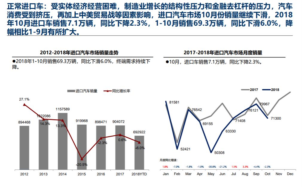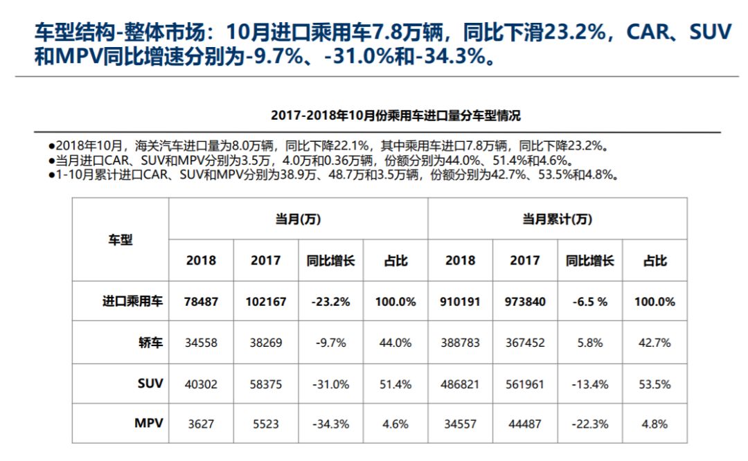 中国汽车流通协会: 2018年10月中国进口汽车市场月报 在十二月份中国汽车流通协会月度形势分析会上,发布了中国进口汽车市场十月份月报,具体内容如下: 更多阅读:中国汽车流通协会:2020年4月中国进口汽车市场月报中国汽车流通协会: 2018年全年中国进口汽车市场研究报告中国汽车流通协会:2019上半年中国进口汽车市场分析中国汽车流通协会:2019年7月中国进口汽车市场分析中国汽车流通协会:2022年7月中国进口汽车市场情况中国汽车流通协会: 2023年1-2月中国进口汽车市场情况中国汽车流通协会:2022年11月中国进口汽车市场情况中国汽车流通协会:2023年7月中国进口汽车市场情况中国汽车流通协会:2024年4月中国进口汽车市场情况中国汽车流通协会:2019年8月份进口汽车市场分析中国汽车流通协会:2022年8月中国进口汽车市场情况分析中国汽车流通协会:2023年5月中国进口汽车市场情况中国汽车流通协会:2022年6月中国进口汽车市场情况分析中国汽车流通协会:2023年4月中国进口汽车市场情况中国汽车流通协会:2022年9月中国进口汽车市场情况