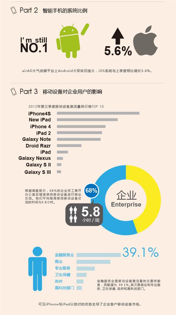 可见iPhone与iPad以绝对的优势主导了企业客户移动设备市场。