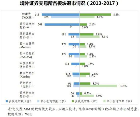 再来看全球各资本市场退市率:
