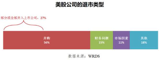 从退市原因来看,并购、财务问题及股价过低成为退市三把斧。数据显示,退市公司中有56%是因为被并购而退市的,因为财务问题退市的占比15%,由股价过低导致退市的占比9%。