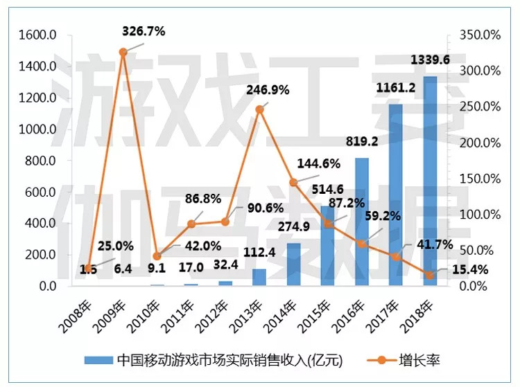移动游戏市场实际销售收入1339.6亿元 同比增长15.4%
