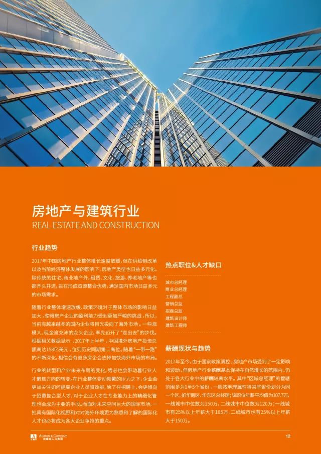 2017年至今,由于国家政策调控,房地产市场受到了一定影响和波动,但房地产行业薪酬基本保持在自然增长的范围内,仍处于各大行业中的薪酬较高水平。