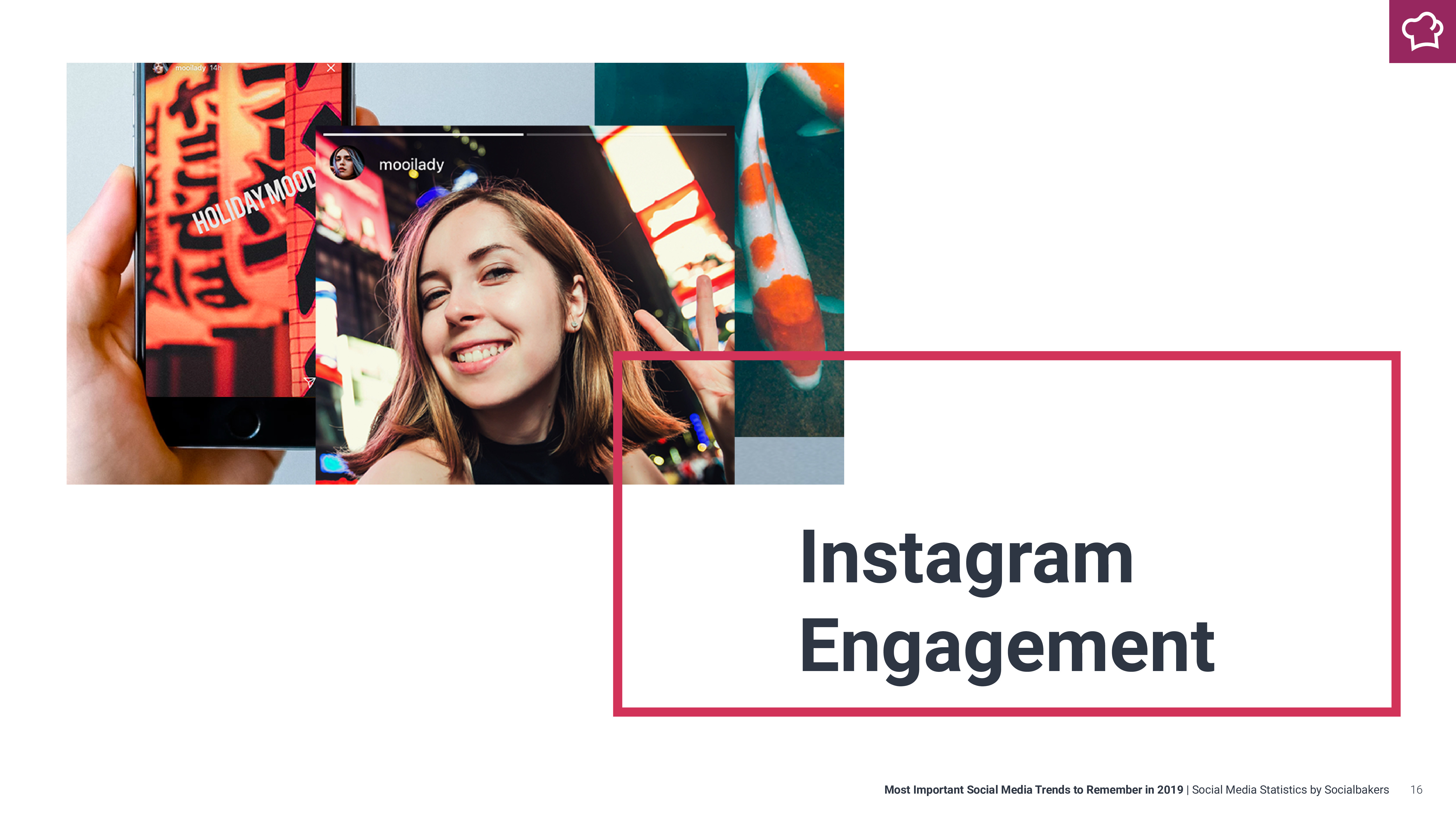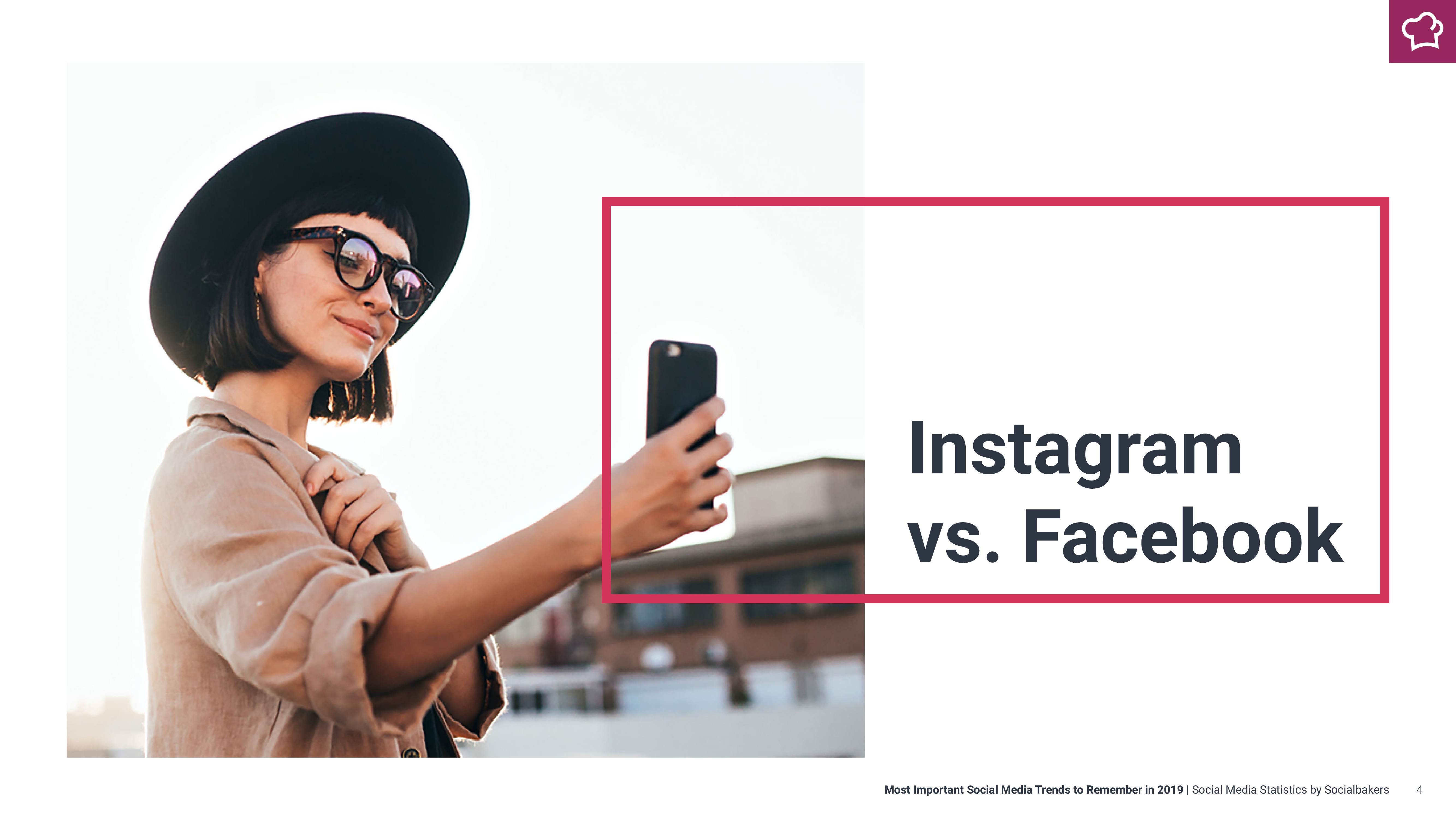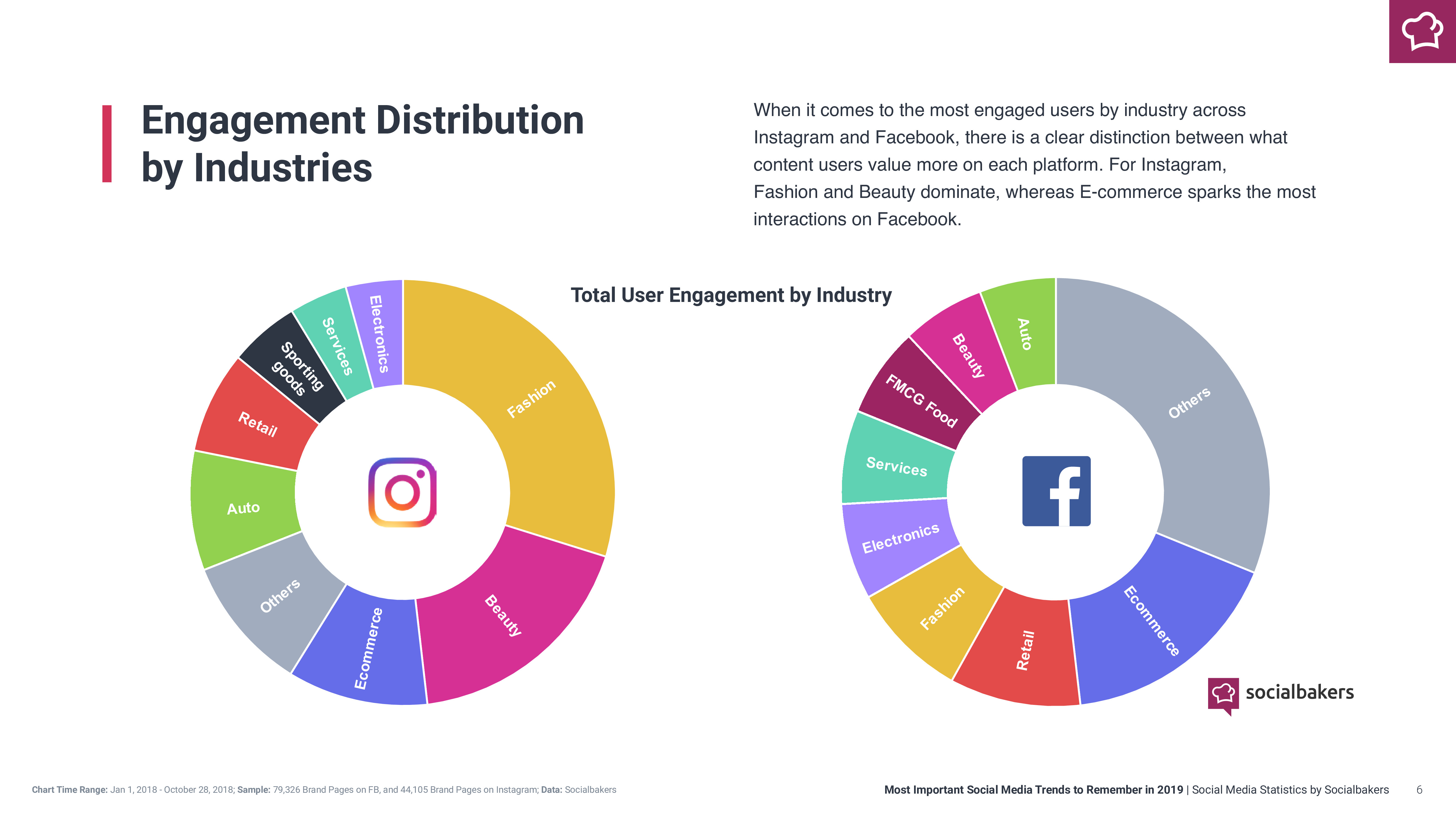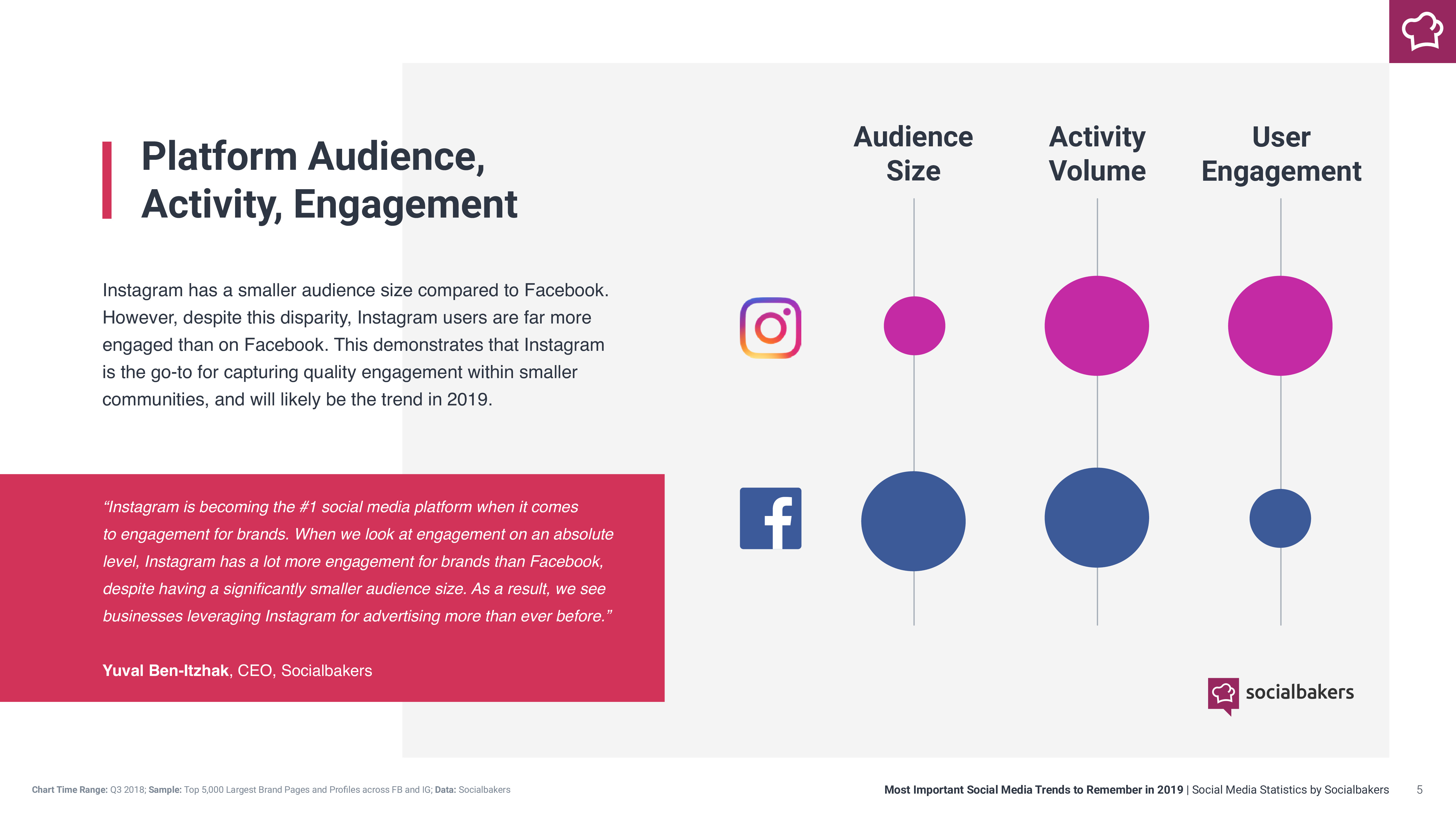 与Facebook相比,Instagram的受众规模较小。但是Instagram用户的参与度比Facebook高得多。这表明Instagram是在较小的范围内获得质量较高的参与的首选平台社区,并可能成为2019年的趋势。