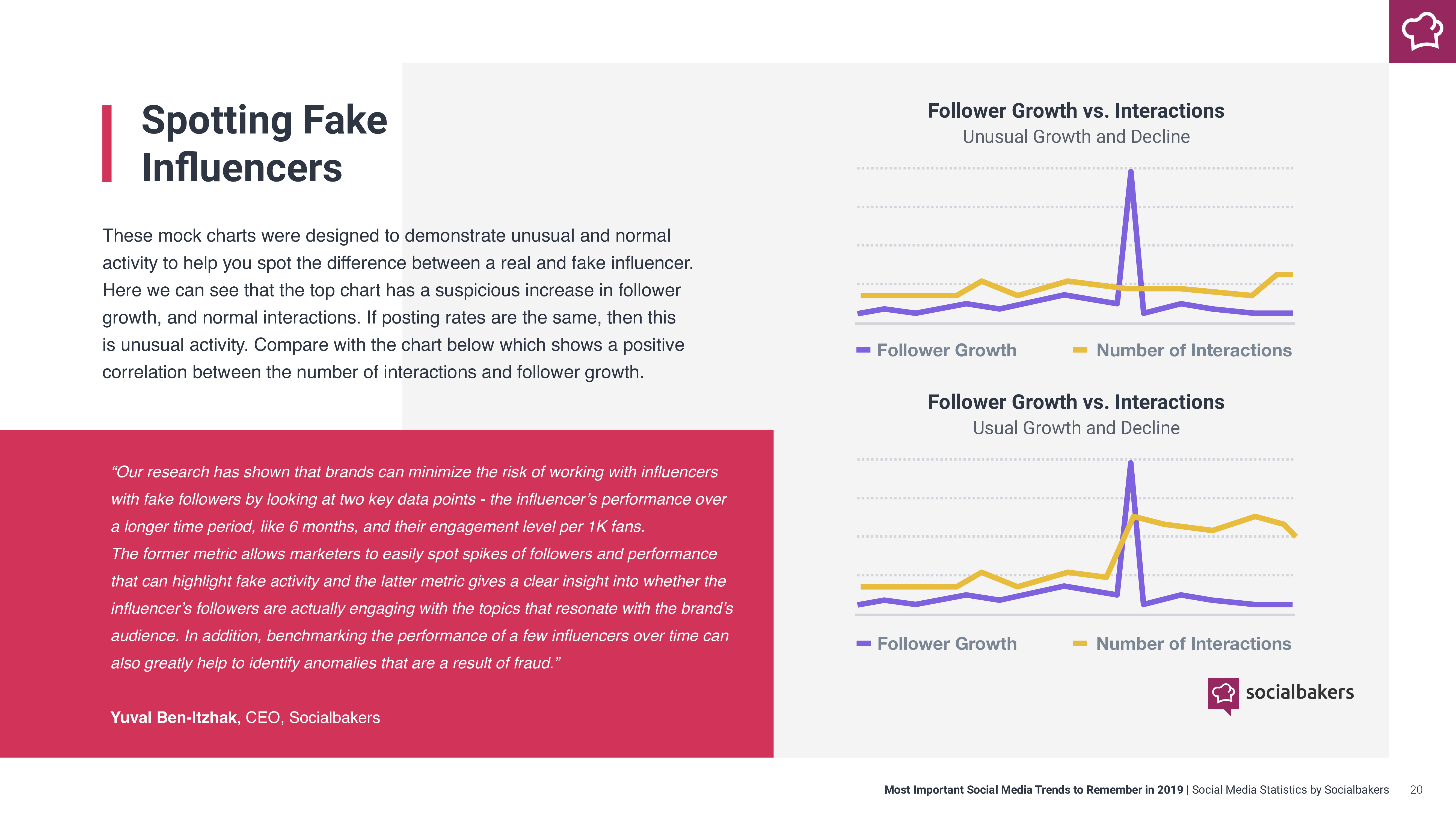 到2019年,意见领袖营销将达到23.8亿美元。鉴于利润丰厚,意见领袖营销领域存在欺诈行为也不足为奇。该行业面临的第一个挑战是确定真实账户和假账户。现在还没有防范策略,但是涉及到意见领袖营销时有三种欺诈活动:虚假粉丝、参与和兴趣。