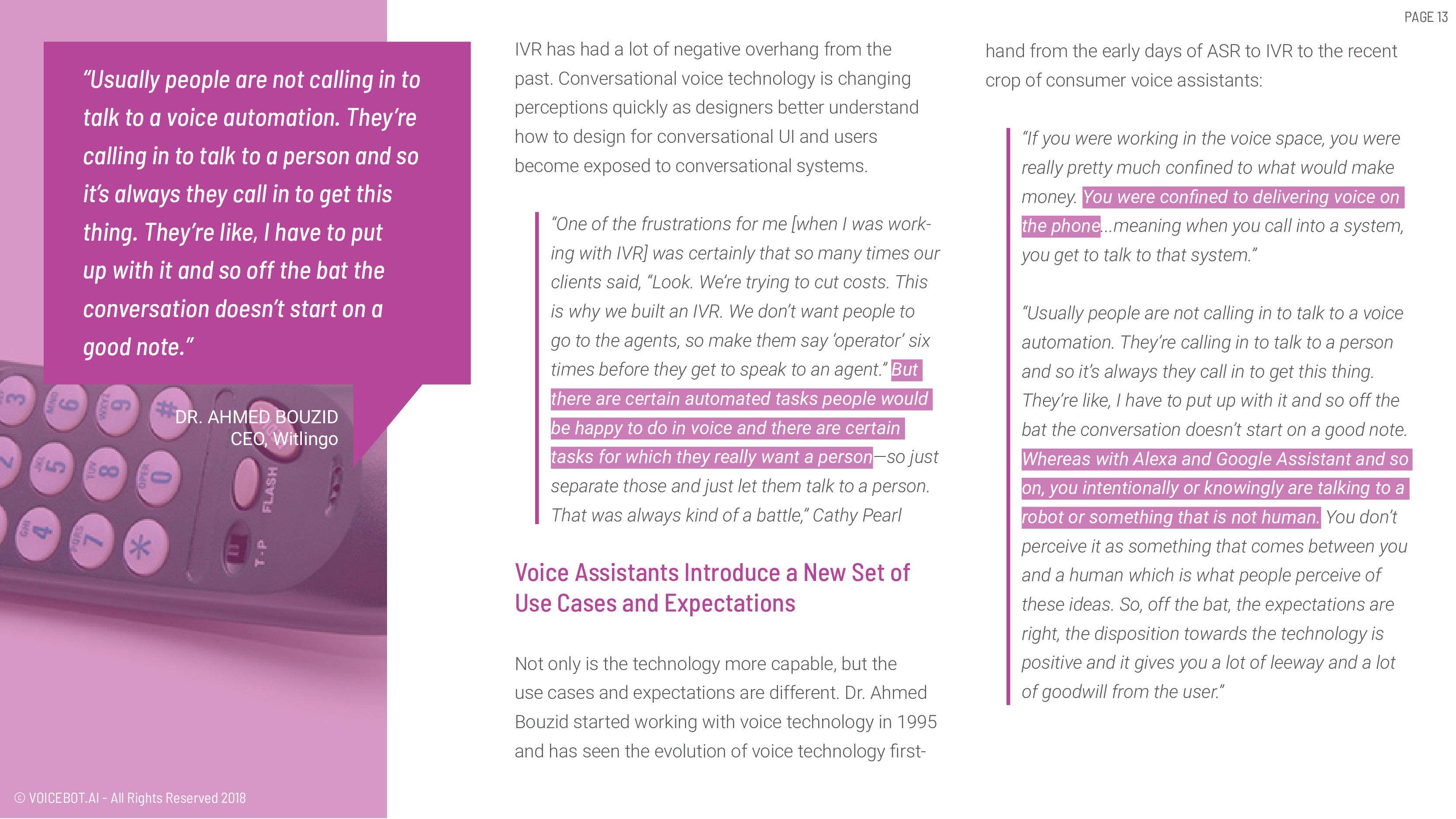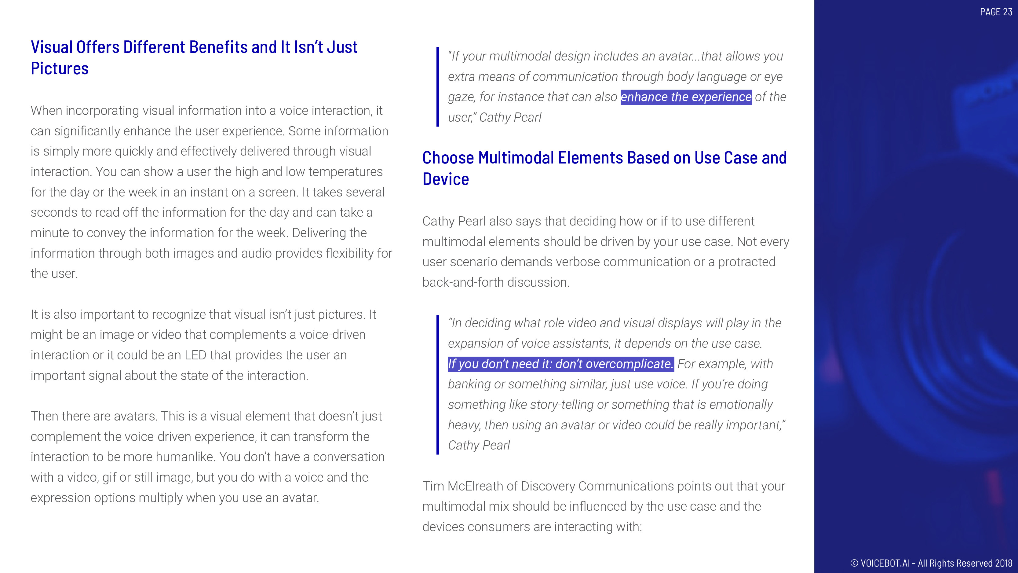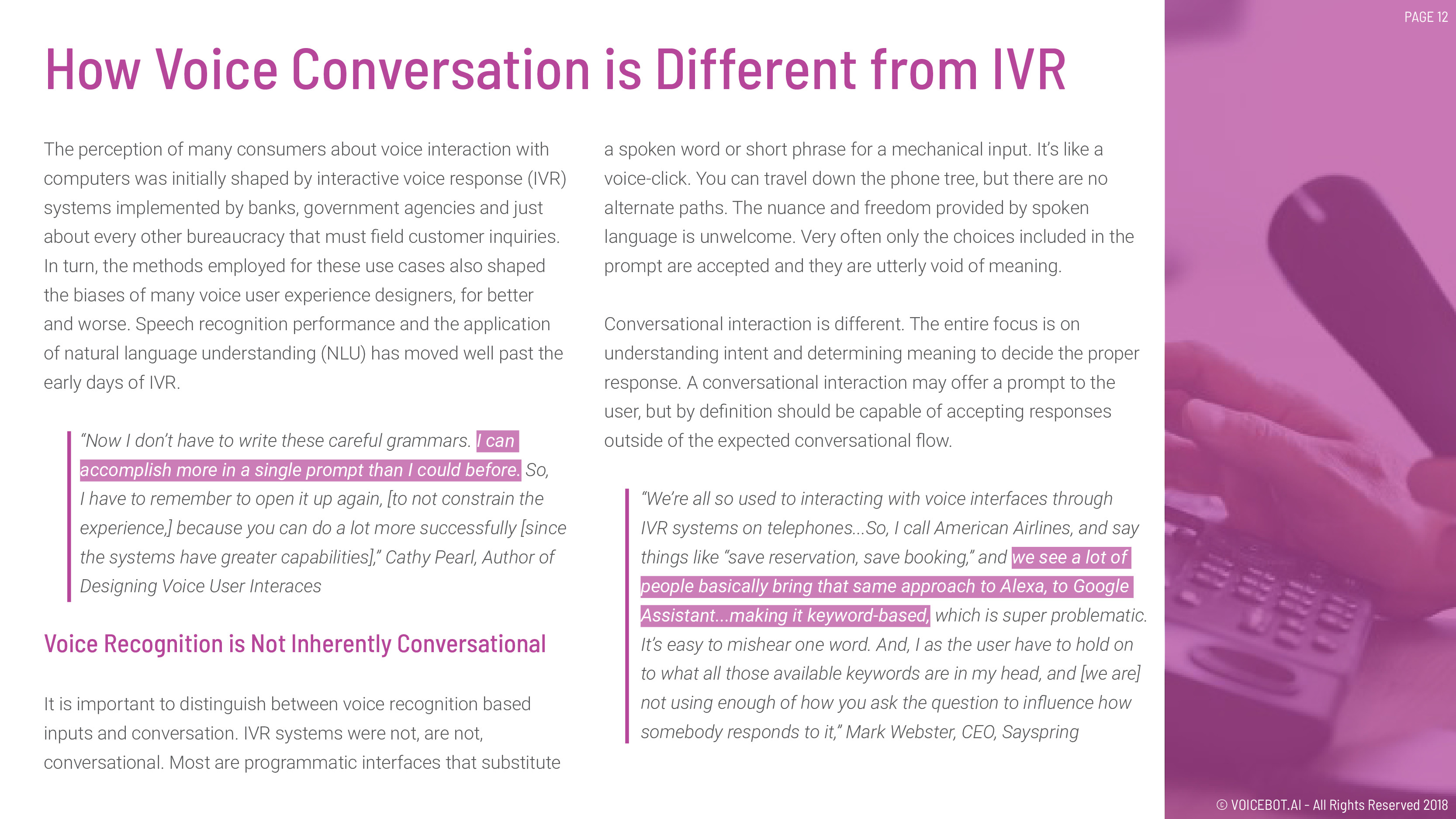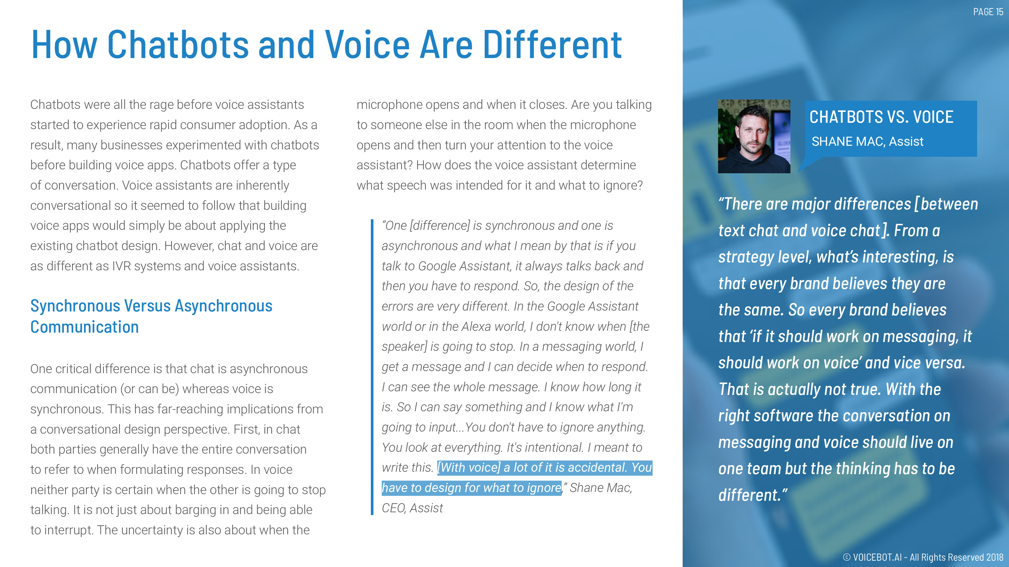 报告还分析了聊天机器人和语音技术的差异,即前者可以提供后者无法提供的视觉辅助。