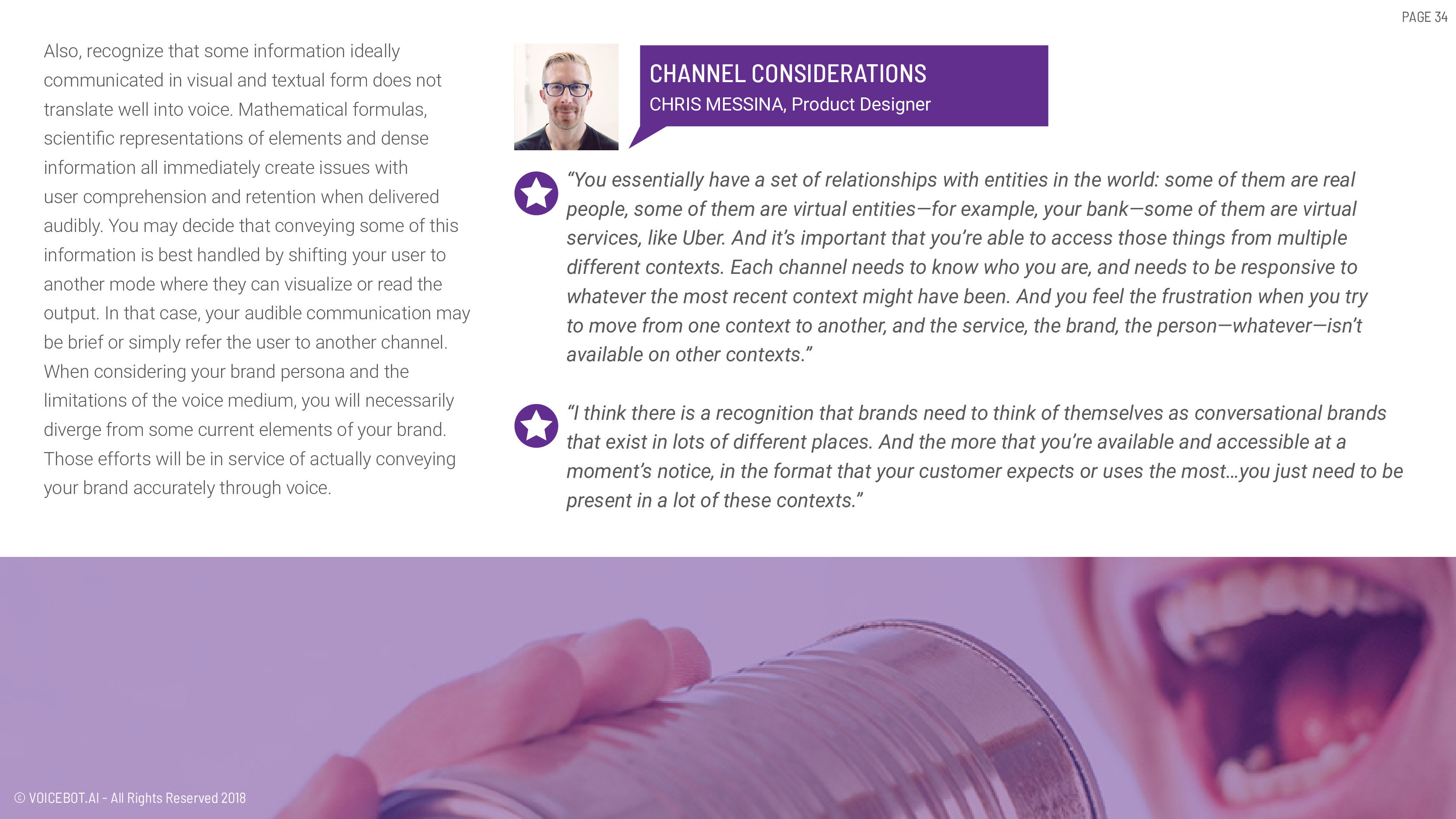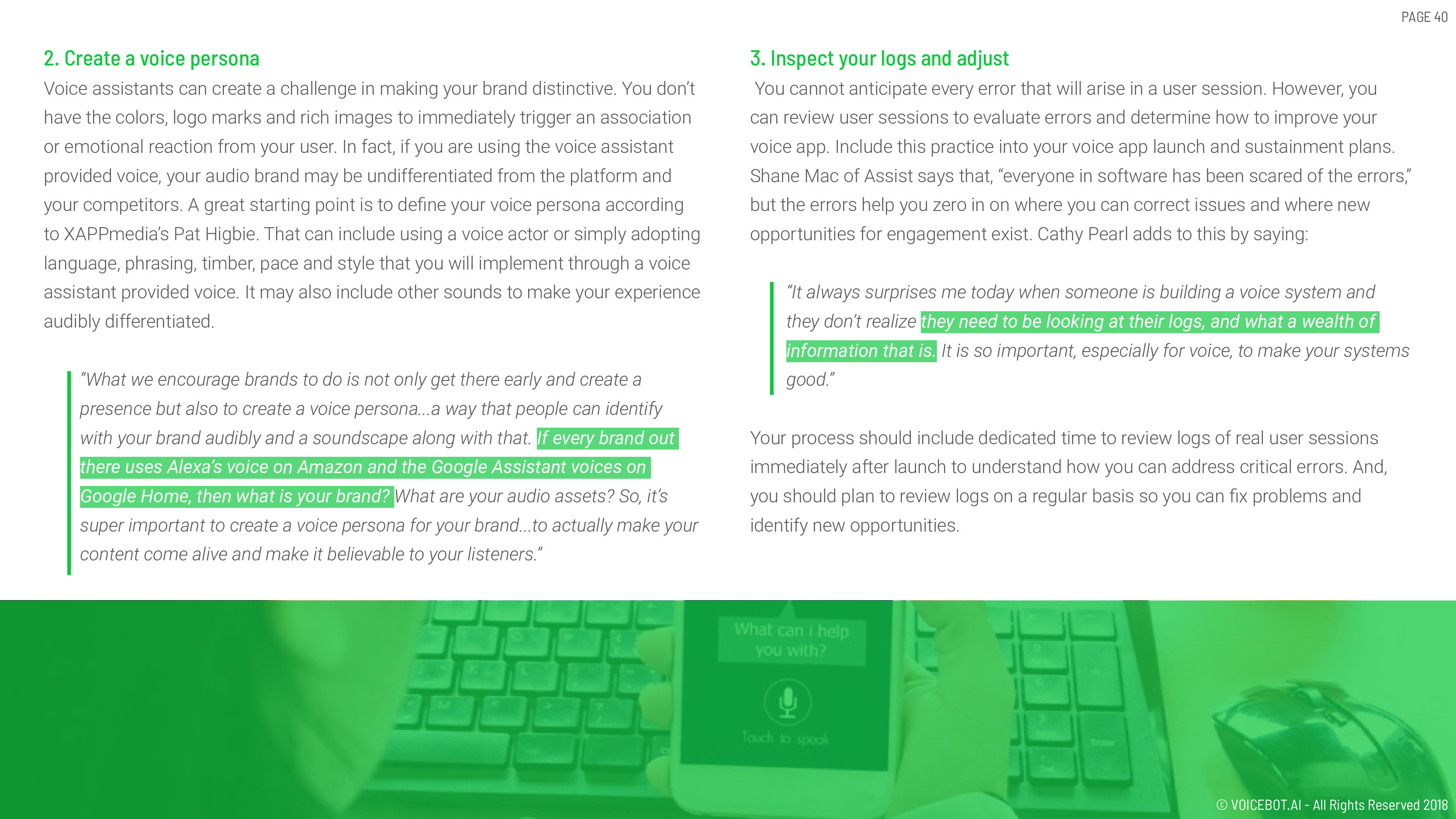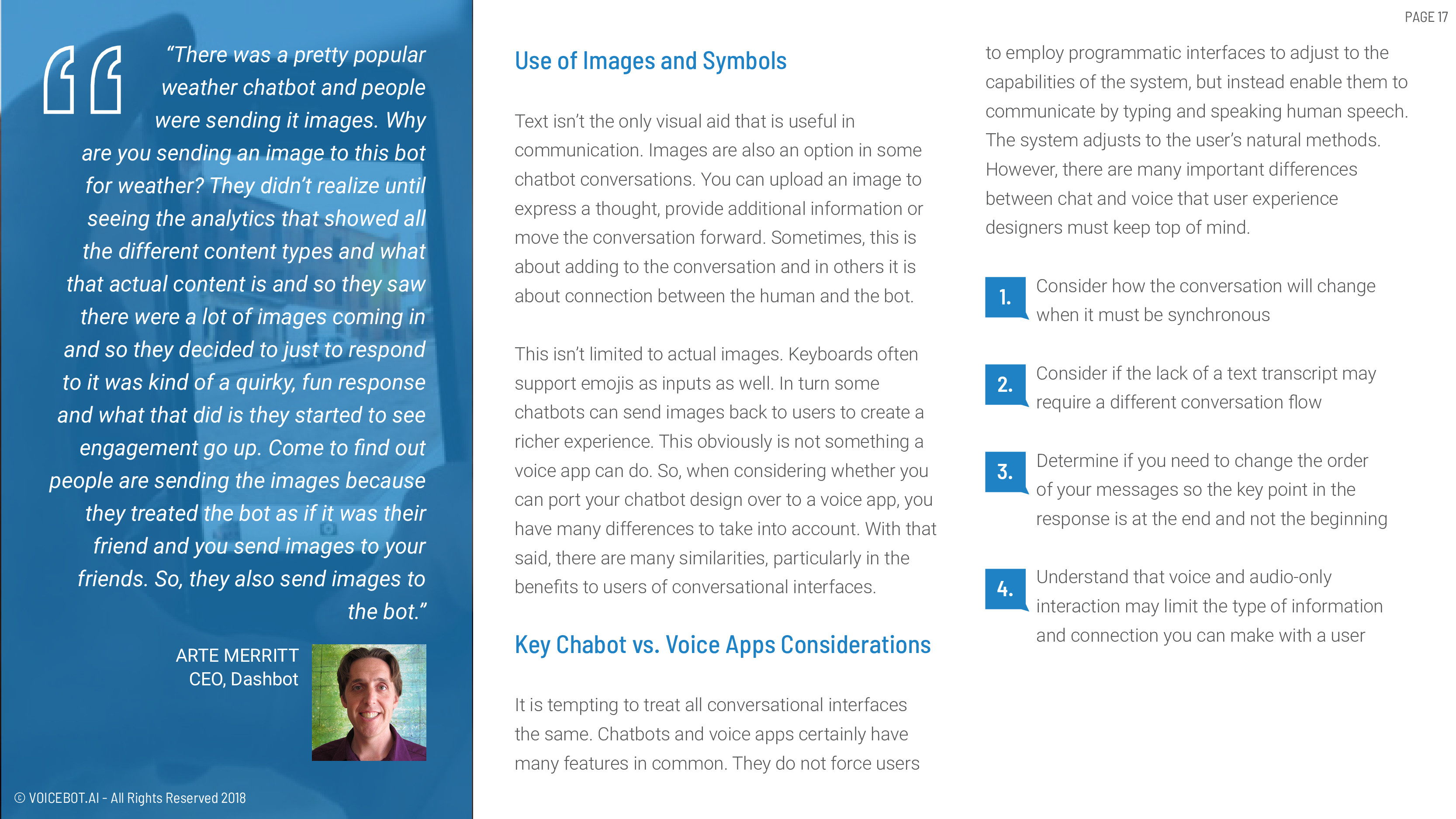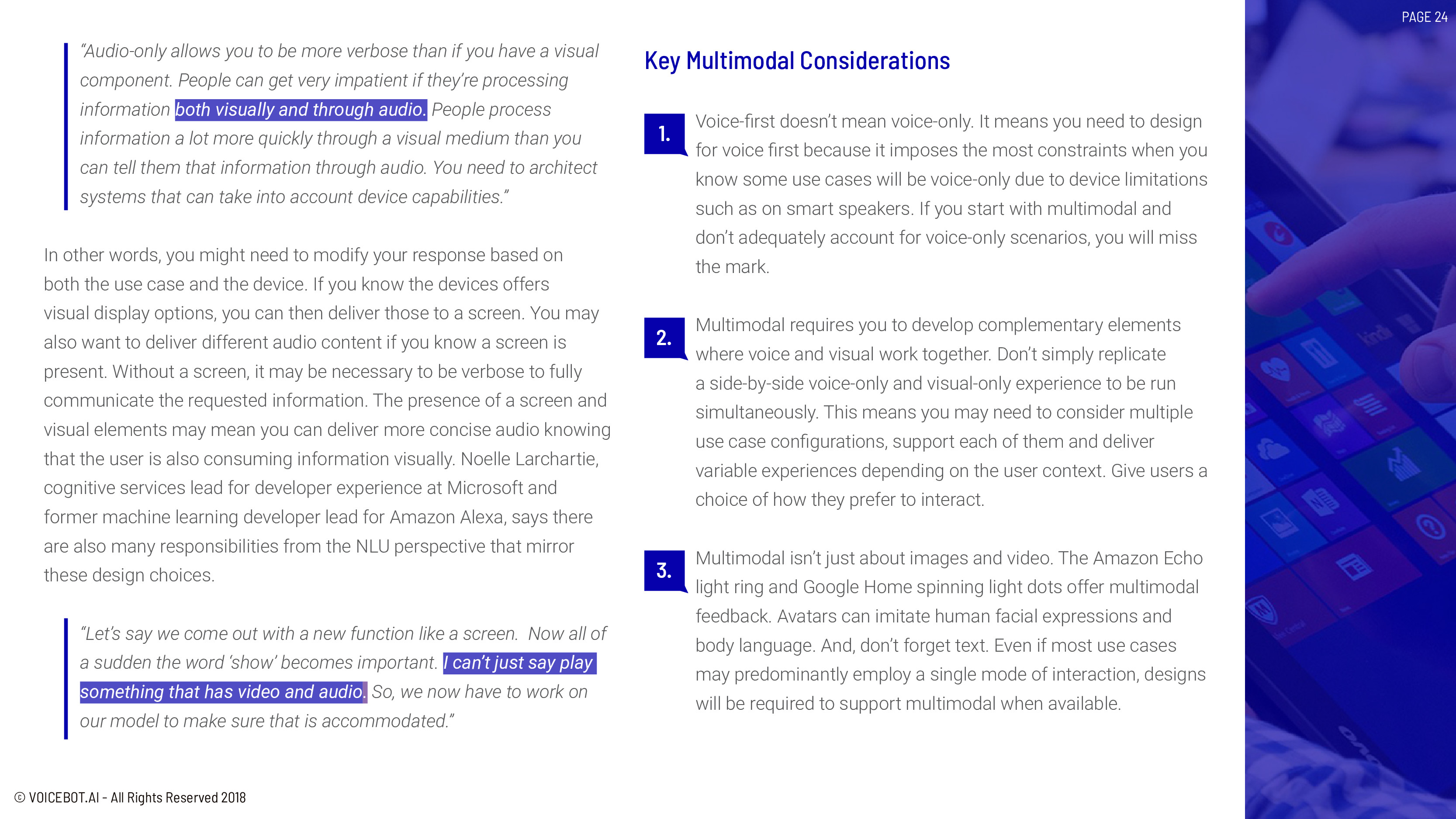 报告还分析了聊天机器人和语音技术的差异,即前者可以提供后者无法提供的视觉辅助。