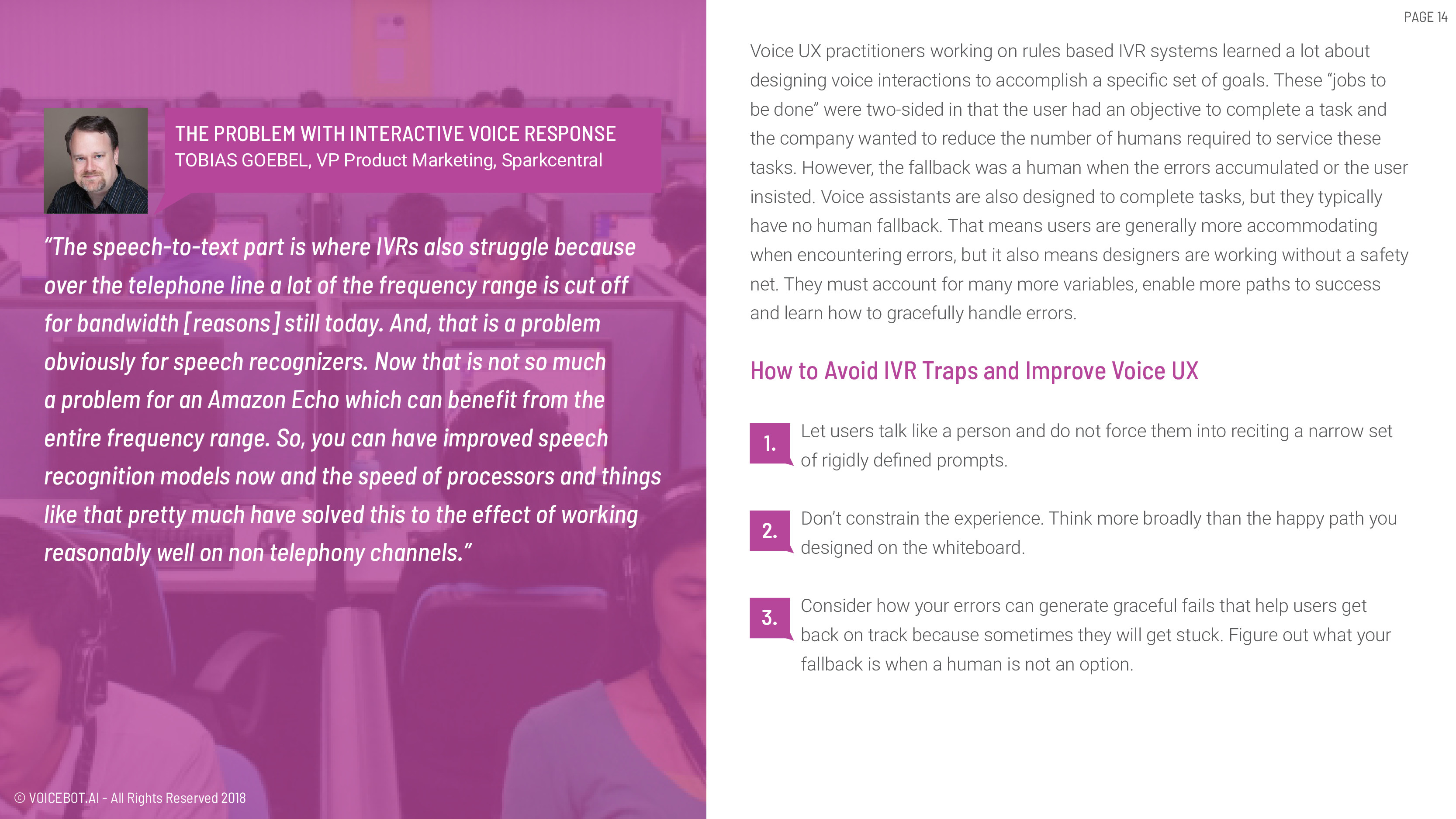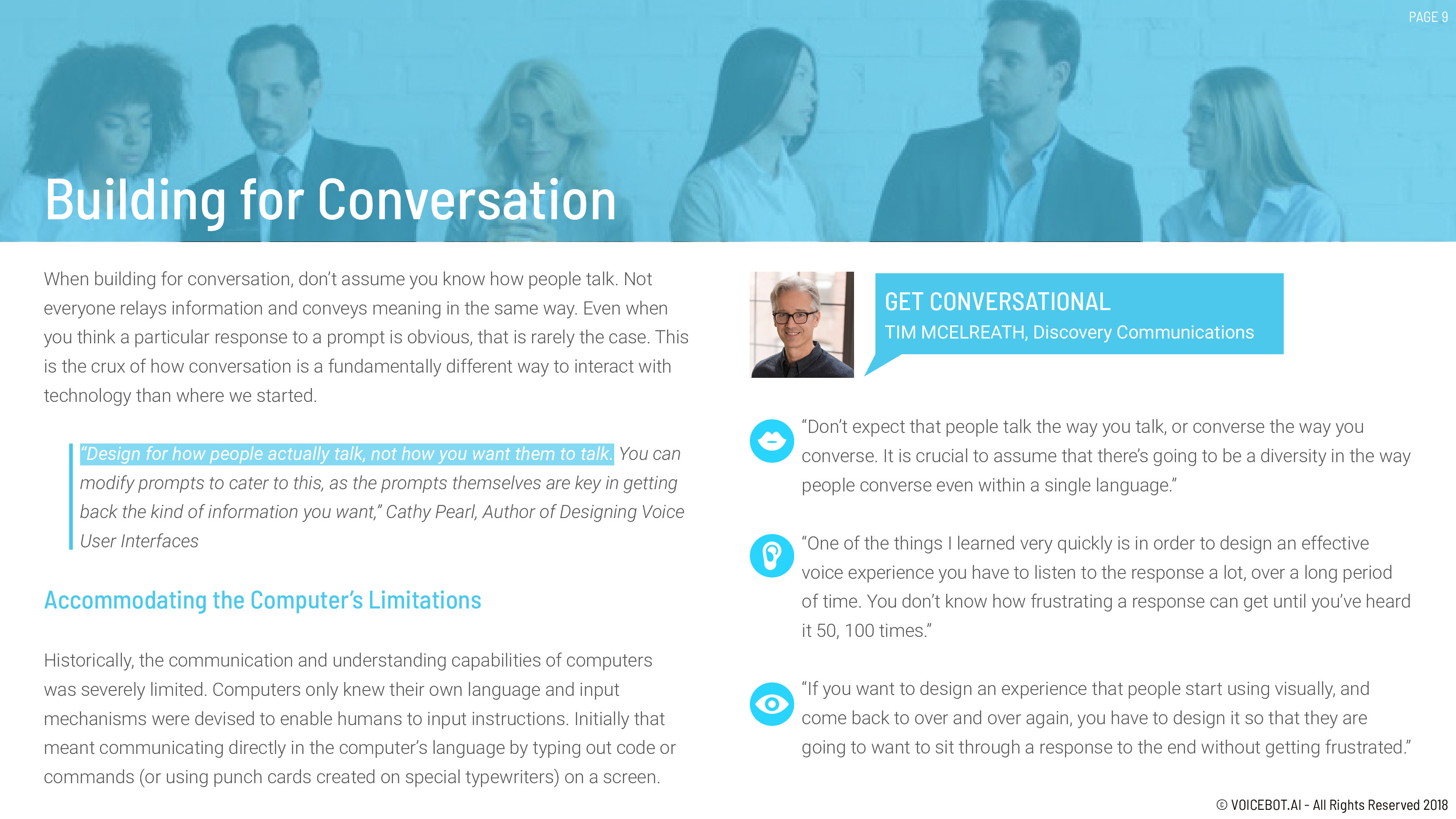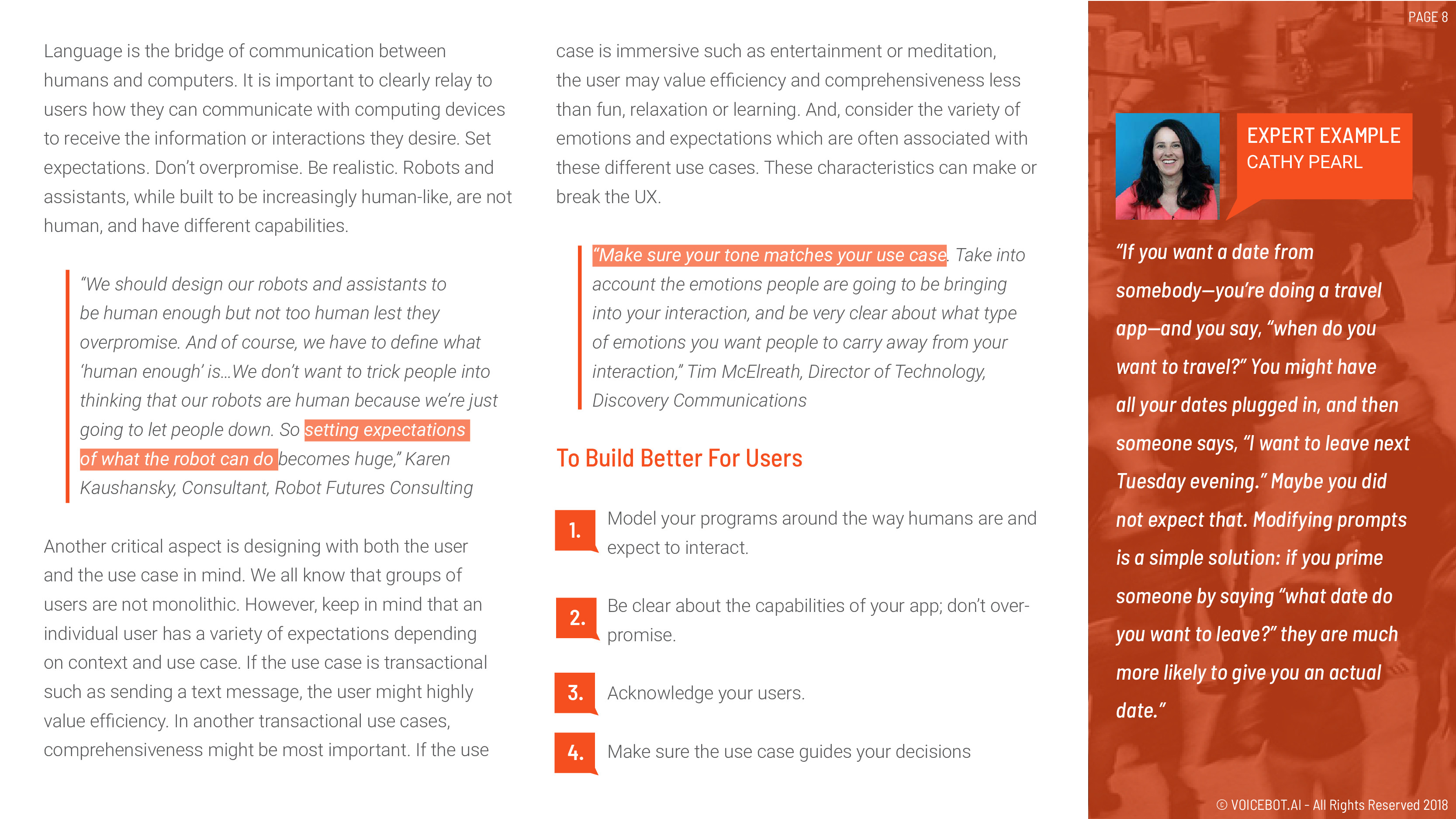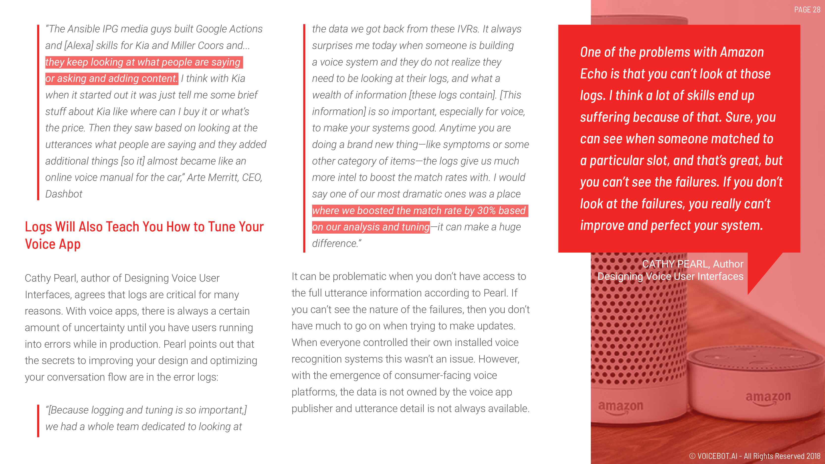 报告还分析了聊天机器人和语音技术的差异,即前者可以提供后者无法提供的视觉辅助。