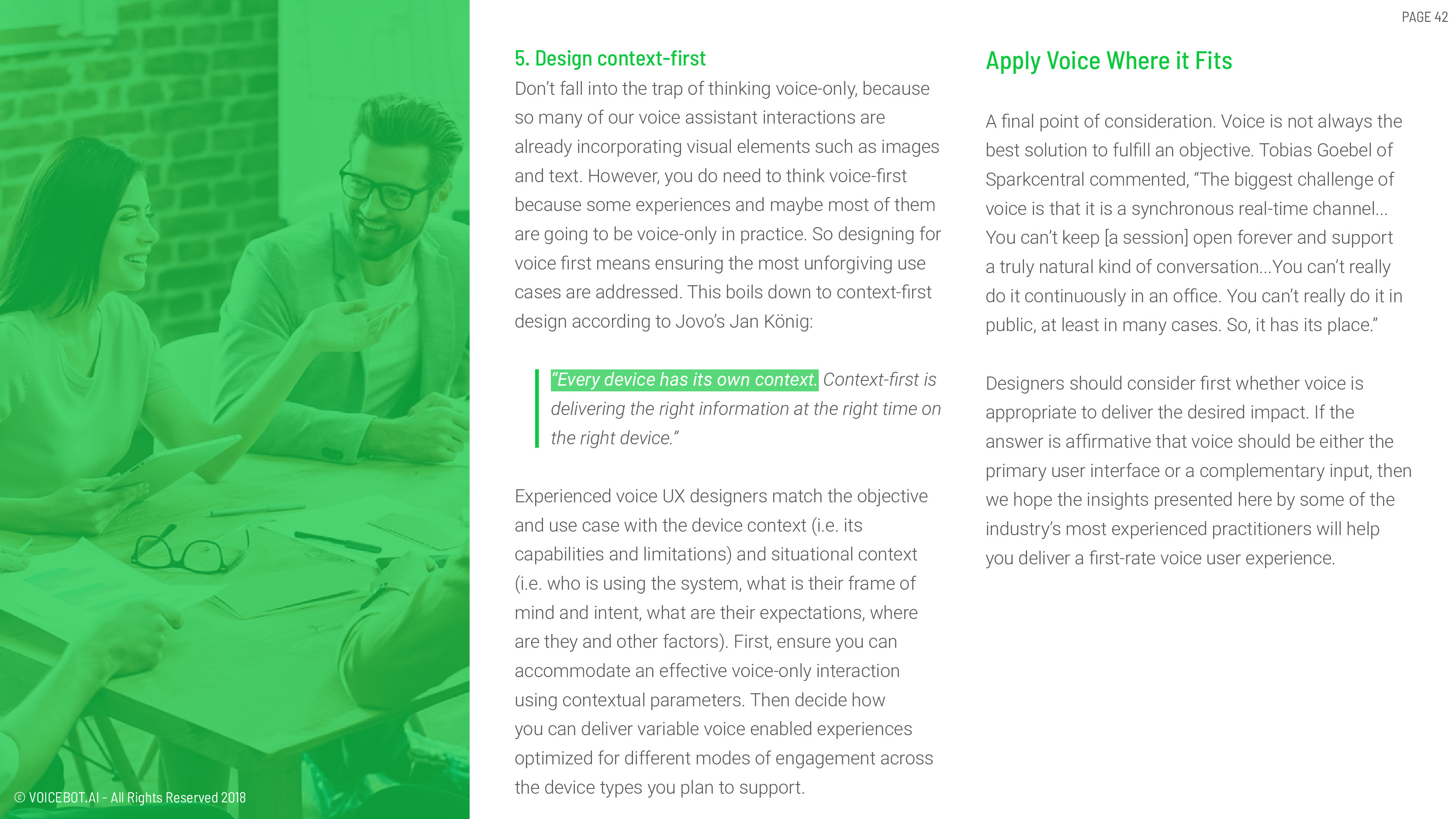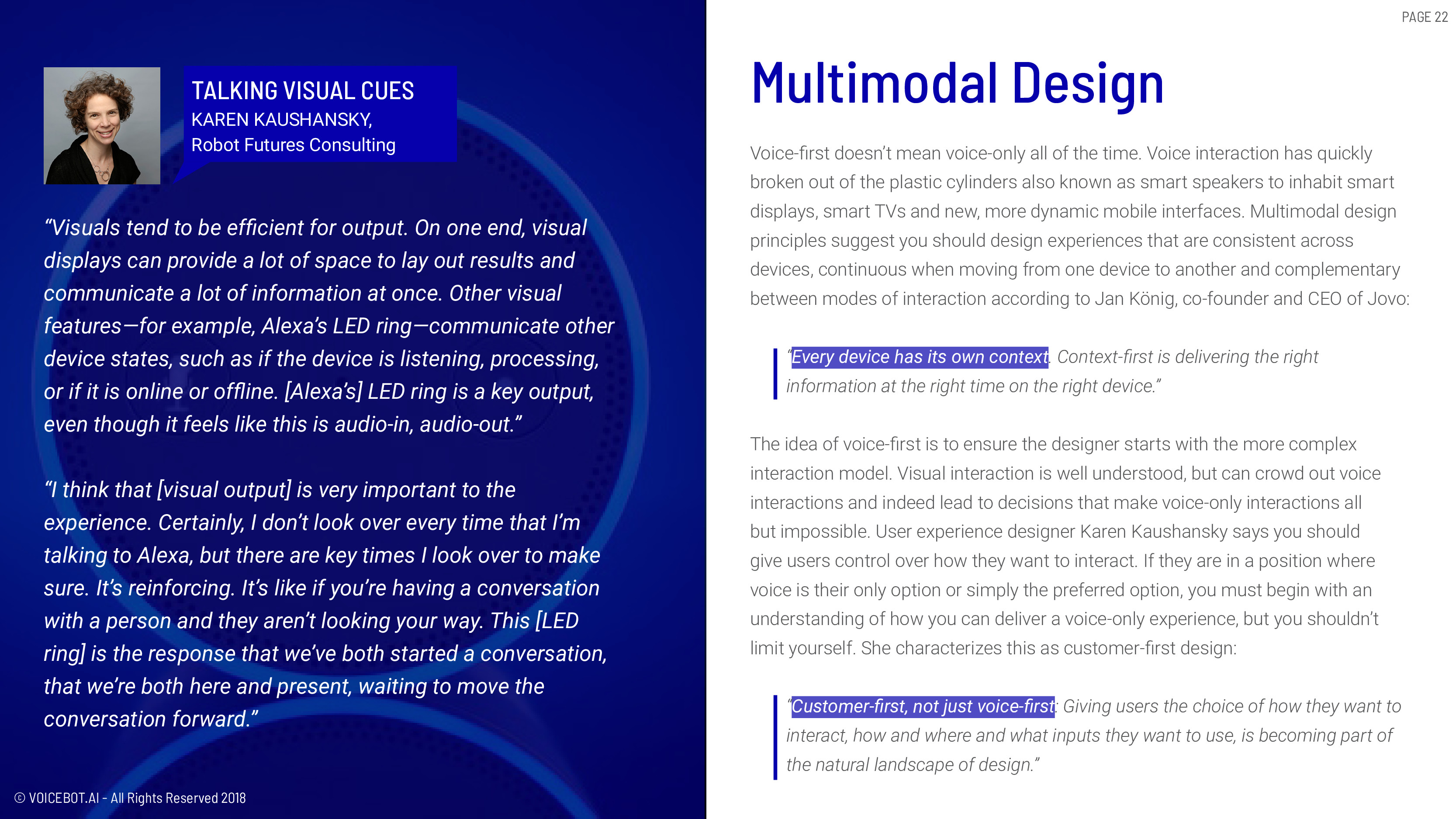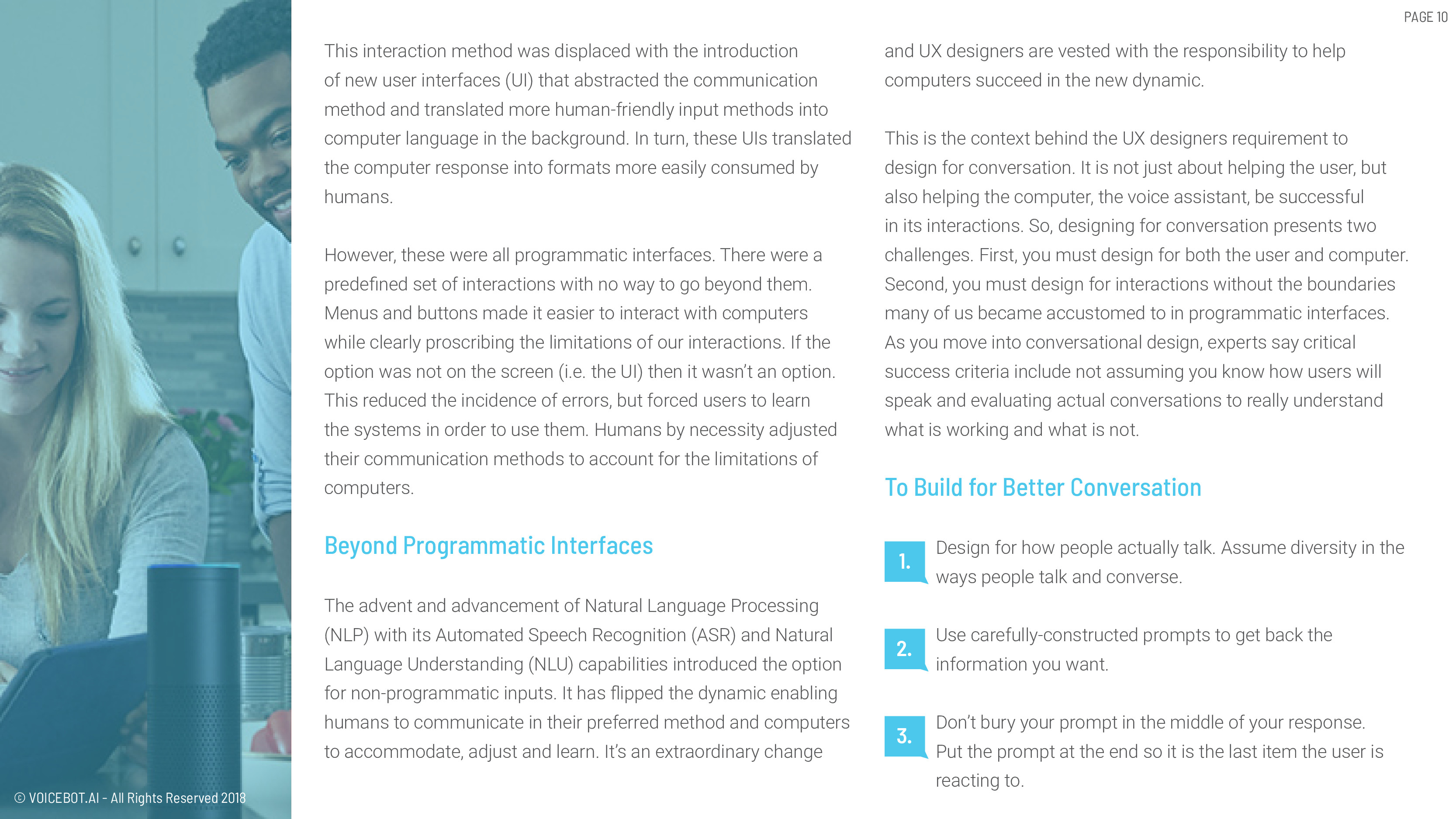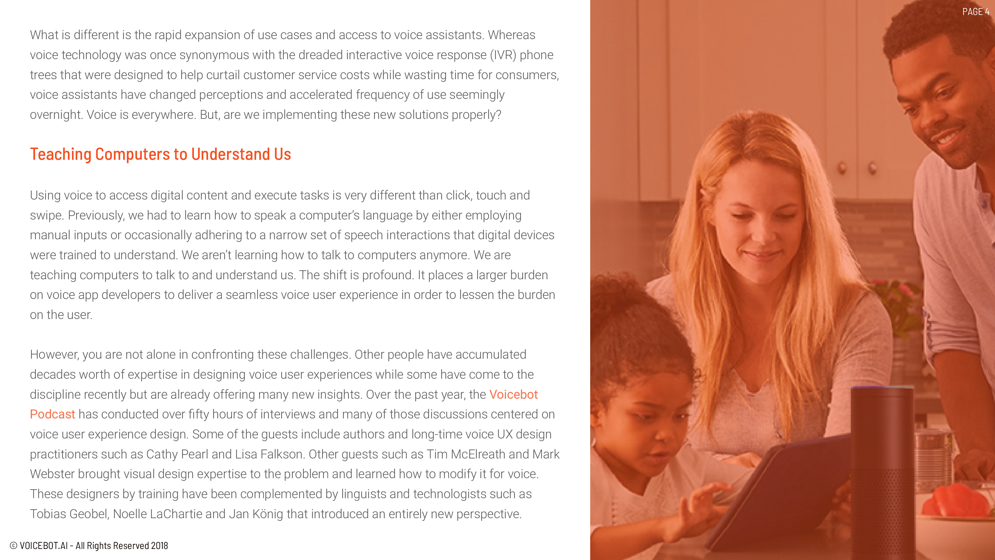 Voicebot.ai发布了“语音用户体验报告”。语音正在改变我们与个人设备交互的方式,即使在更大的环境中也是如此。例如,告诉Alexa设置一个10分钟的计时器,让Google智能助理拨打电话。