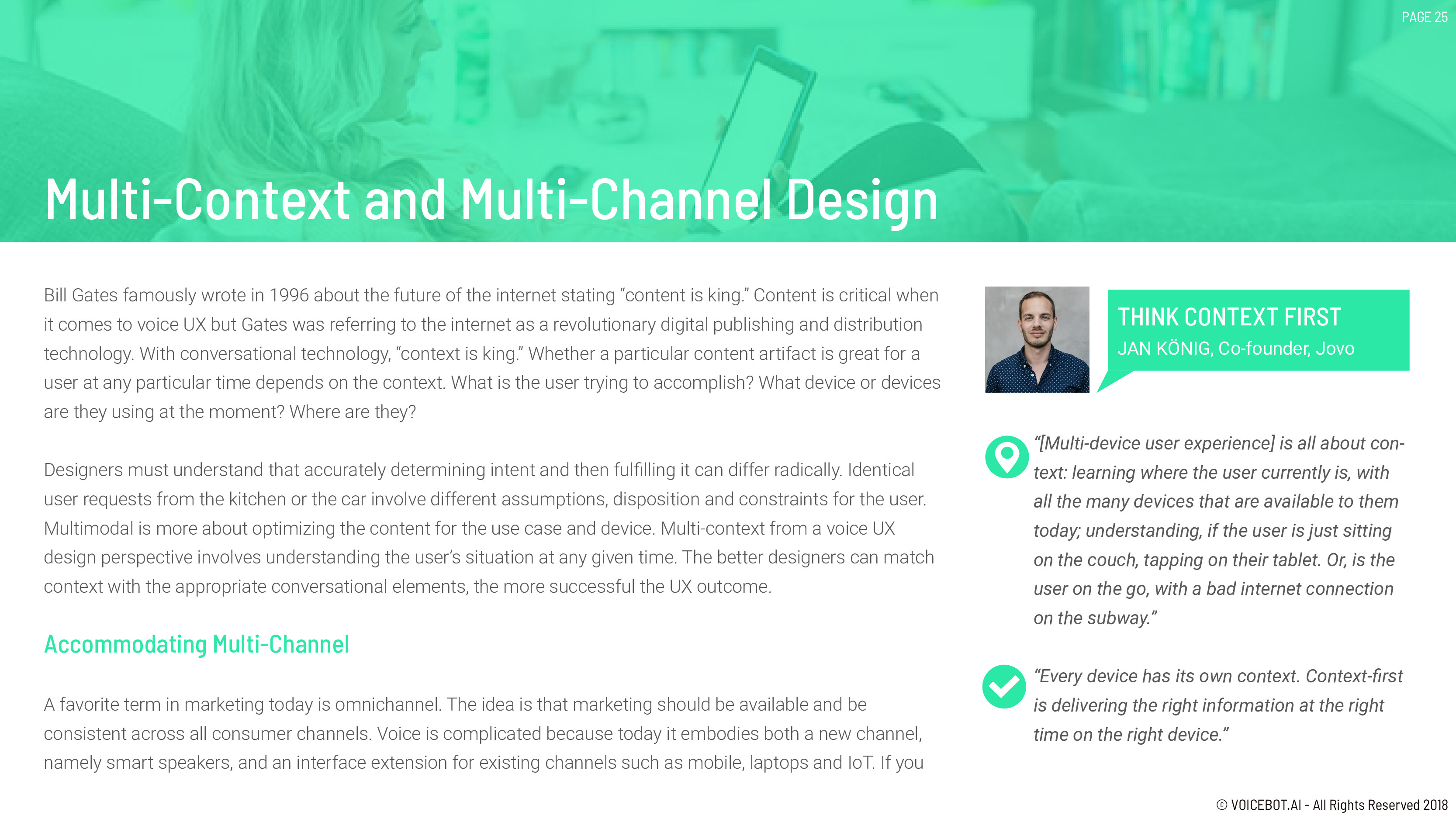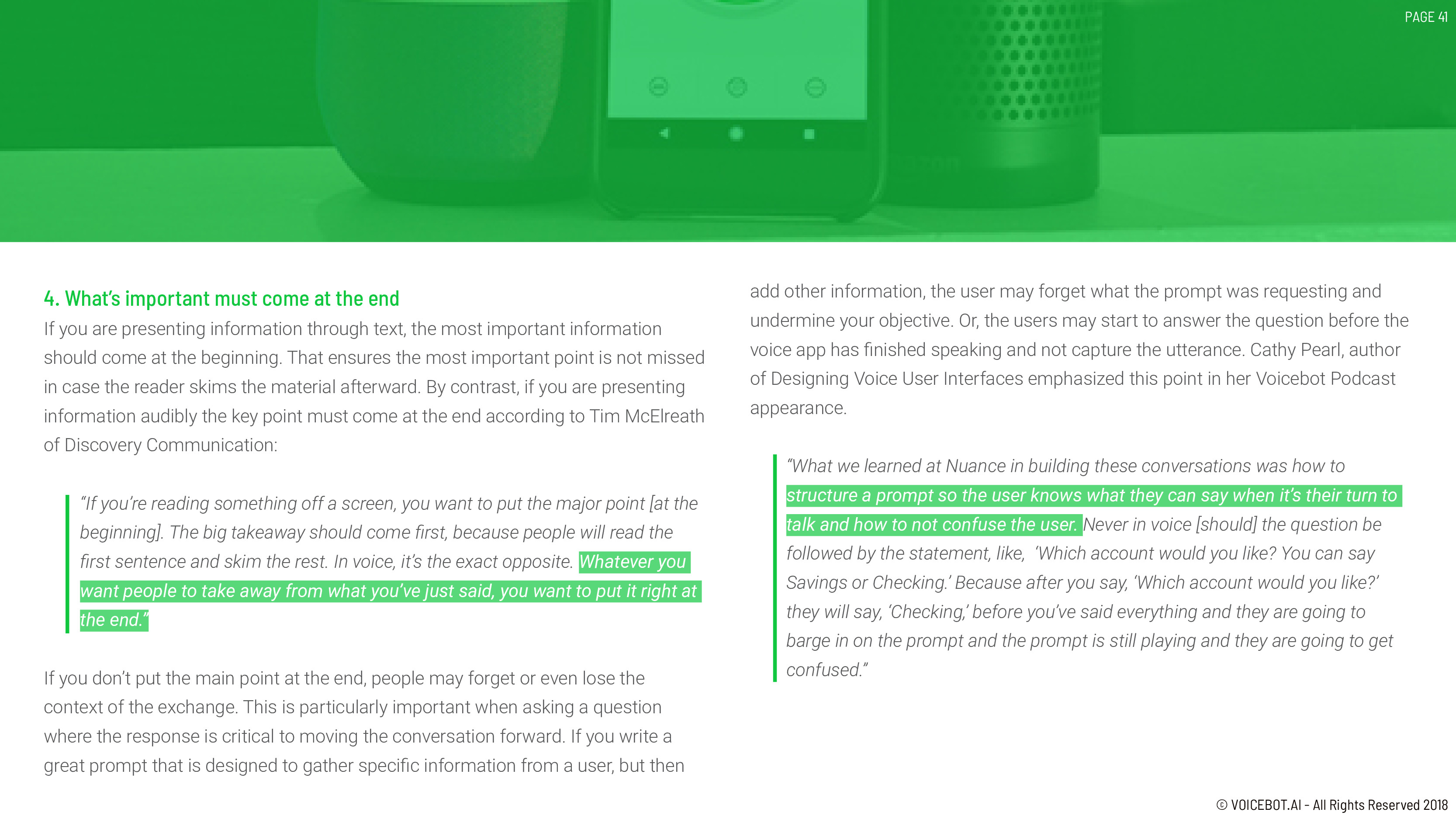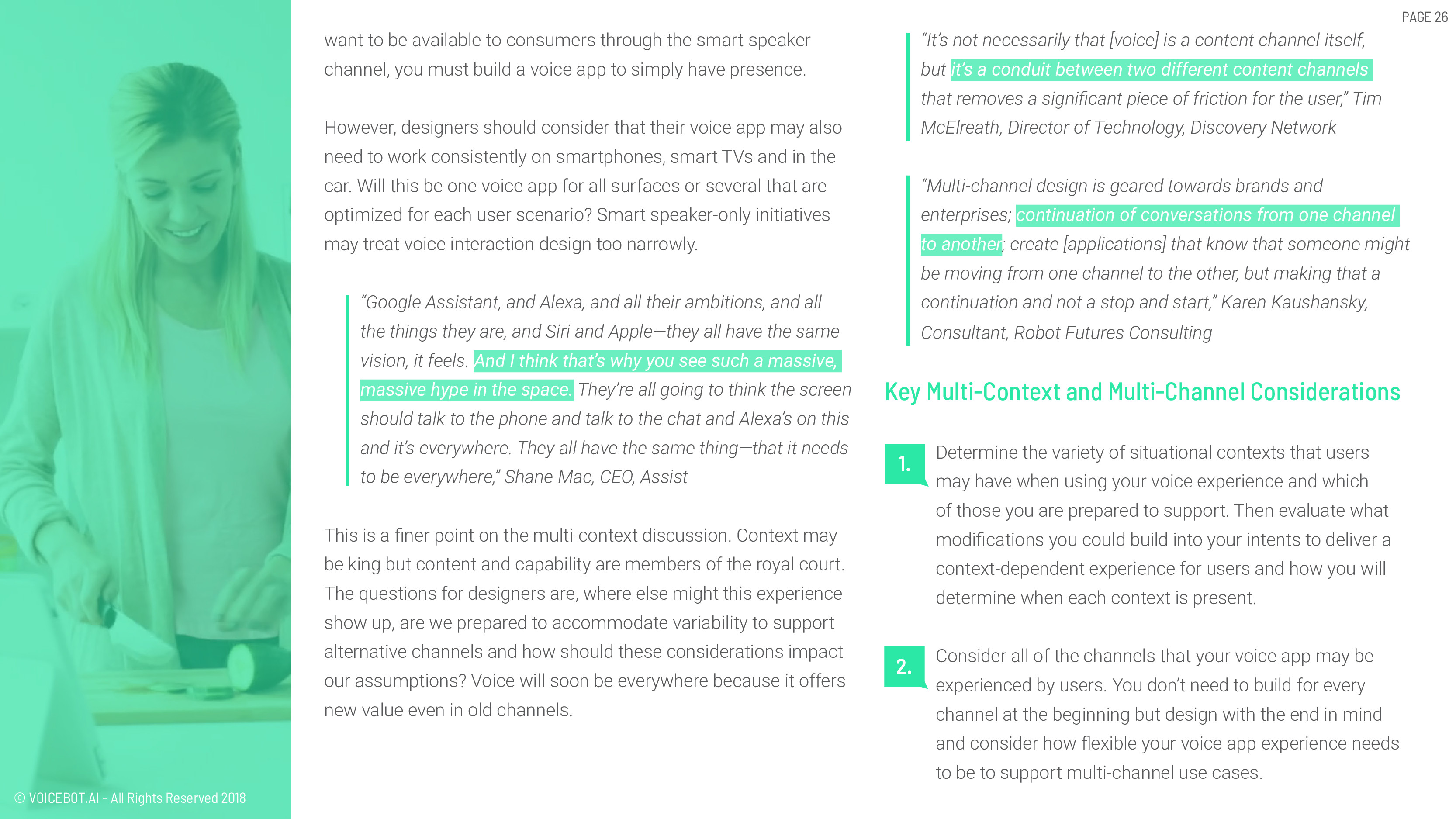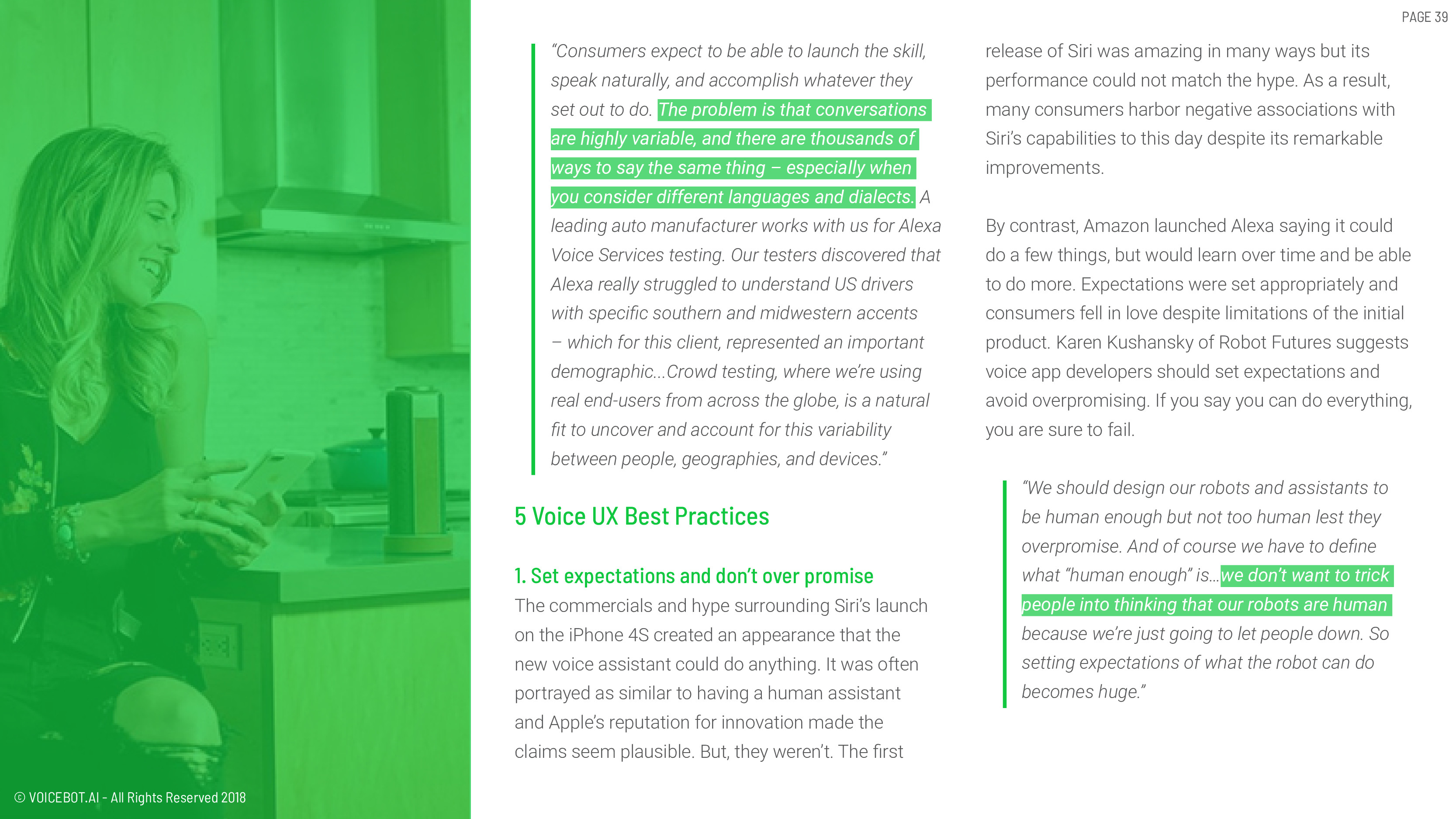 Voicebot.ai发布了“语音用户体验报告”。语音正在改变我们与个人设备交互的方式,即使在更大的环境中也是如此。例如,告诉Alexa设置一个10分钟的计时器,让Google智能助理拨打电话。