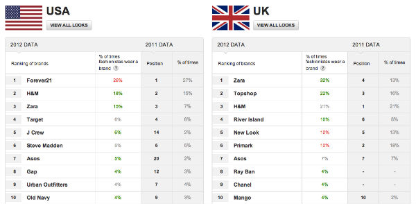 这里所说的排行榜也是 Chicisimo 所建立的,提供了各国各自流行的品牌及其份额。Gabriel 表示这种模式其实借鉴了 iTunes 等音乐行业的模式,通过收集数据来分析受众行为,而不单单只是销售数据。