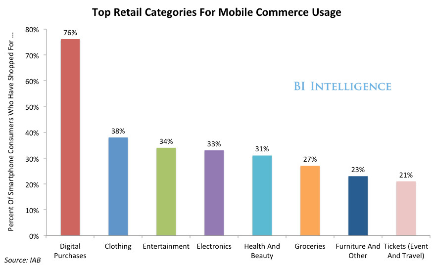 此图表明:哪些商品种类是移动购物的主力?