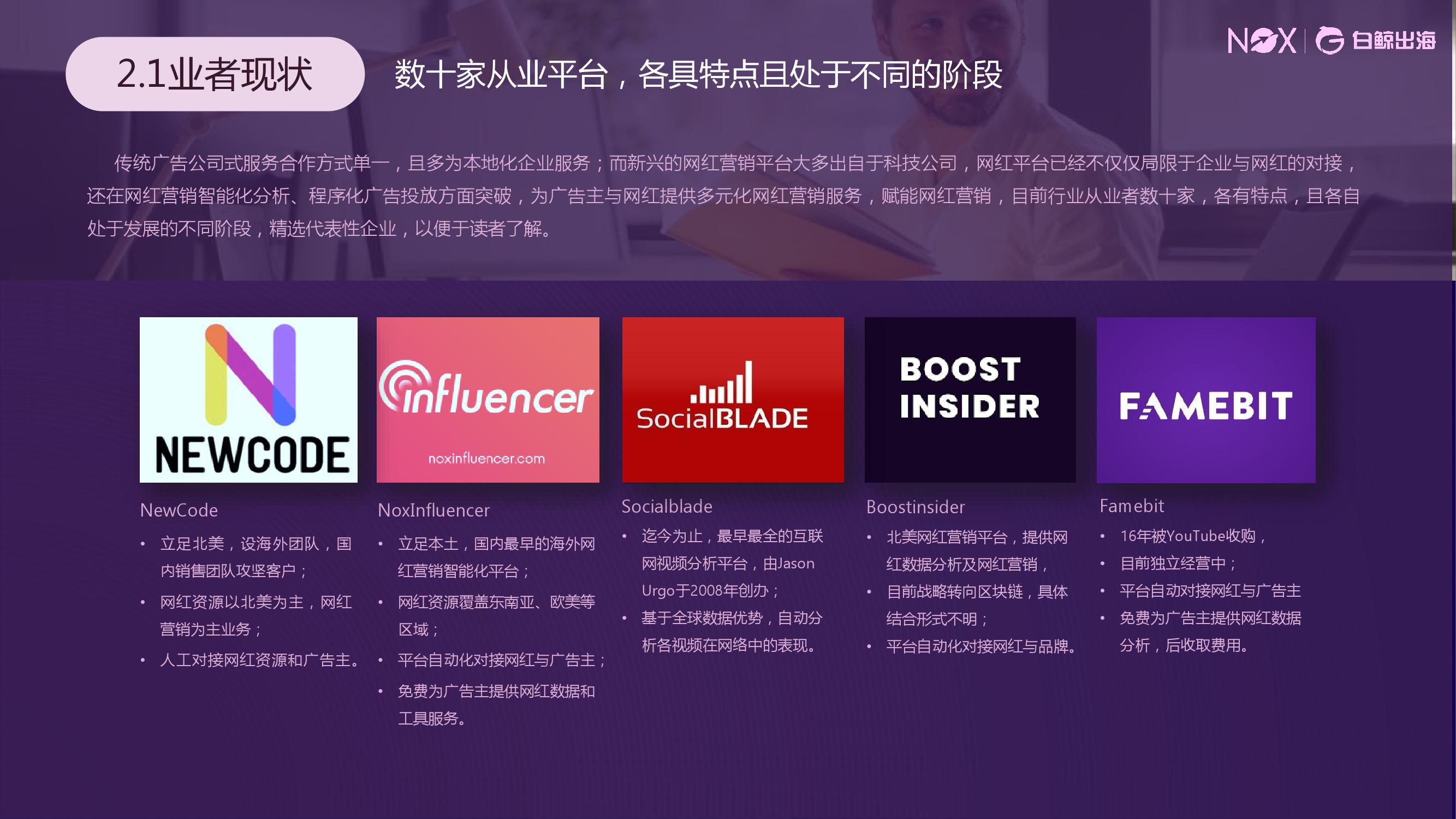处于风口的网红(海外)营销,真容若隐若现,为了让行业近距离了解网红营销的行业生态,Nox基于从业经验、大数据技术以及多方行业资料的调研与分析,以报告的形式与行业进行结果共享。
