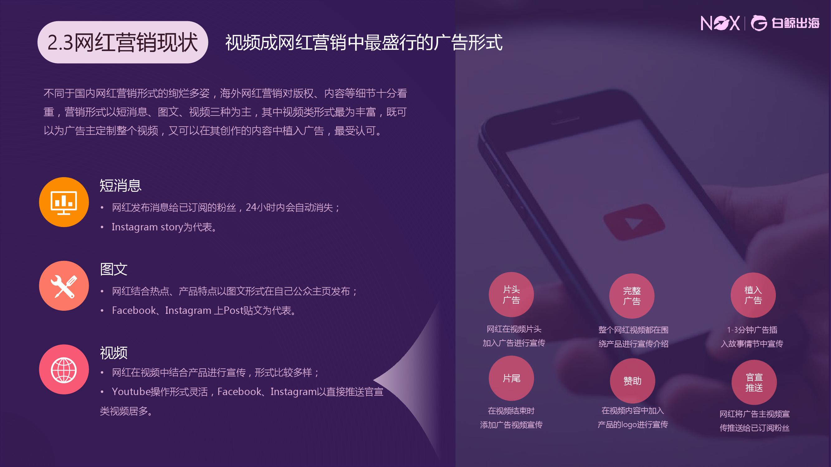 由NoxInfluencer联合白鲸出海《2018年度海外网红营销研究报告》新鲜出炉,围绕海外网红营销现状与发展,出海企业网红营销投放偏好与面临难题,海外网红投放的方法洞察与分享,将为您拨开海外网红营销层层云雾,预见2019年海外网红营销趋势!