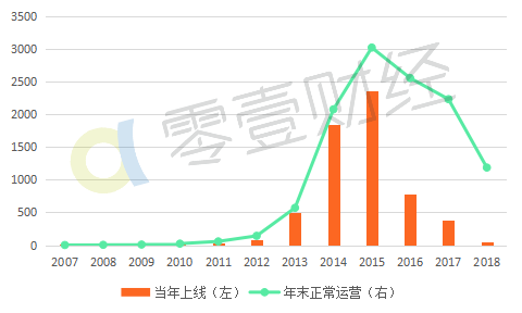 截至2018年12月31日,零壹数据监测到的P2P网络借贷平台共6063家(该统计剔除了334家上线时间、问题时间、转型时间等不明确的P2P网络借贷平台,下文同此同径;仅包括有PC端业务的平台,且不含港台澳地区,下同),其中正常运营的平台数量为1185家(占比19.5%)同比减少46.8%,异常平台(不含转型、争议和良性退出的平台)数量为4672家(占比77.1%)。2018年全年度上线的平台数量仅55家,同比减少了85.8%。2018年1月上线平台数量为该年度最高,达到19家;10月开始无新平台上线。