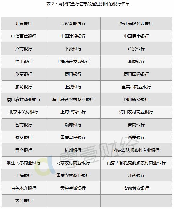 9月20日,中国互联网金融协会登记披露平台首次公布了25家资金存管系统通过测评的银行名单(“白名单”),此后又分别公布了9批共18家通过测评的银行,最后一批“白名单”的公布时间为12月29日。