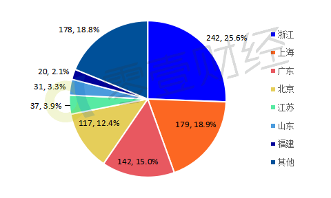 据零壹数据统计,2018年浙江省问题平台最多,达到242家,占到2018年度全国问题平台的25.6%,北京问题平台在“网贷四省”中数量最少,占比为12.4%。