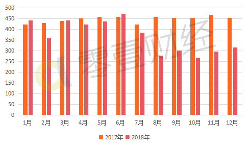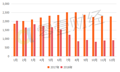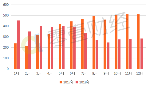 图2:2018年P2P网贷平台数量走势(单位:家)