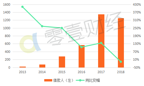 2018年,我国P2P网贷行业活跃借款人(不区分个人和机构)估计在1252万左右,同比降幅为7.26%。人均借贷金额为12.9万元,较2017年(20.1万元)减少了36%。