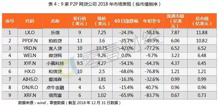 就P2P网贷而言,爱鸿森、点牛金融、小赢科技(旗下网贷平台为小赢网金)和微贷网在2018年先后上市。爱鸿森与点牛金融登陆纳斯达克,其业务规模较小、市值较低;小赢科技与微贷网在纽交所上市,业务规模相对较大、市值较高。