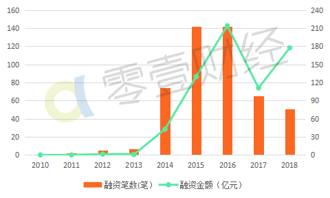 图17:中国P2P网贷行业股权融资年度趋势(2010至2018年)