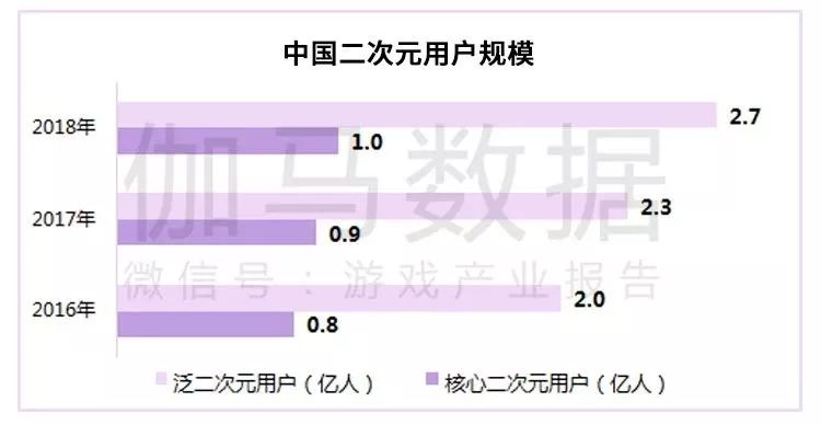 二次元是指由动画(Animation)、漫画(Comic)、游戏(Game)、小说(Novel)组成的文化圈,但不限于 ACGN,还包括从 ACGN 向外延伸出的手办、COSPLAY 等衍生产物。据伽马数据推算,2018年中国二次元用户规模达3.7亿,其中泛二次元用户2.7亿人,核心二次元用户1亿人。国内二次元产业的不断发展,为二次元游戏的发展奠定了基础。