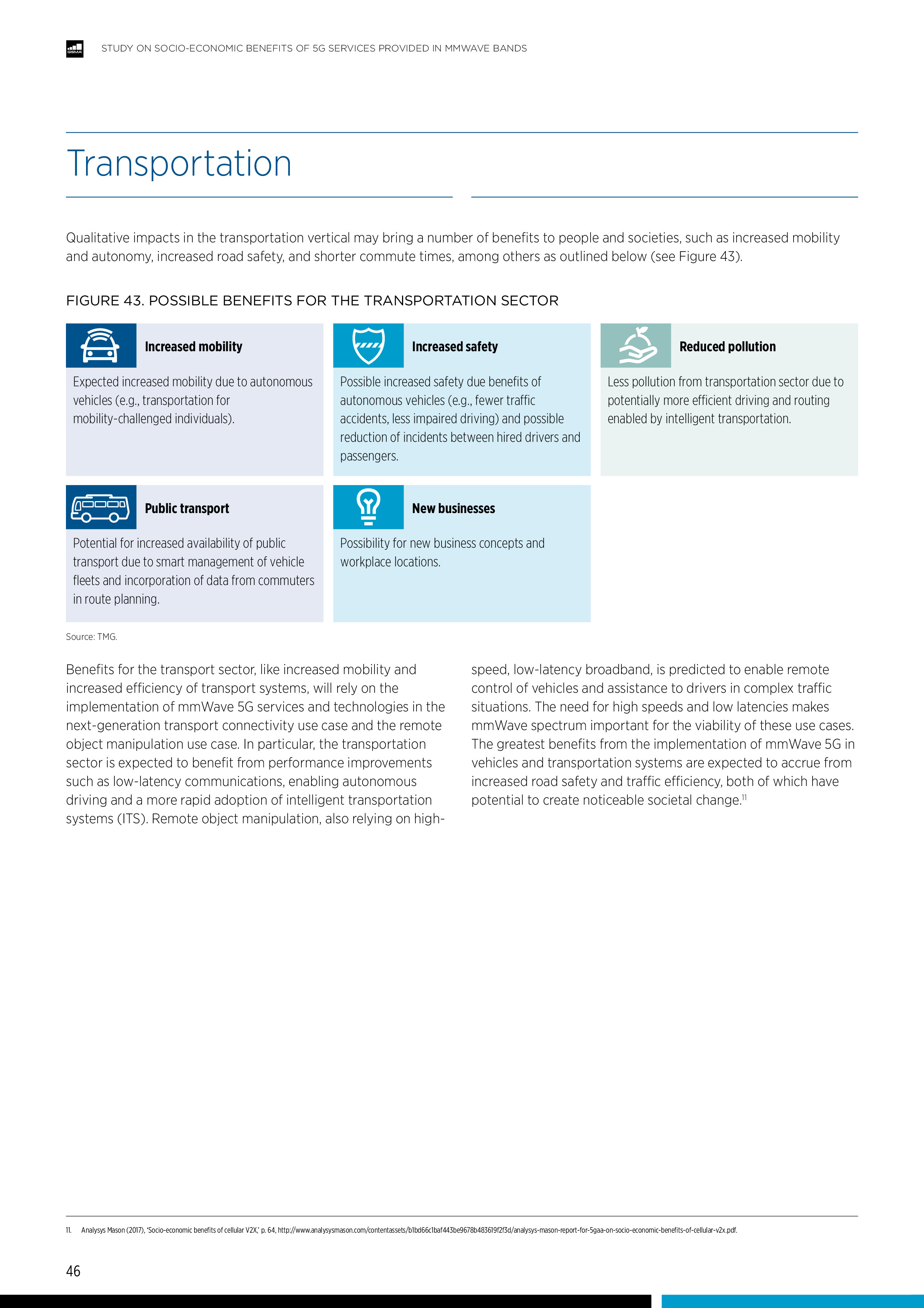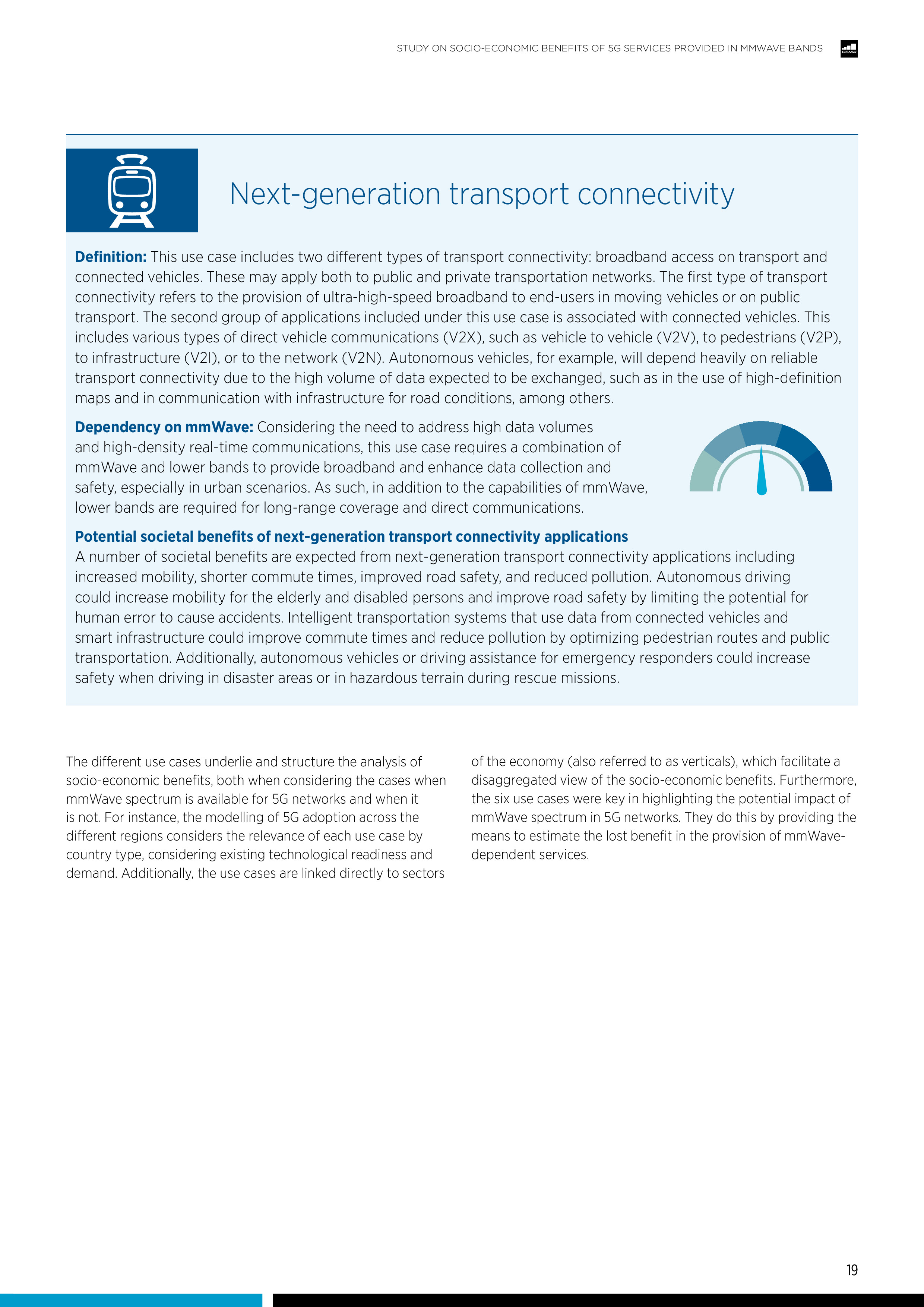 此外,mmWave 5G将使无人驾驶车辆能够相互通信,并利用云和物理环境不断地建立高效的公共交通网络。这些和许多其他创新用例预计将占5G创造的总价值的25%。