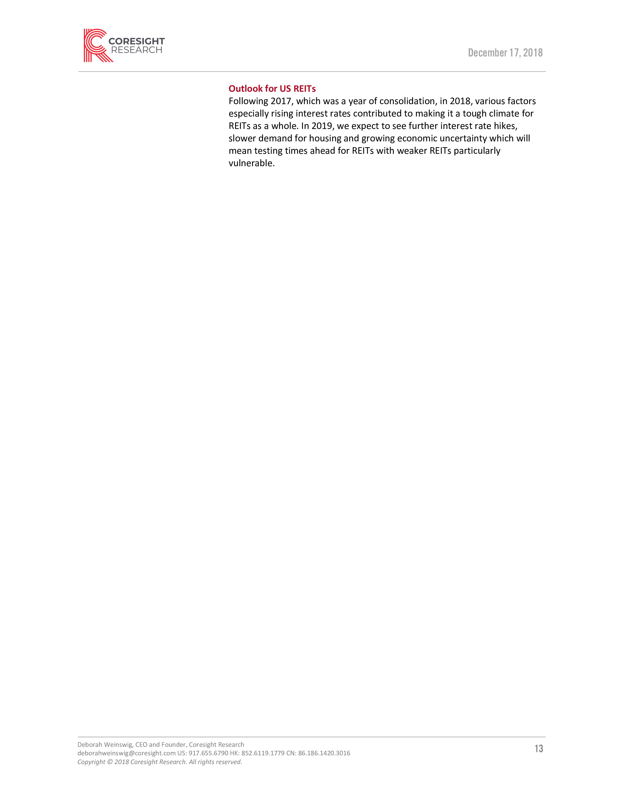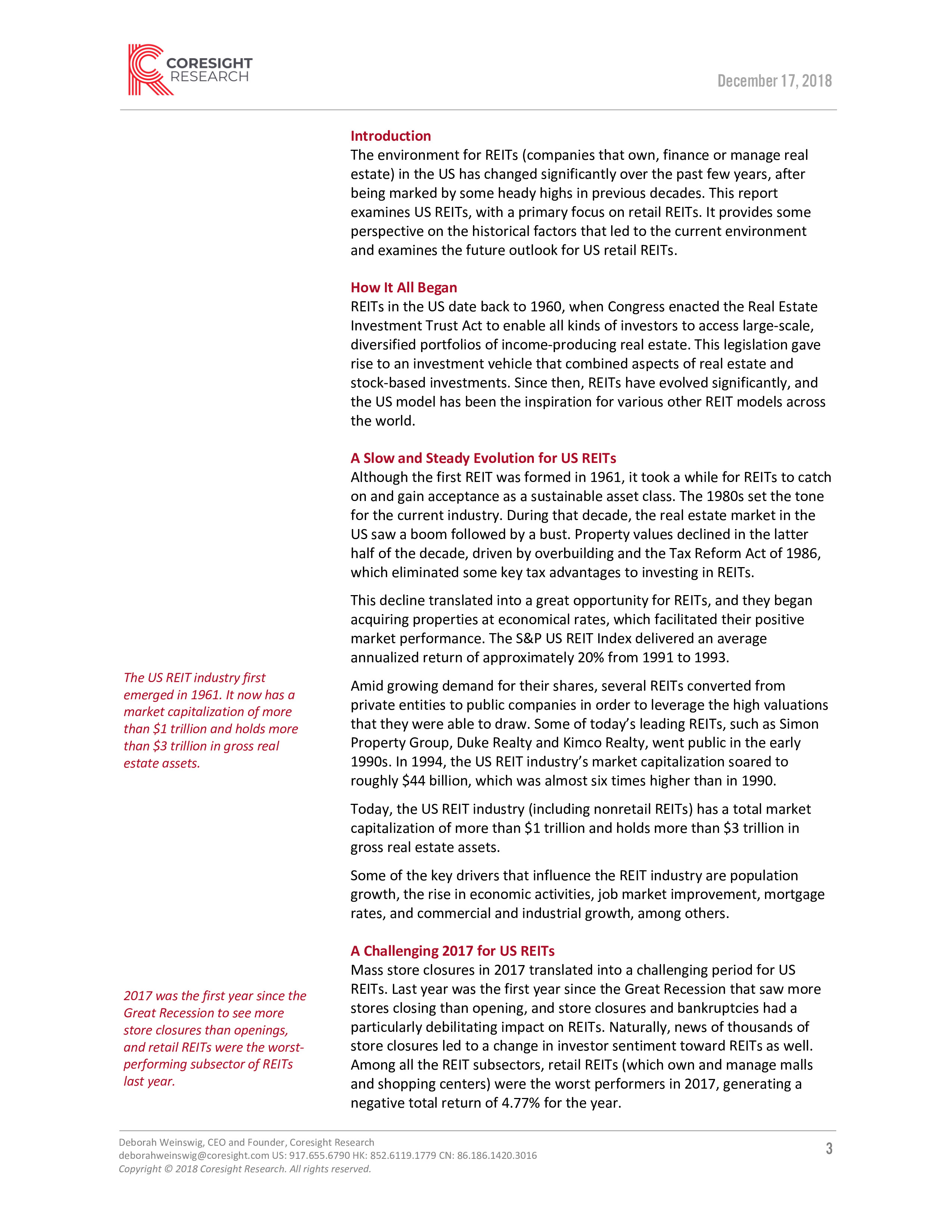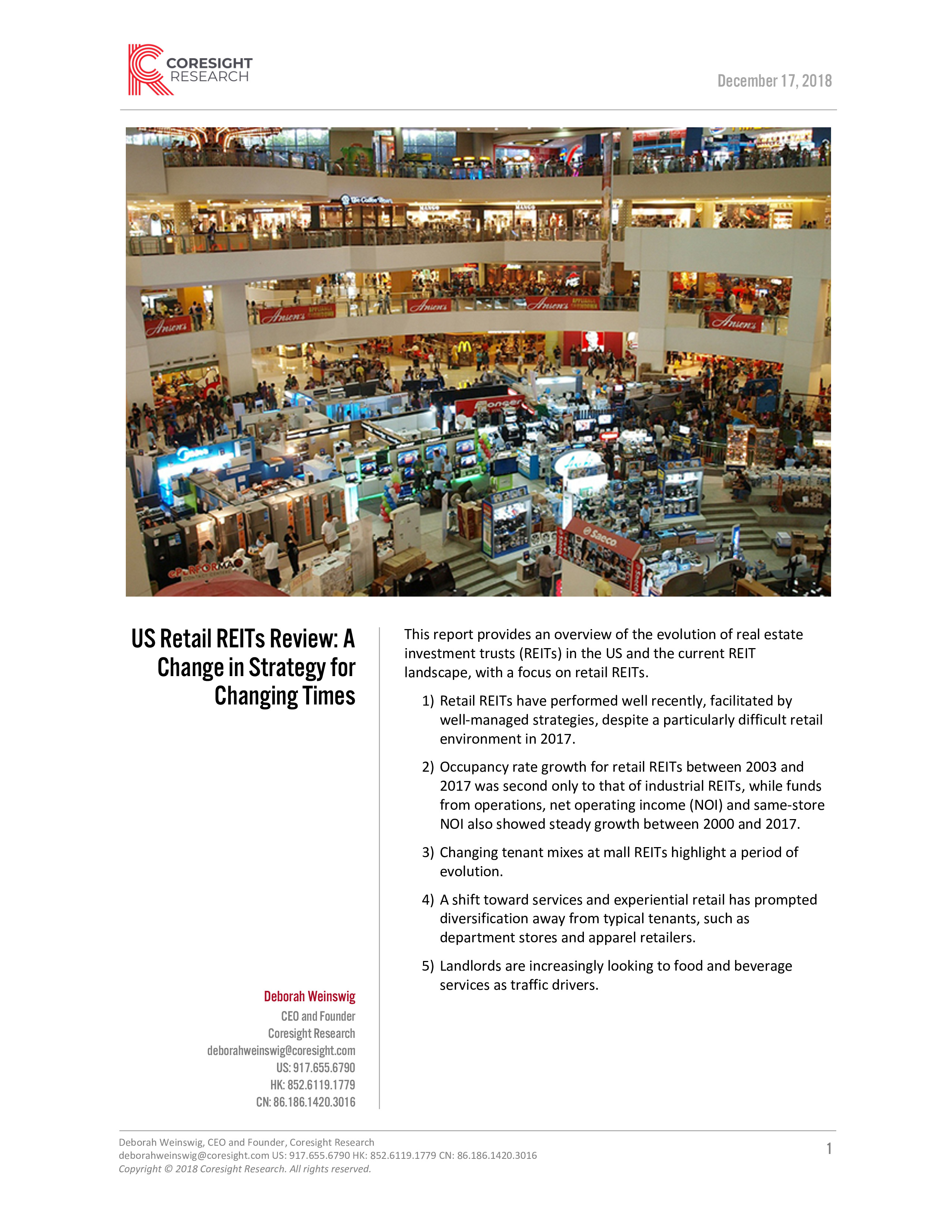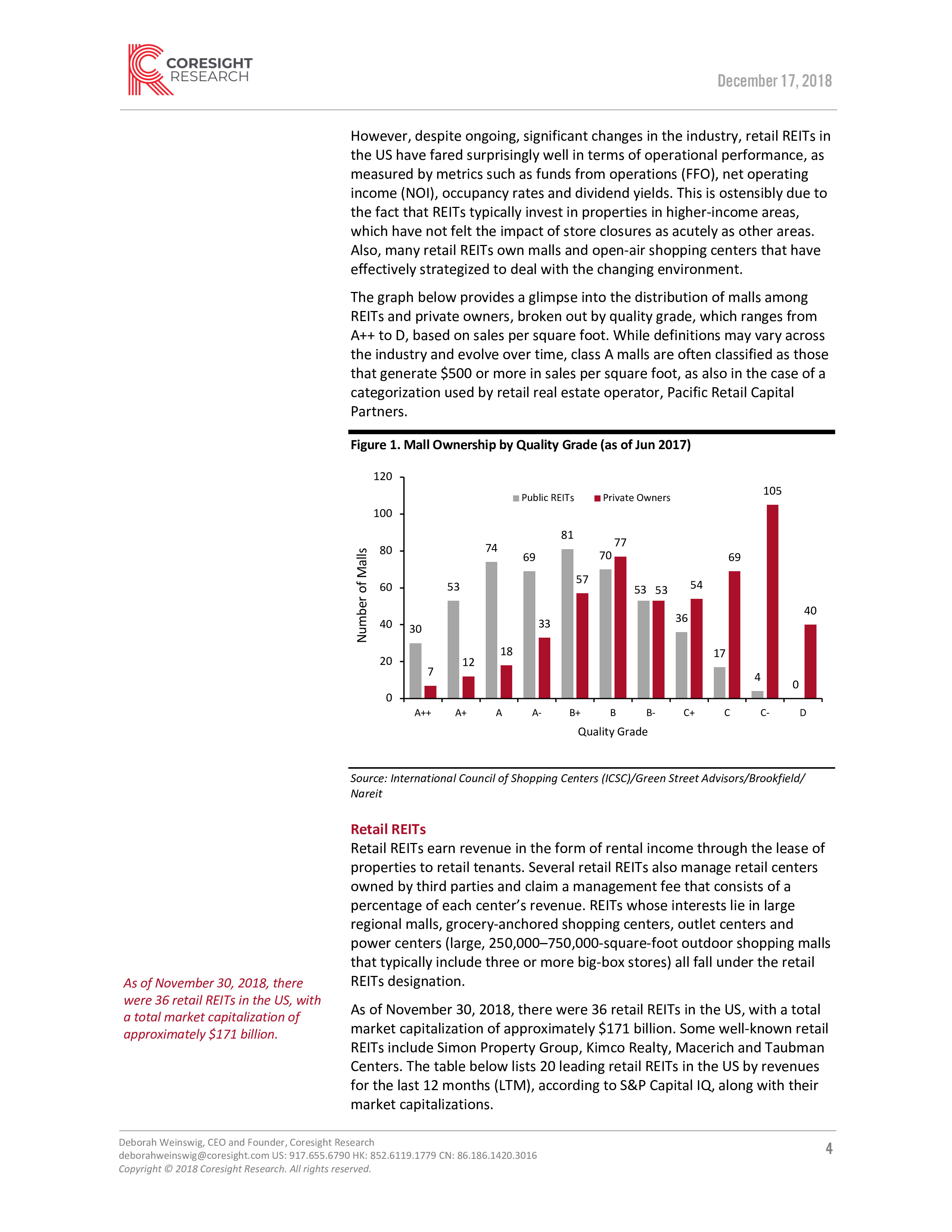 Coresight Research发布了“美国零售REIT(房地产投资信托基金)报告”。REIT是指那些拥有、投资或管理房地产的企业。