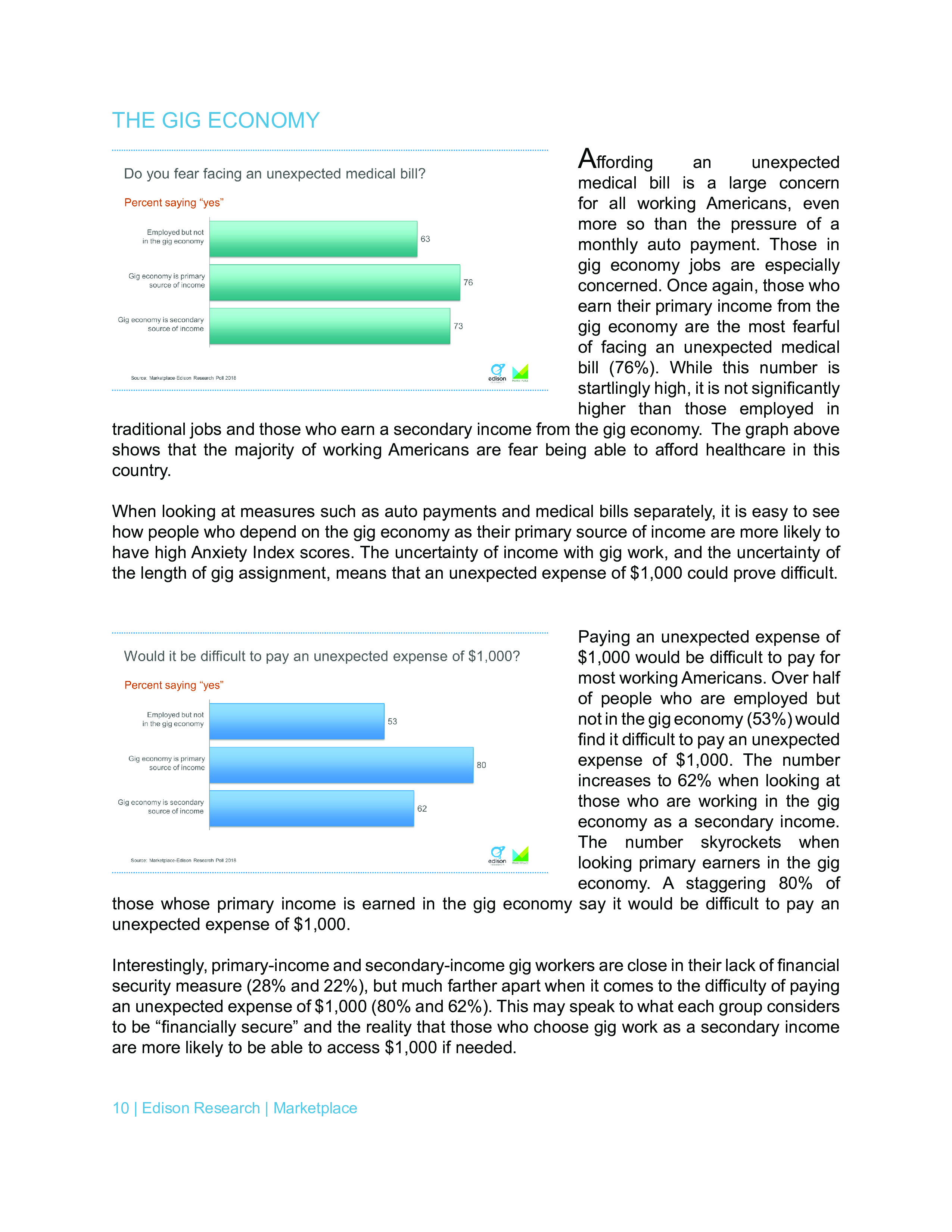 以零工经济为主要收入来源的受访者中有80%表示难以支付1000美元的非预期支出。