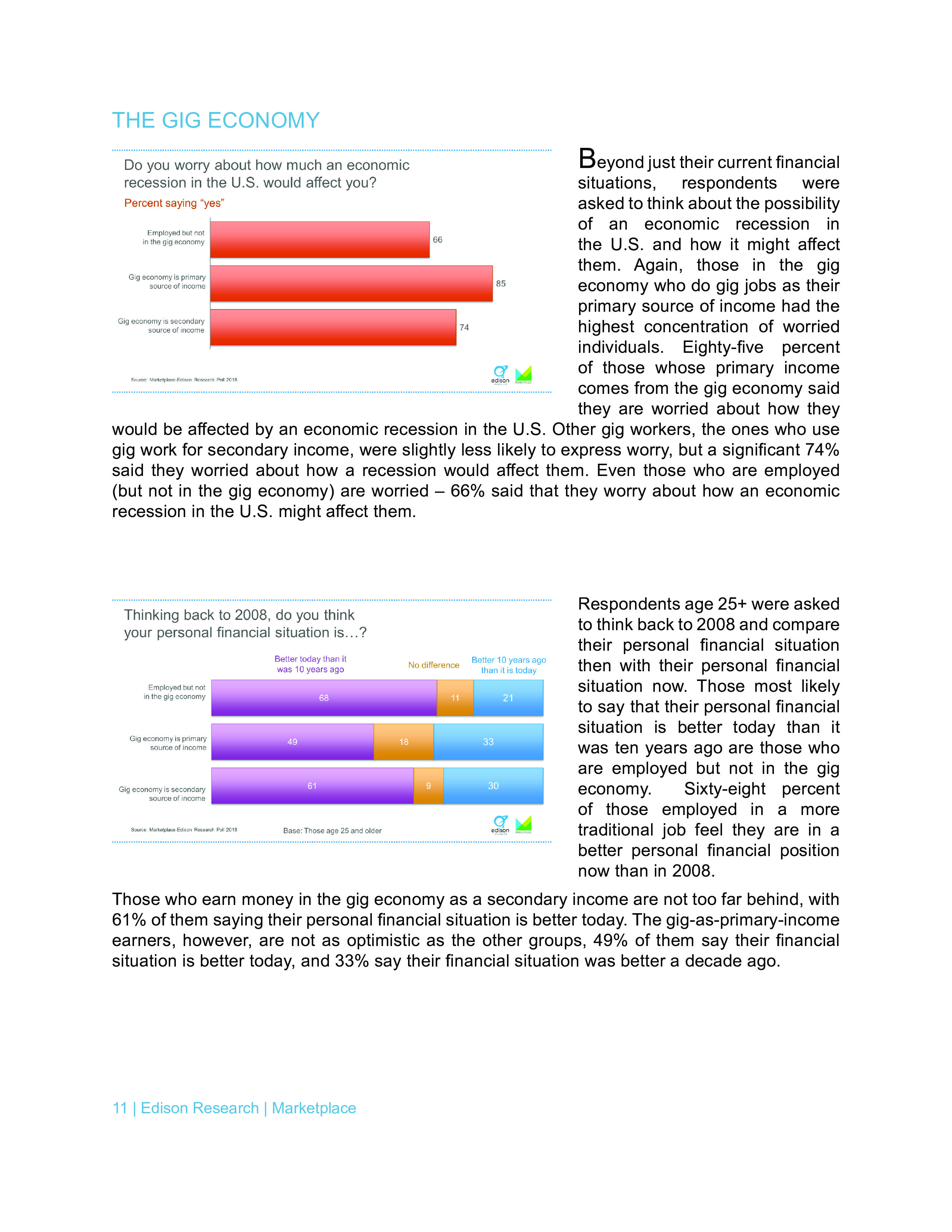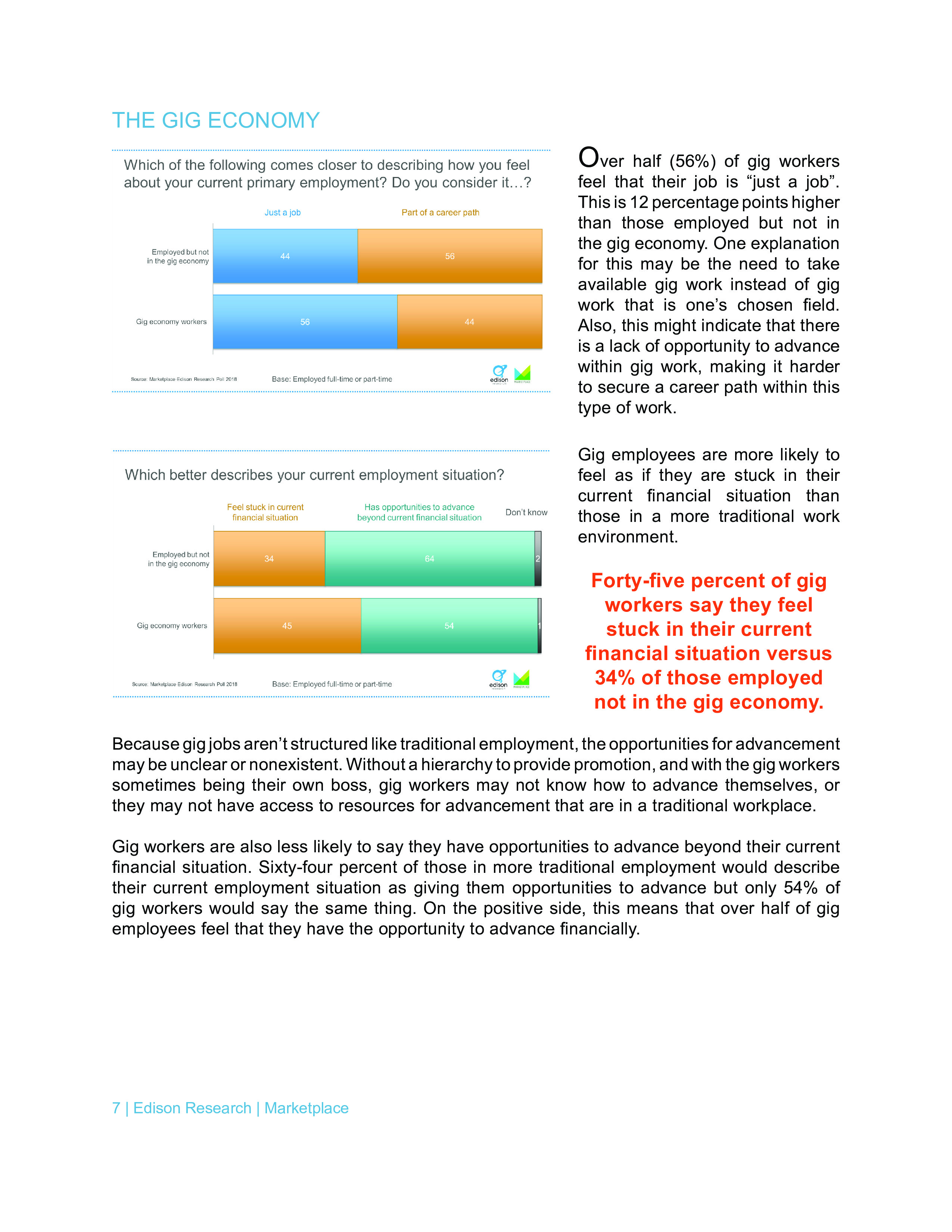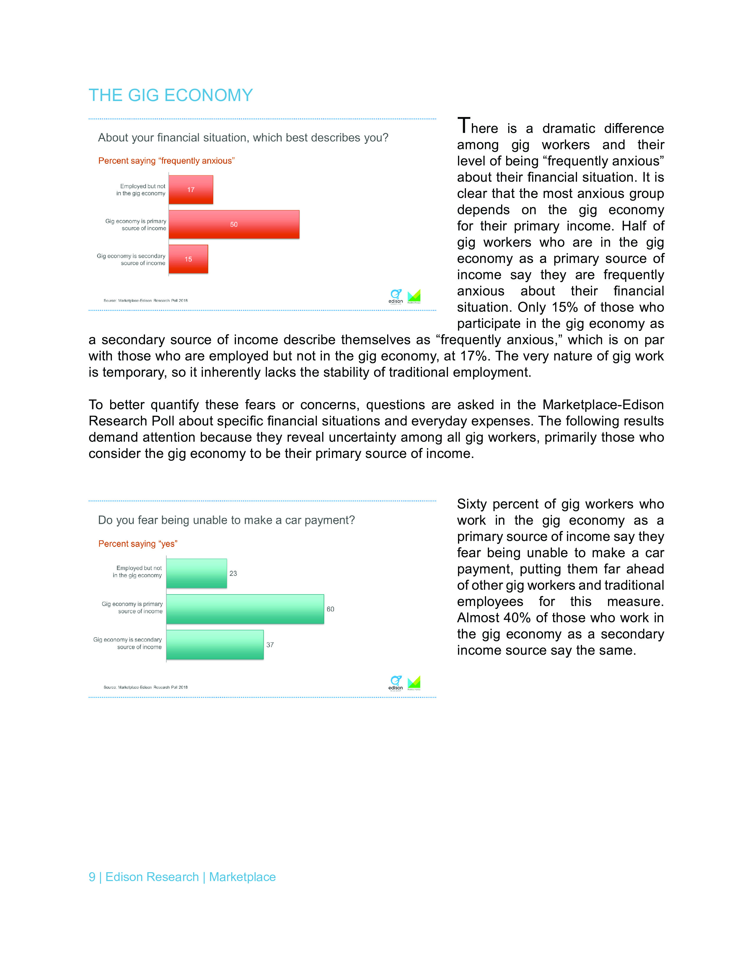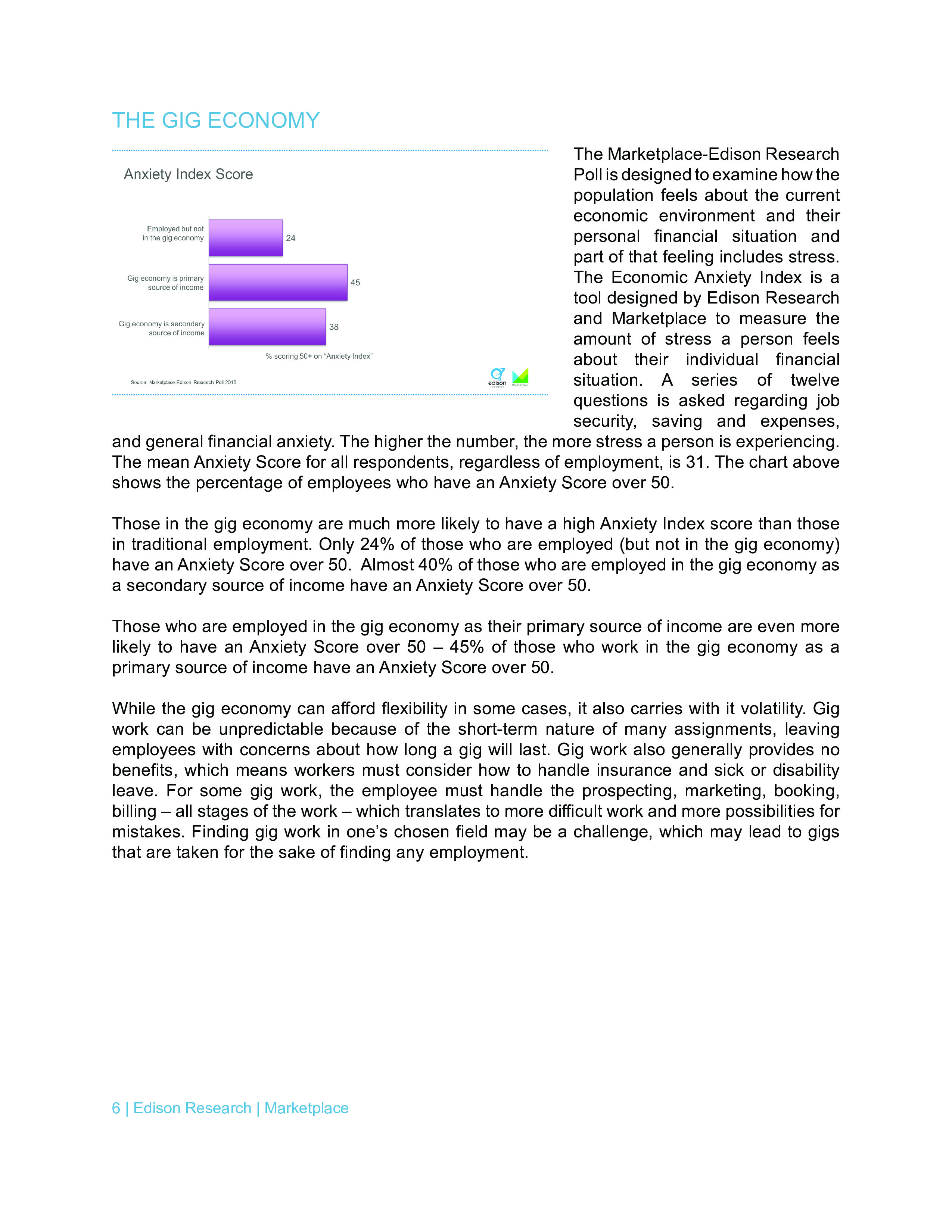 Edison调查了美国人对个人财务和经济状况的感觉,并用经济焦虑指数来衡量人们的压力。只有24%的全职工作者经济焦虑指数超过50,而依靠零工经济的人中有45%超过50。