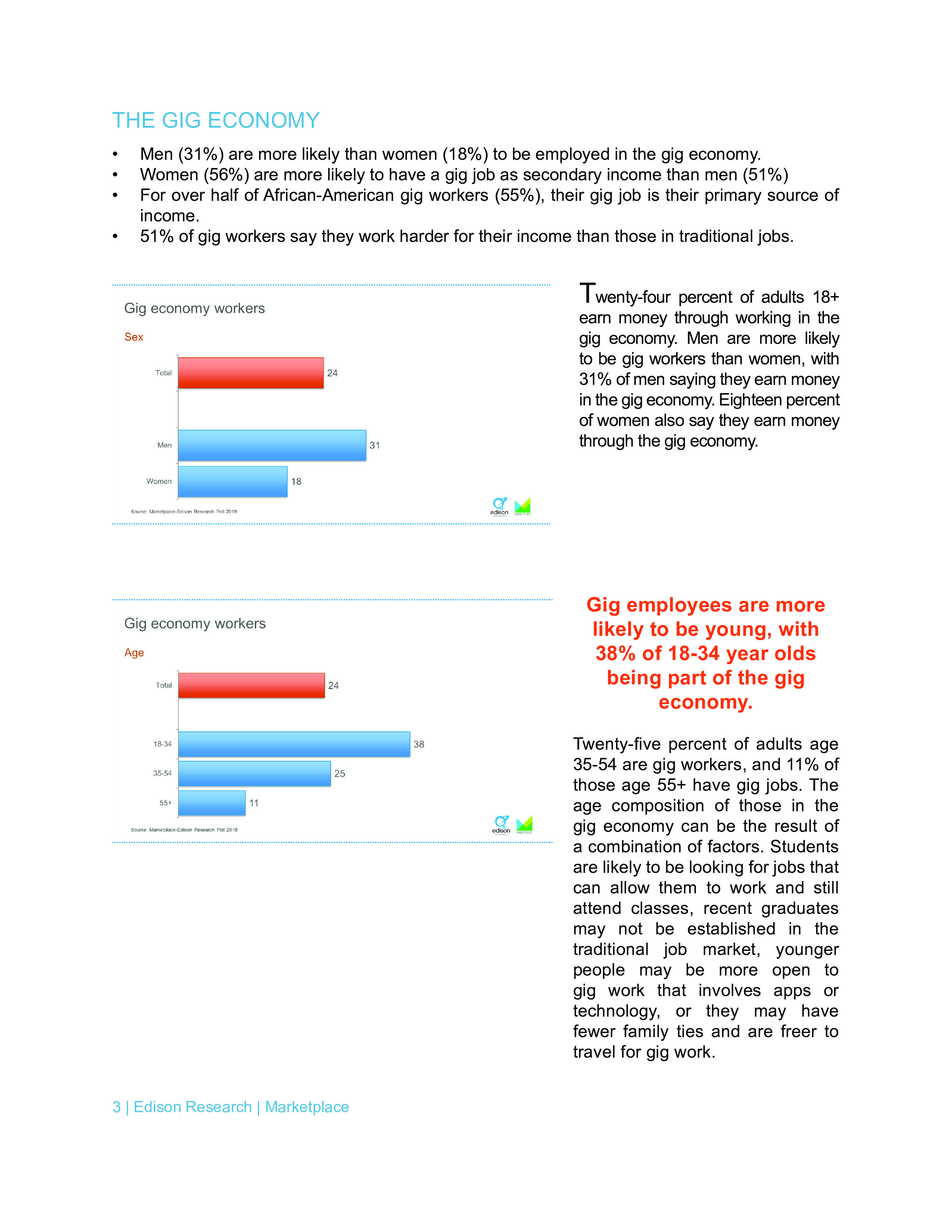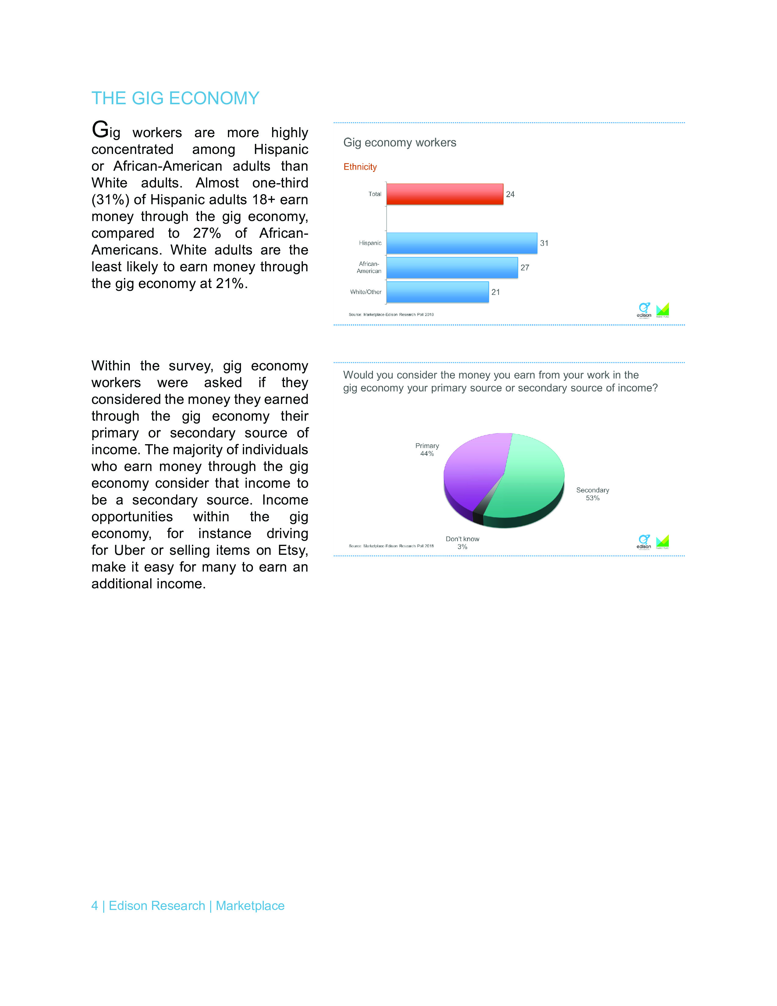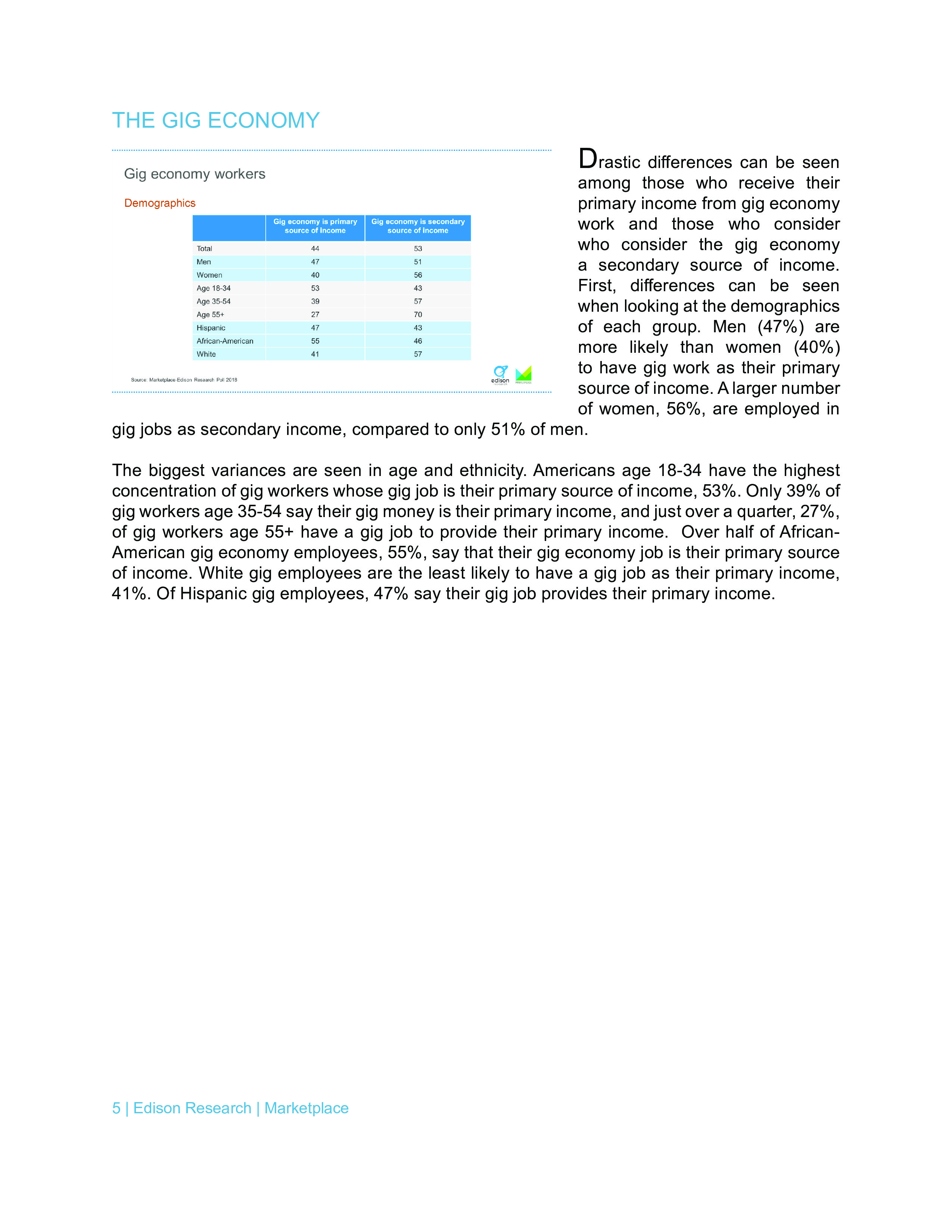 年龄在18-34岁之间受访者中有53%表示零工经济是他们的主要收入来源。
